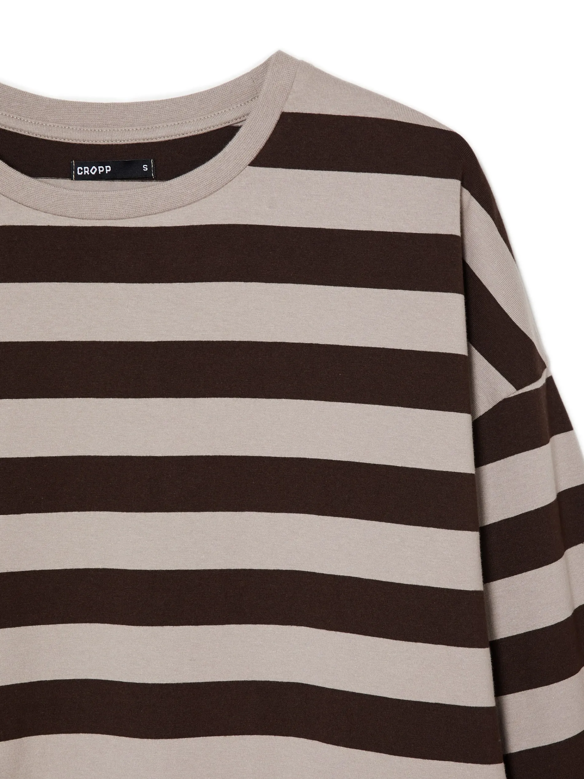 Damska bluzka, uszyta w 100% z bawełny. oversizowy krój długie rękawy zabudowany dekolt wzór w szerokie poziome pasy Ten produkt należy do kolekcji UNISEX – zalecamy wybranie mniejszego rozmiaru niż zazwyczaj, jeśli chcesz uniknąć efektu oversize.