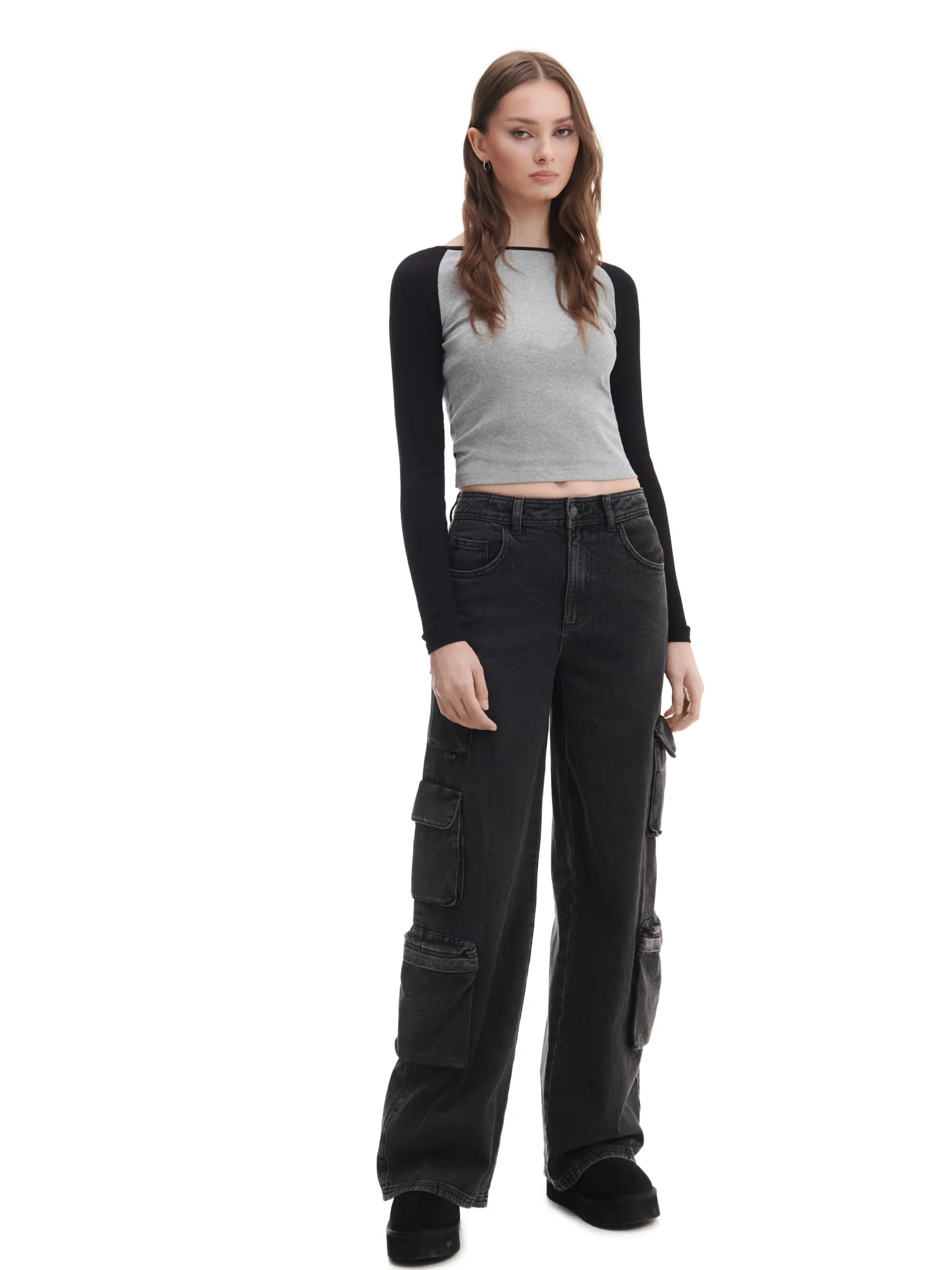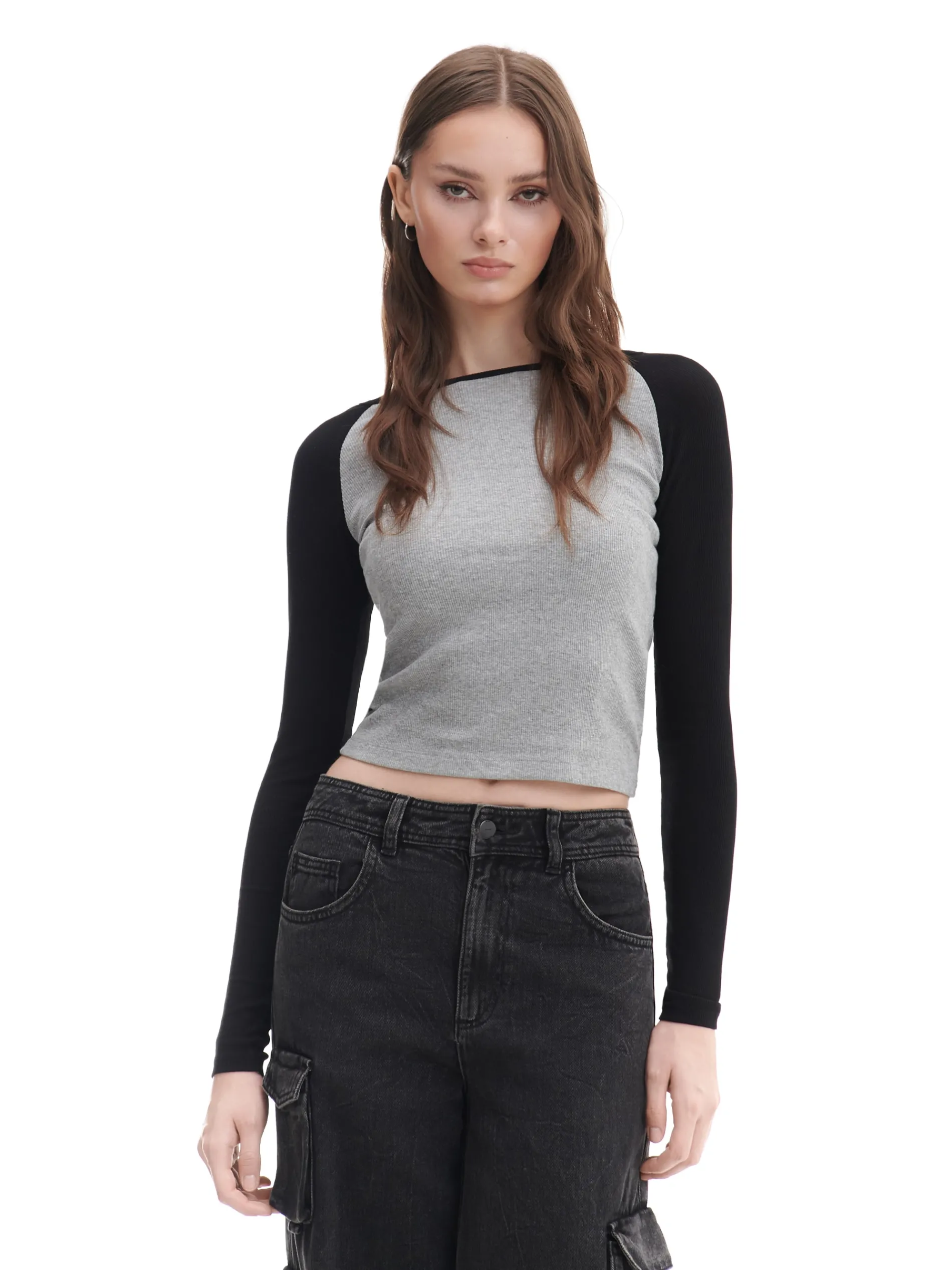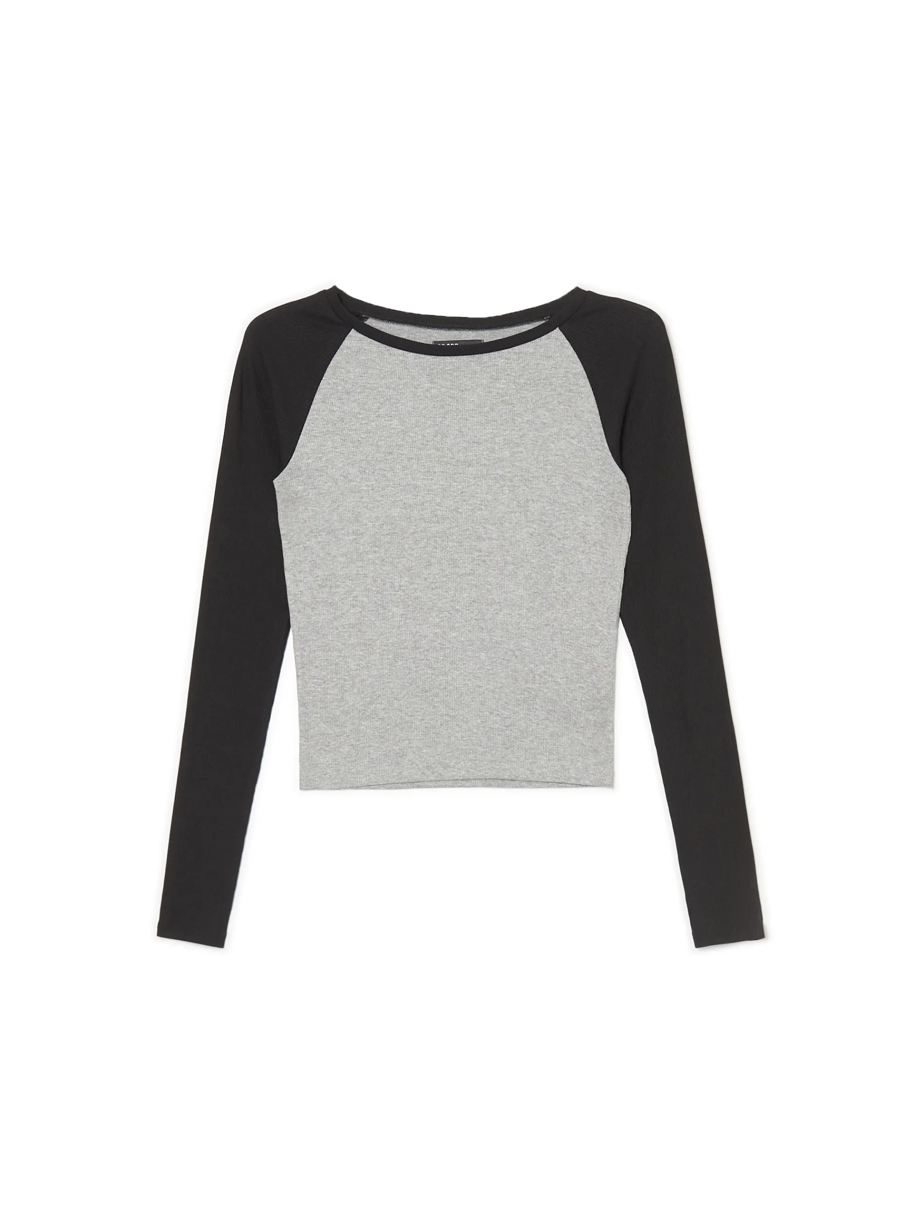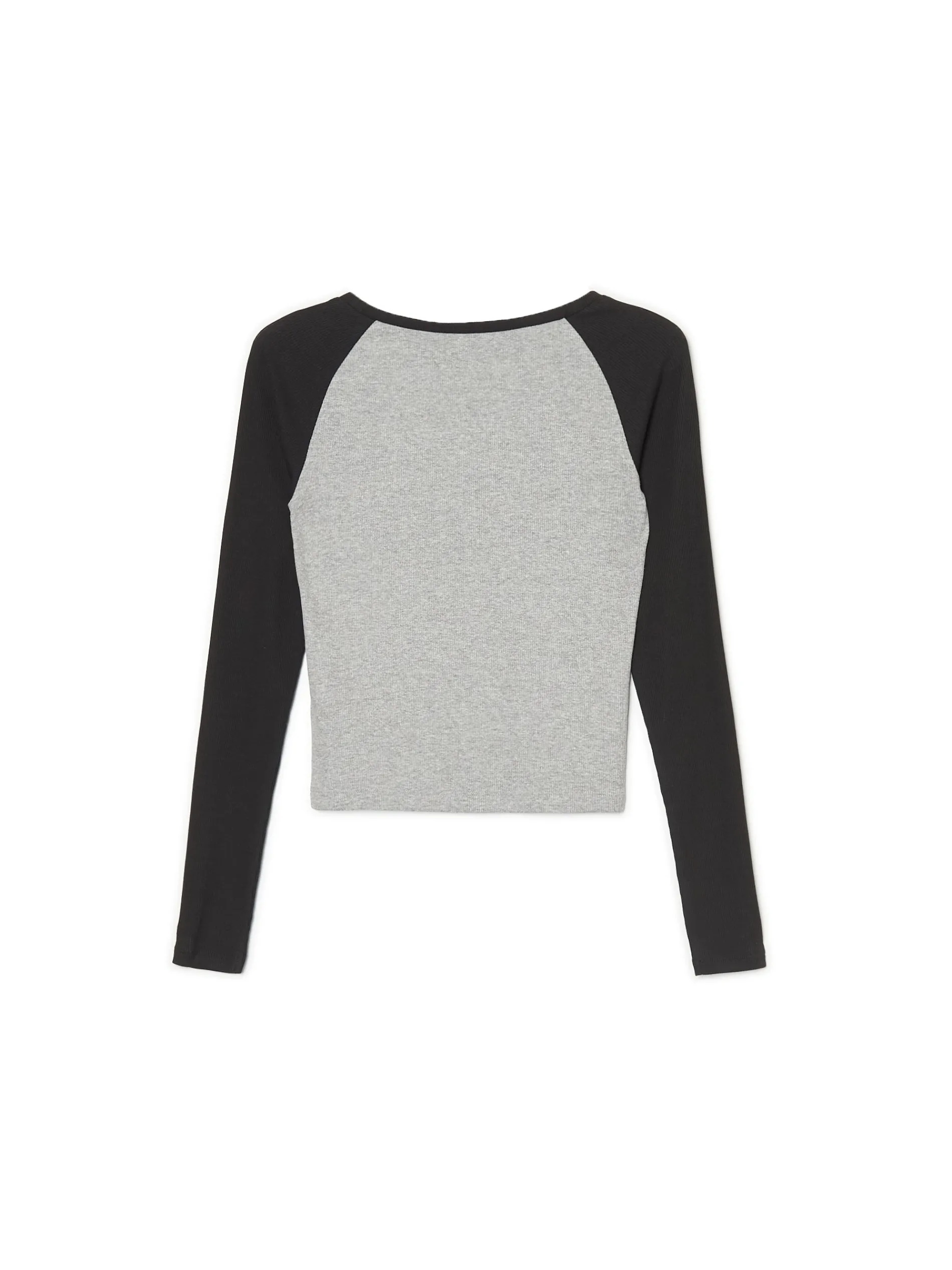Cropp Koszulki, Topy|Koszule, Bluzki*Szaro-czarna bluzka z długim rękawem