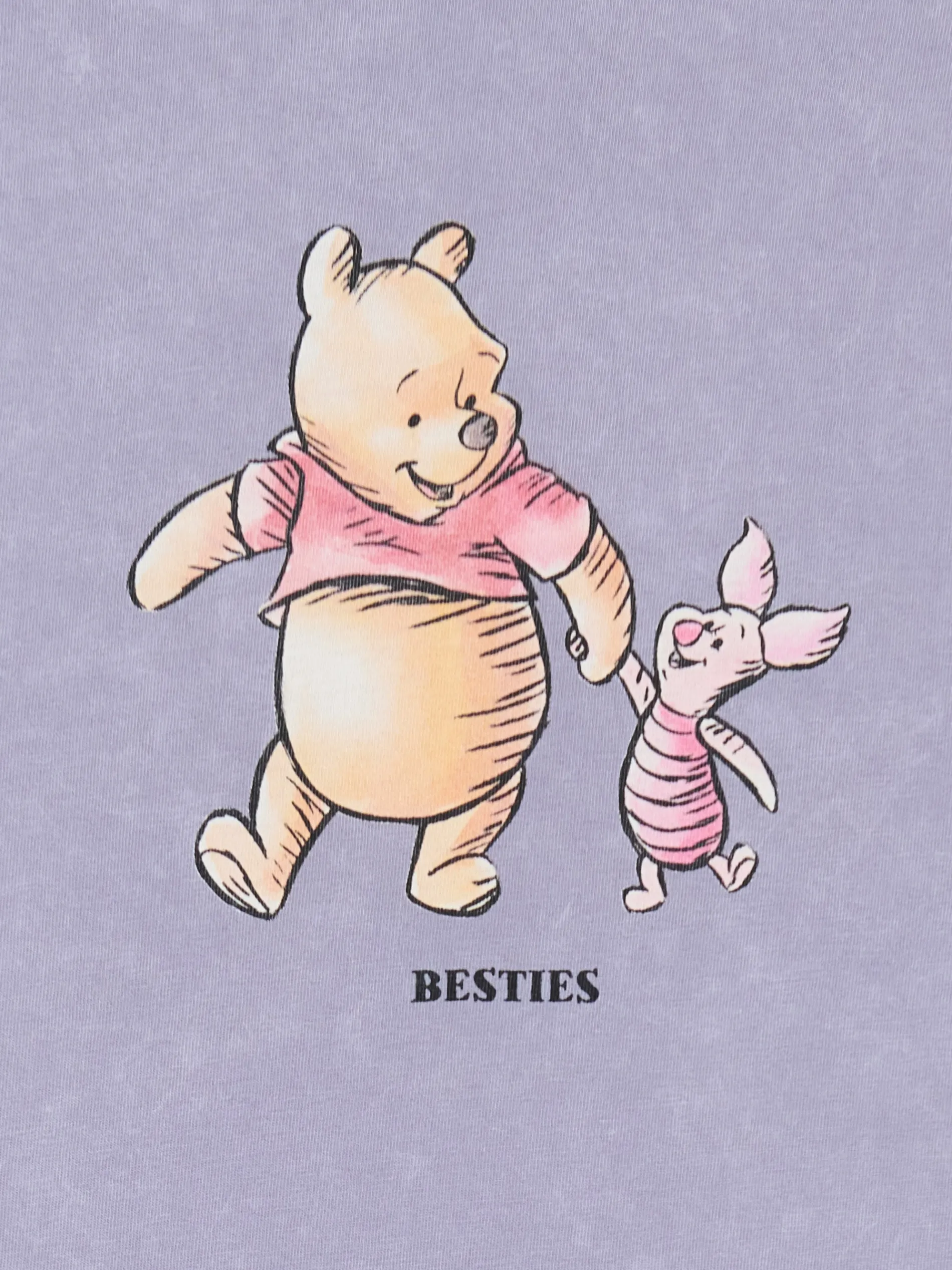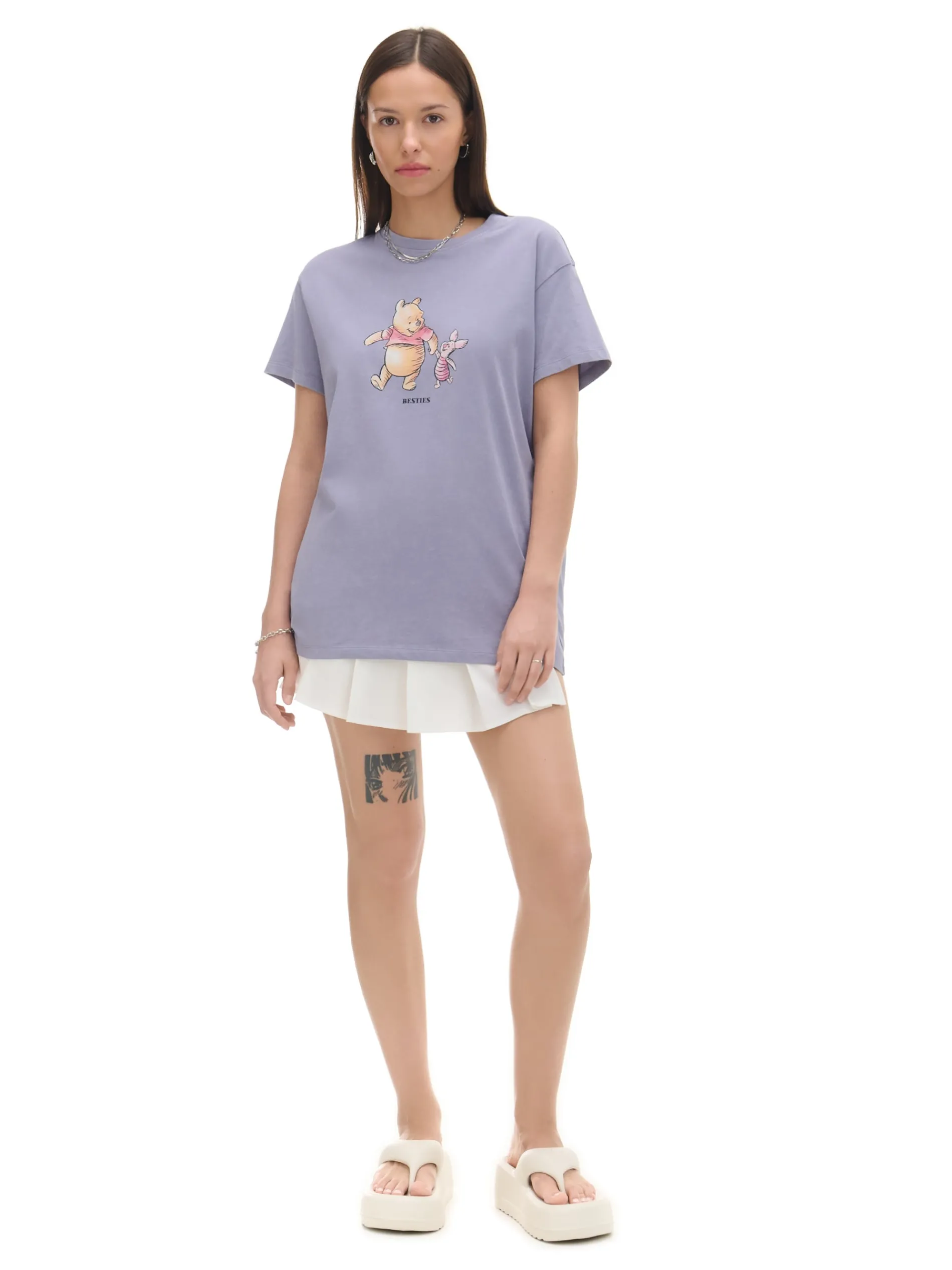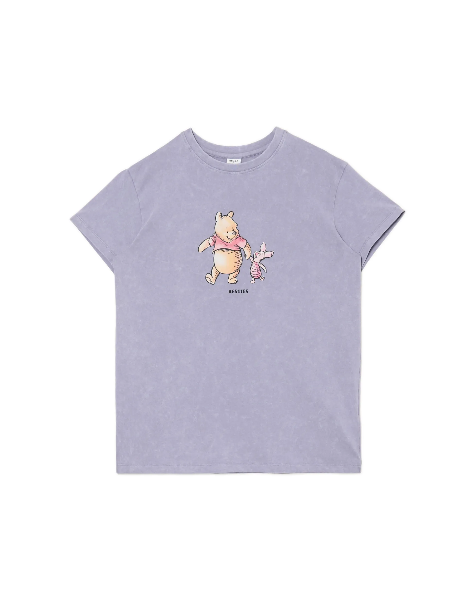 Damska koszulka z krótkim rękawem w kroju oversize, uszyta z bawełny w odcieniu niebieskim. Na przodzie przyjaciele ze stumilowego lasu, Kubuś Puchatek i Prosiaczek. Who is your Bestie? 100% bawełny krój oversize z obniżoną linią ramion krótkie, swobodne rękawy nadruk z Kubusiem Puchatkiem © Disney, ©Disney / Pixar, © Disney Based on the „Winnie the Pooh” works by A. A. Milne and E. H. Shepard