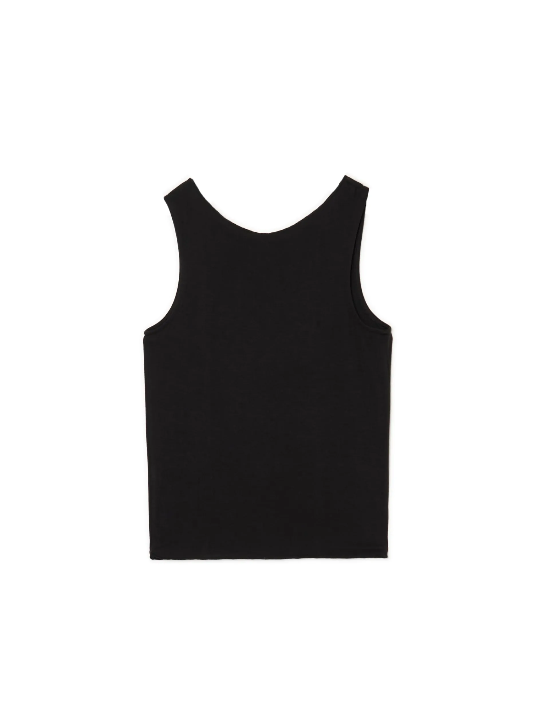 Czarna damska koszulka uszyta z lekkiej, wiskozowej dzianiny z dodatkiem elastycznych włókien. Na przodzie dekoracyjne wycięcia i ozdobne przeszycia. wiskoza z domieszką elastycznych włókien dopasowany krój podkreślający sylwetkę szersze ramiączka ozdobny zewnętrzny szew z przodu ozdobne rozcięcia Wzrost modelki: 172 cm