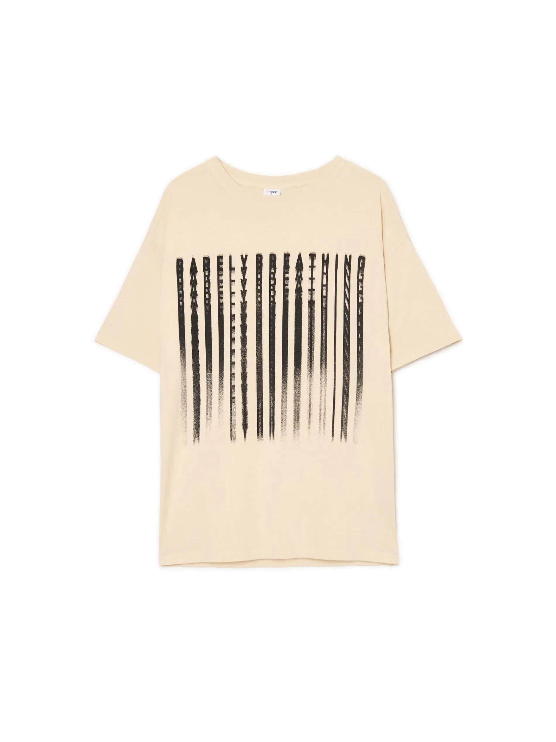 Cropp Koszulki, Topy*Kremowa koszulka oversize z nadrukiem