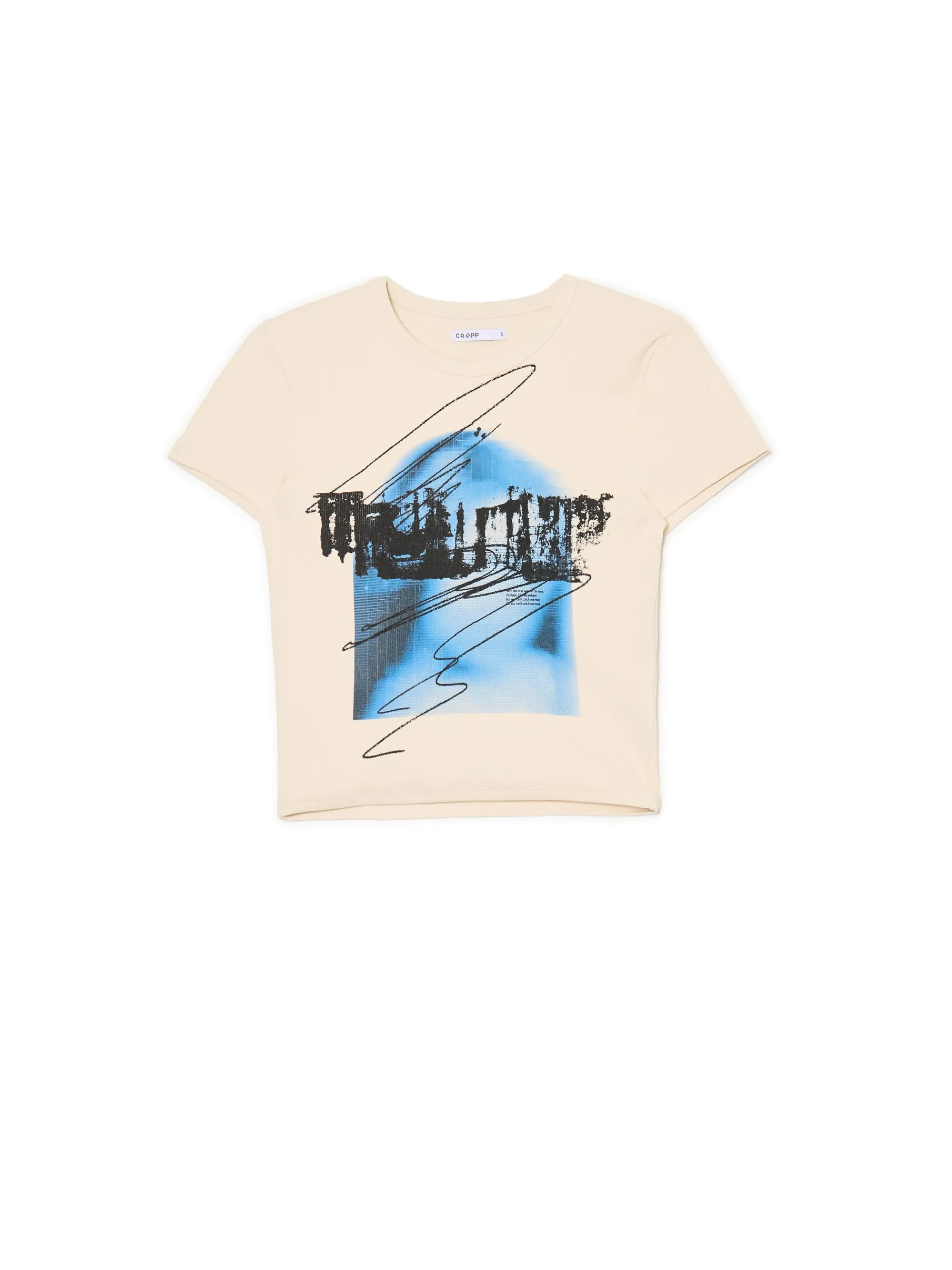 Cropp Koszulki, Topy*Kremowa koszulka z nadrukiem