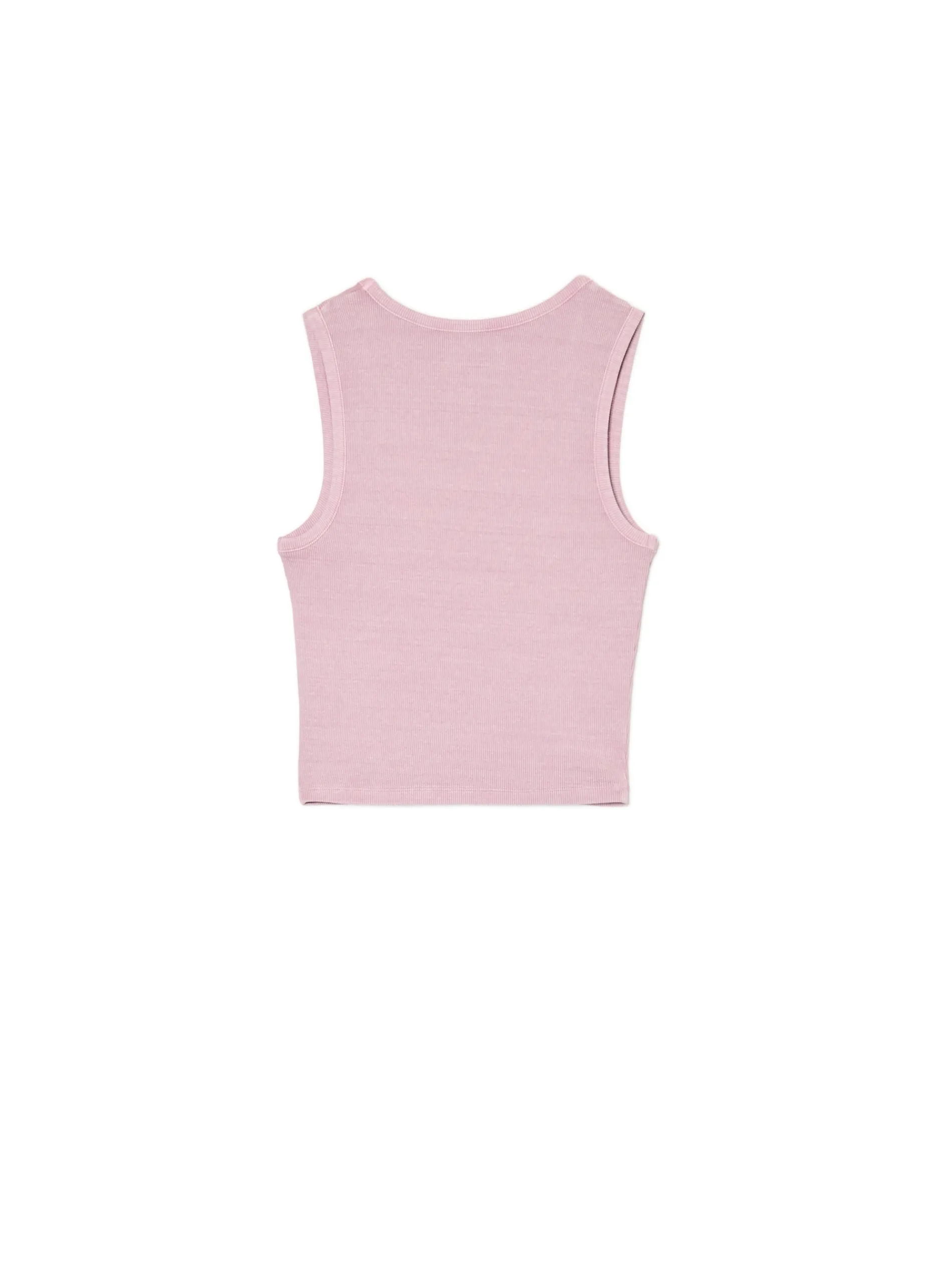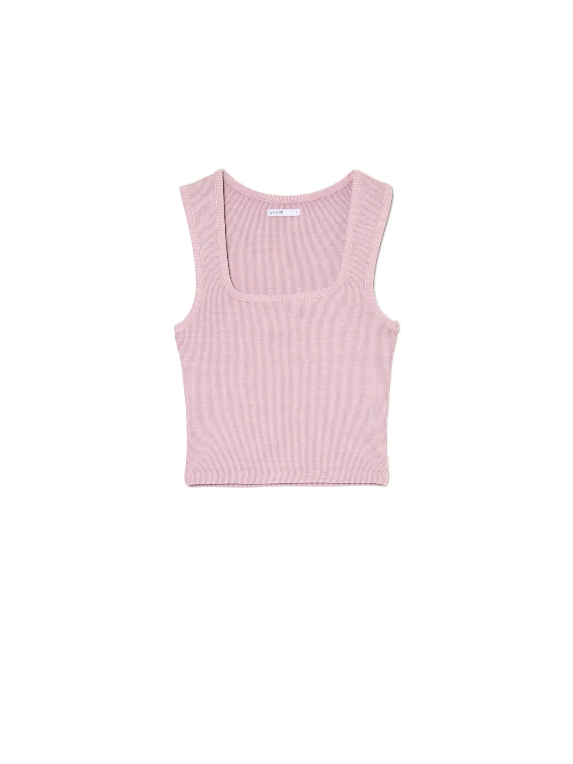 Damska koszulka na szerokich ramiączkach z kwadratowym, głębokim dekoltem. Ten item fituje zarówno z bluzą, jak i kurtką jeansową. Sprawdź! dzianina z domieszką elastycznych włókien dopasowany krój podkreślający sylwetkę szerokie ramiączka kwadratowy, elastyczny dekolt efekt sprania na całości