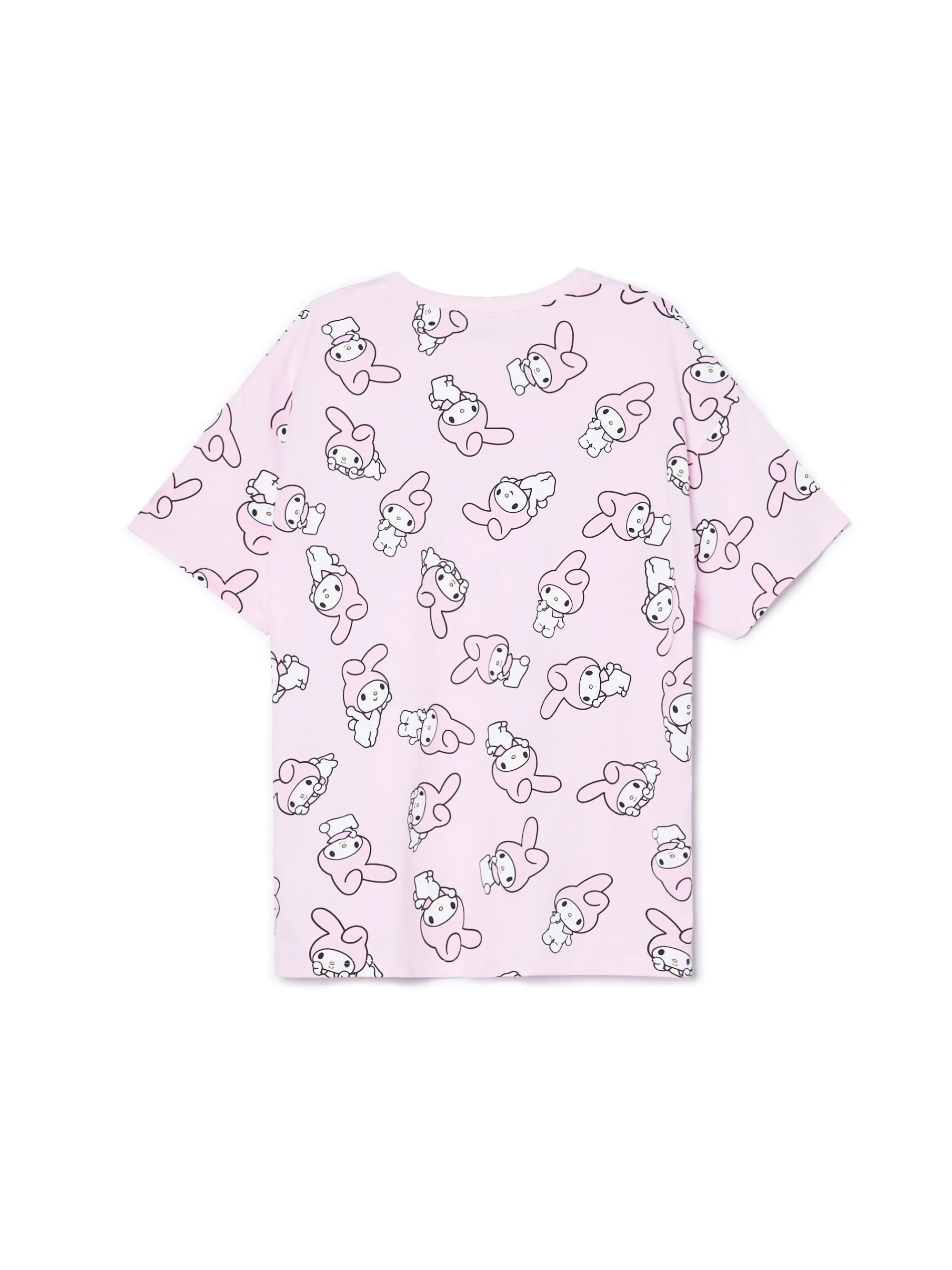 Różowa damska koszulka, uszyta w 100% z bawełny. luźny krój oversize krótkie rękawy na całości nadruk z motywem My Melody Wzrost modelki: 172 cm © 2024 SANRIO CO., LTD.