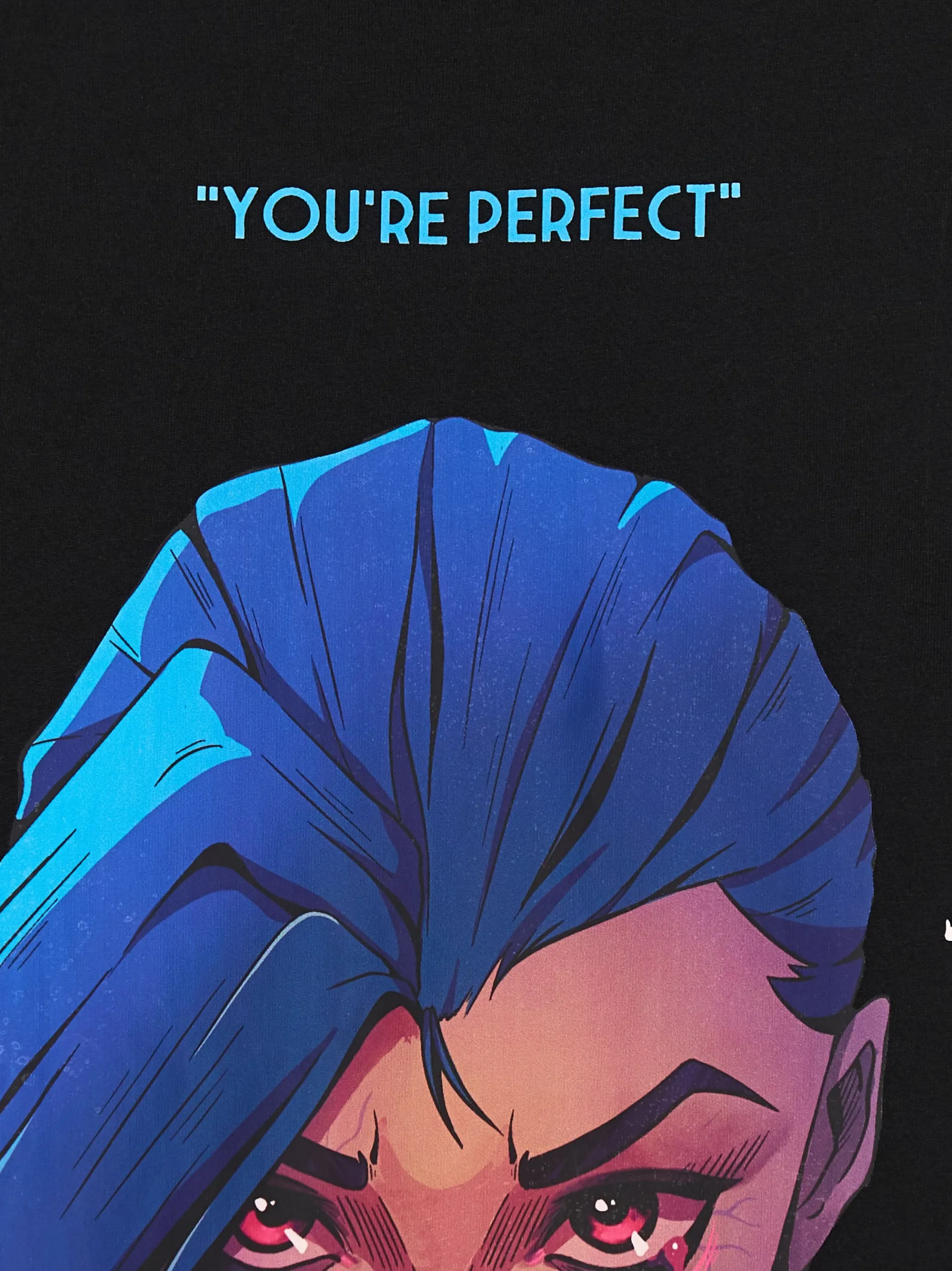 Oversizowa damska koszulka z krótkim rękawem uszyta z bawełnianej tkaniny. Na przodzie postać niebieskowłosego pomiota piekielnego, Jinx. Ta dziewczyna to złożona, wielowymiarowa postać – get jinxed! 100% bawełny krój oversize okrągły dekolt z lamówką krótkie, swobodne rękawy z przodu nadruk Arcane © 2024 Riot Games, Inc. RIOT GAMES, ARCANE LEAGUE OF LEGENDS and any associated logos are trademarks, service marks, and/or registered trademarks of Riot Games, Inc.