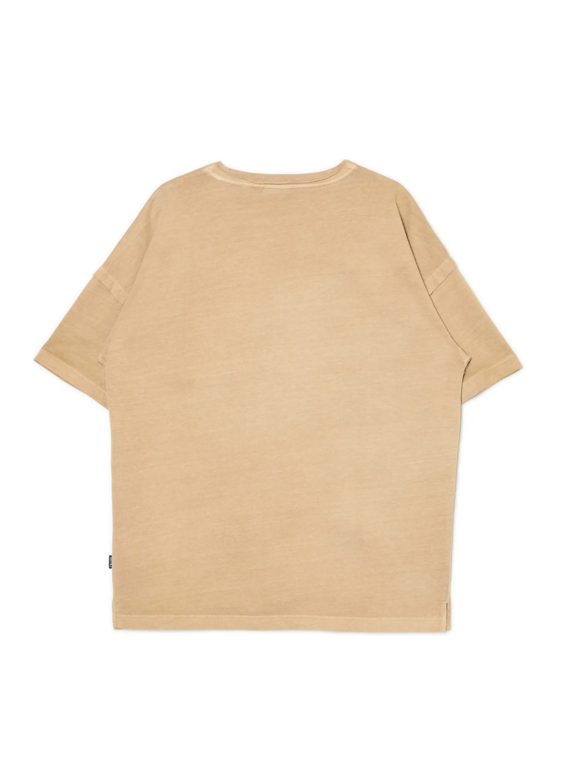 Męski T-shirt, uszyty z bawełny. Podkręć swój vibe i włącz go do swojej garderoby! 100% bawełny swobodny, luźny krój krótkie rękawy napis z przodu Wzrost modela: 185 cm