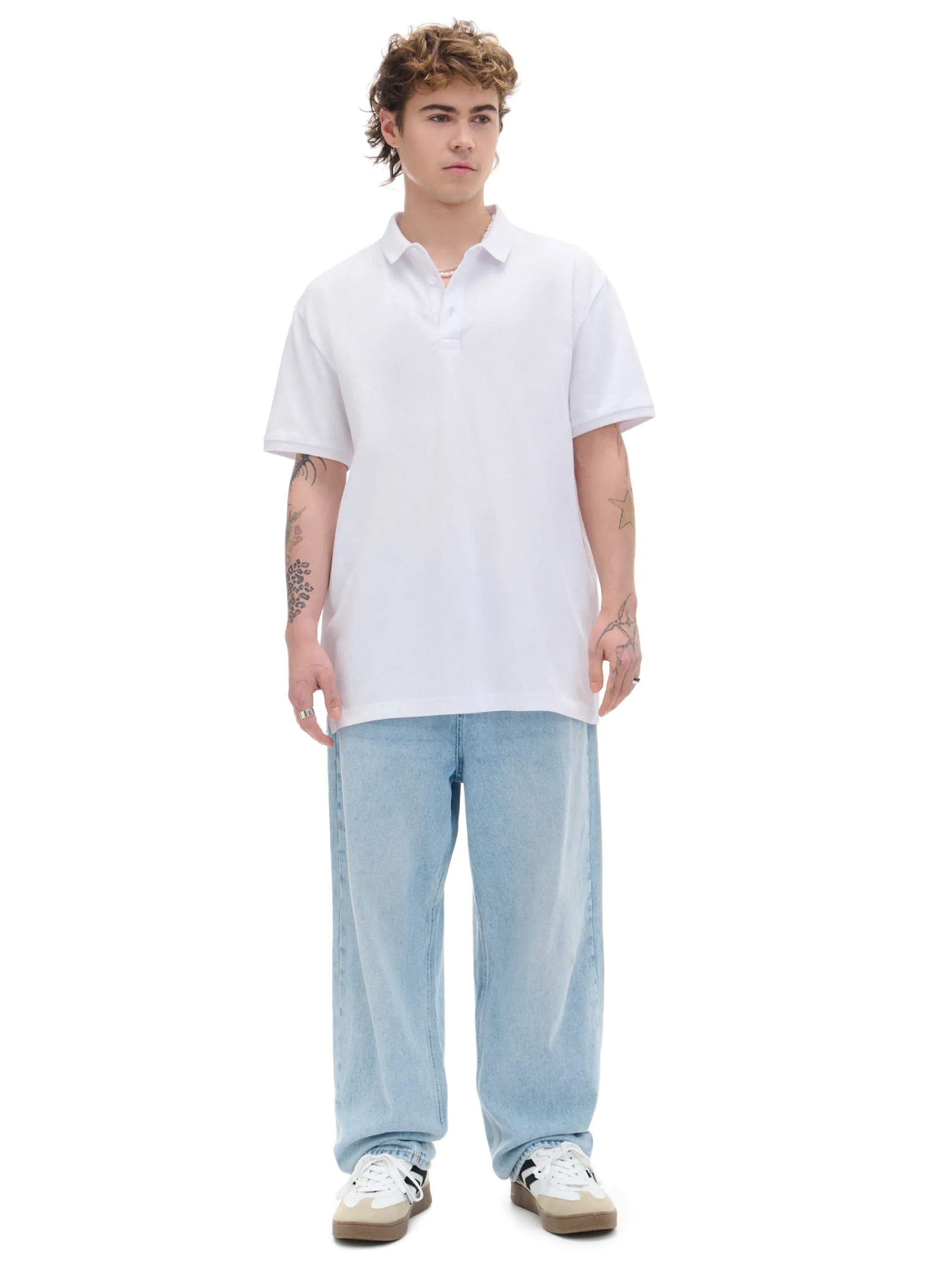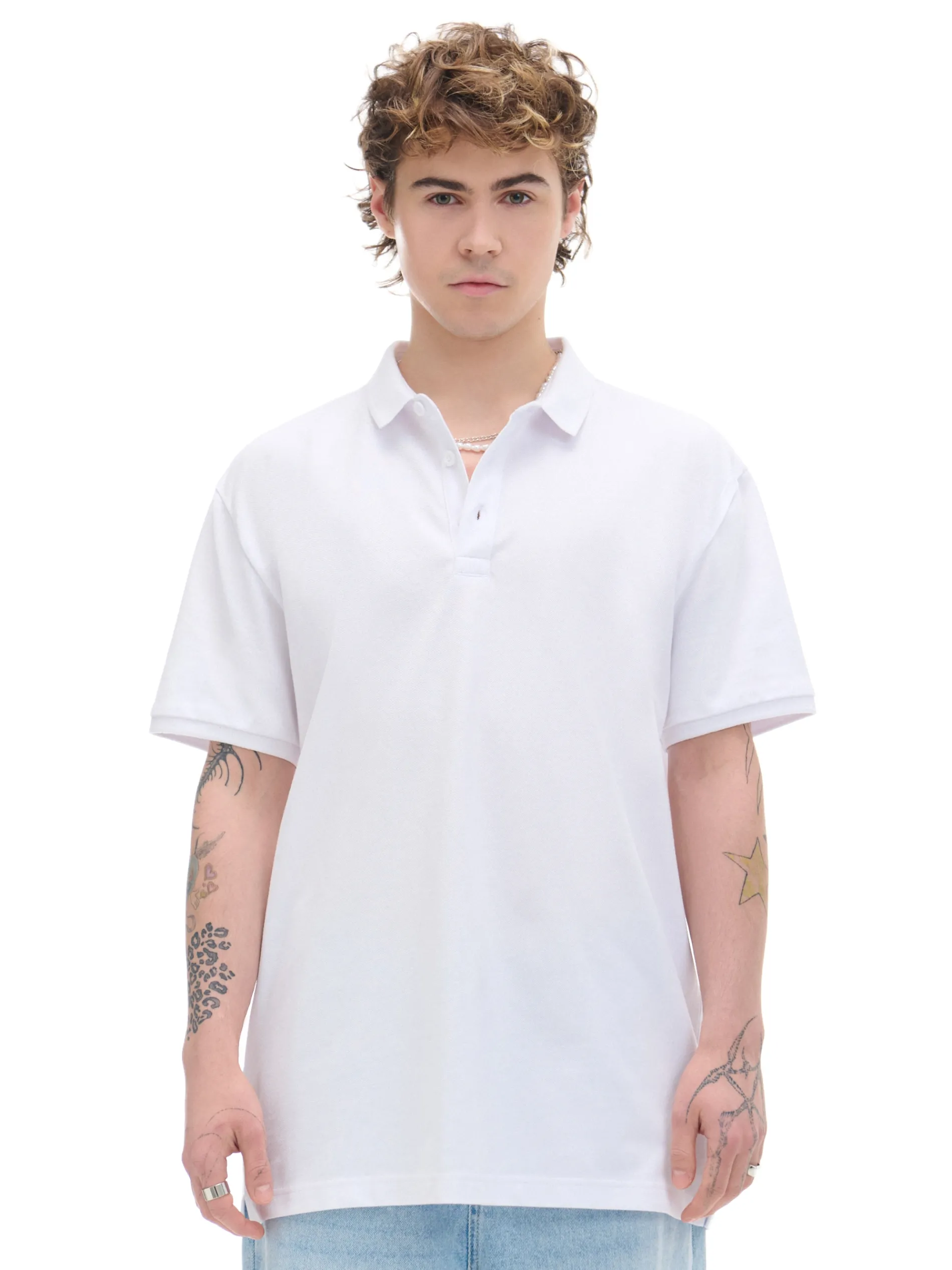 Biała koszulka typu polo idealnie pasuje na mniej lub bardziej formalne spotkania. wygodny i regularny krój dostosuje się do Twojej sylwetki krótki rękaw pozwoli Ci zachować swobodę ruchu 100% bawełny to gwarancja, że koszulka się nie przetrze i nie rozciągnie po praniu