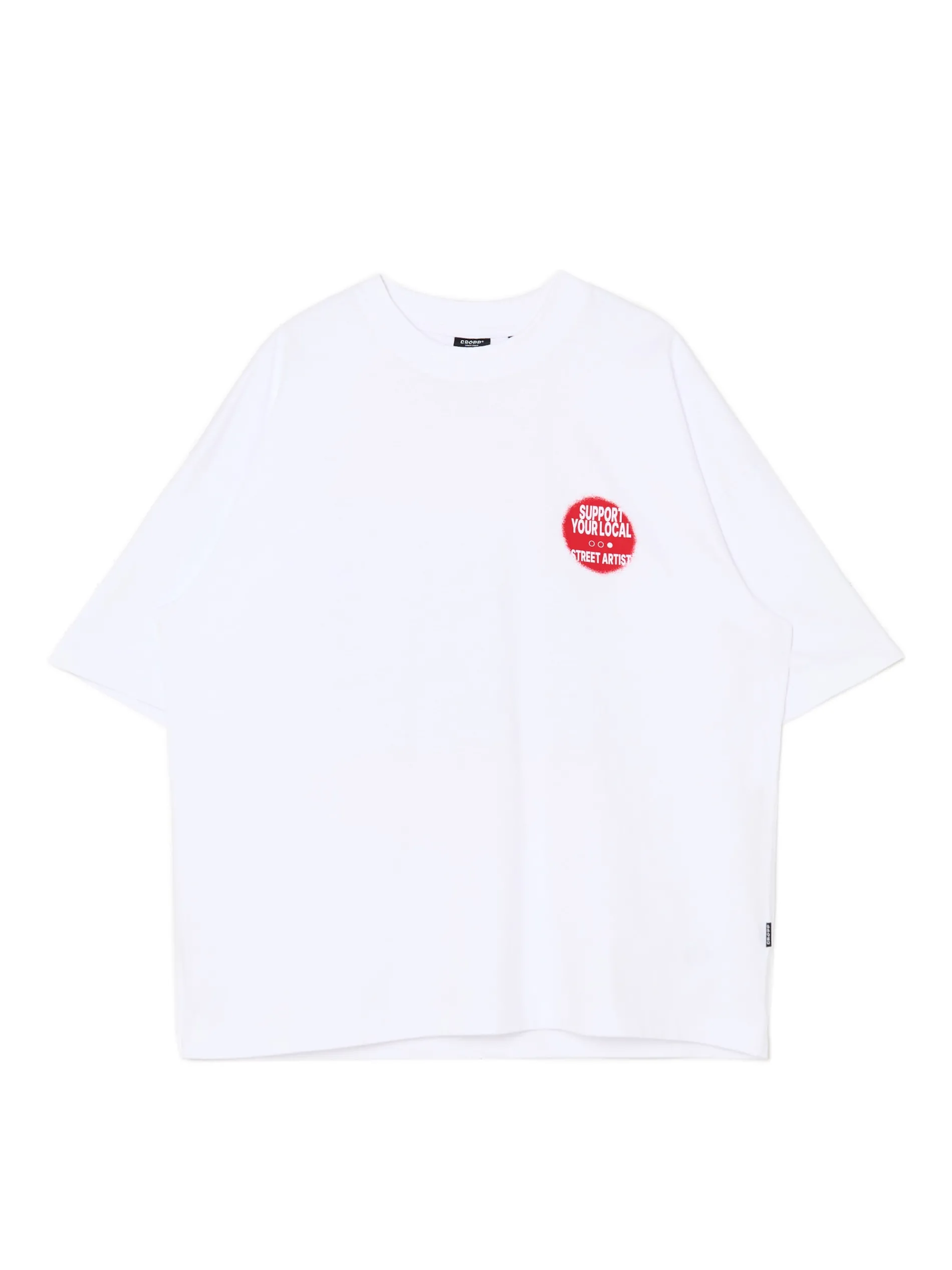 Bawełniana męska koszulka z krótkim rękawem z nadrukami po obu stronach – drobnym na przodzie i dużym w formie plakatu na plecach. 100% bawełny obszerny krój boxy krótkie, szerokie rękawy mały nadruk na piersi, duży nadruk na plecach