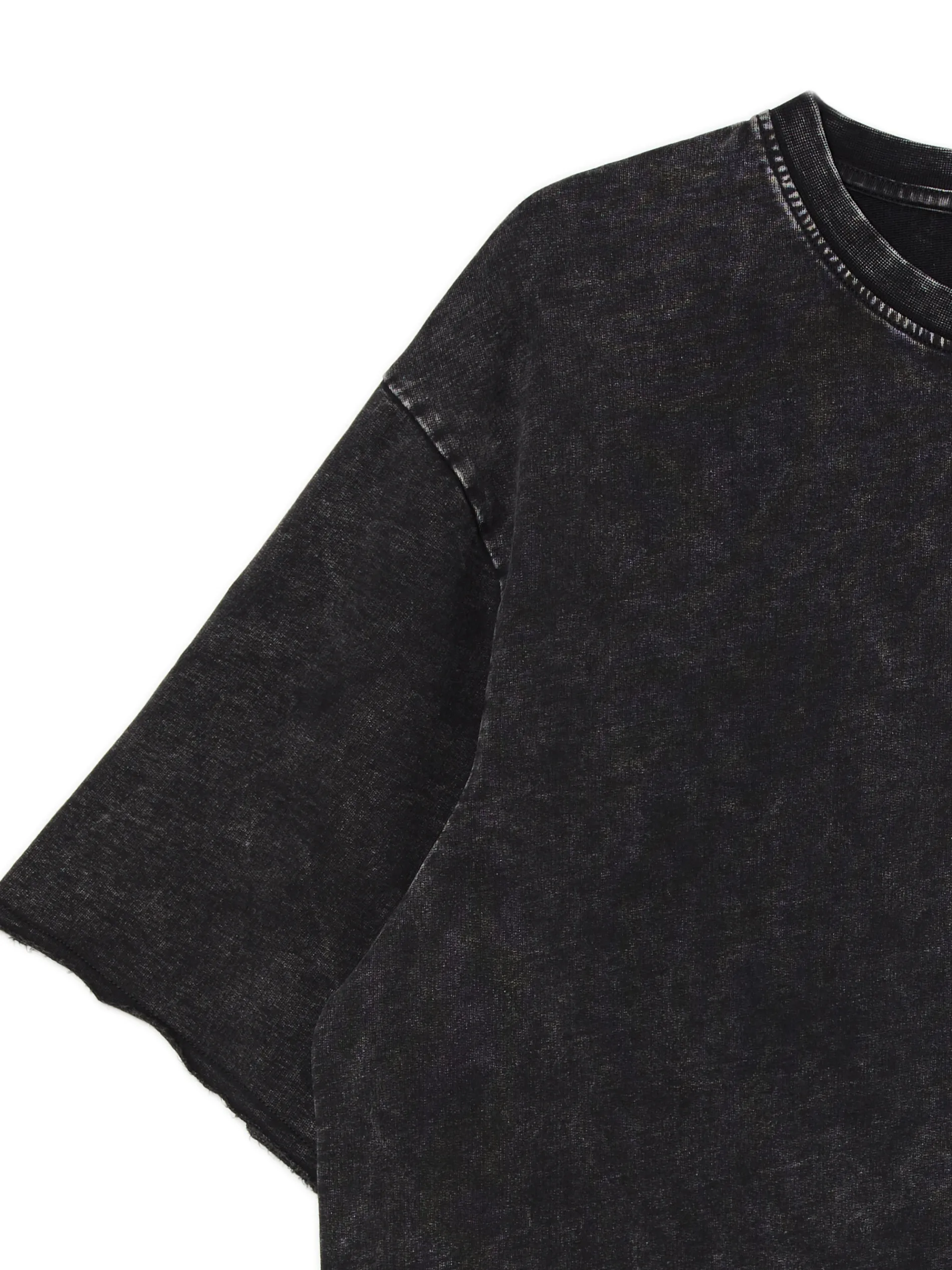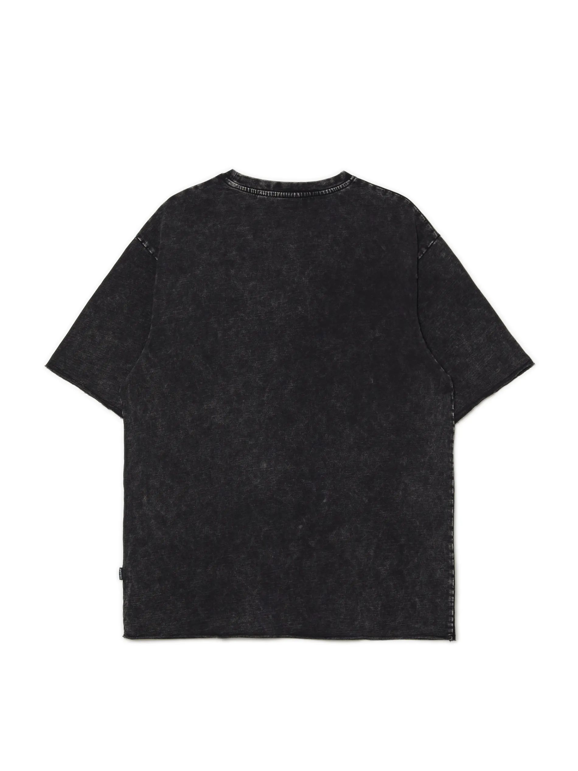 Czarny męski T-shirt, uszyty z bawełny. krój comfort krótkie rękawy na całości efekt acid wash