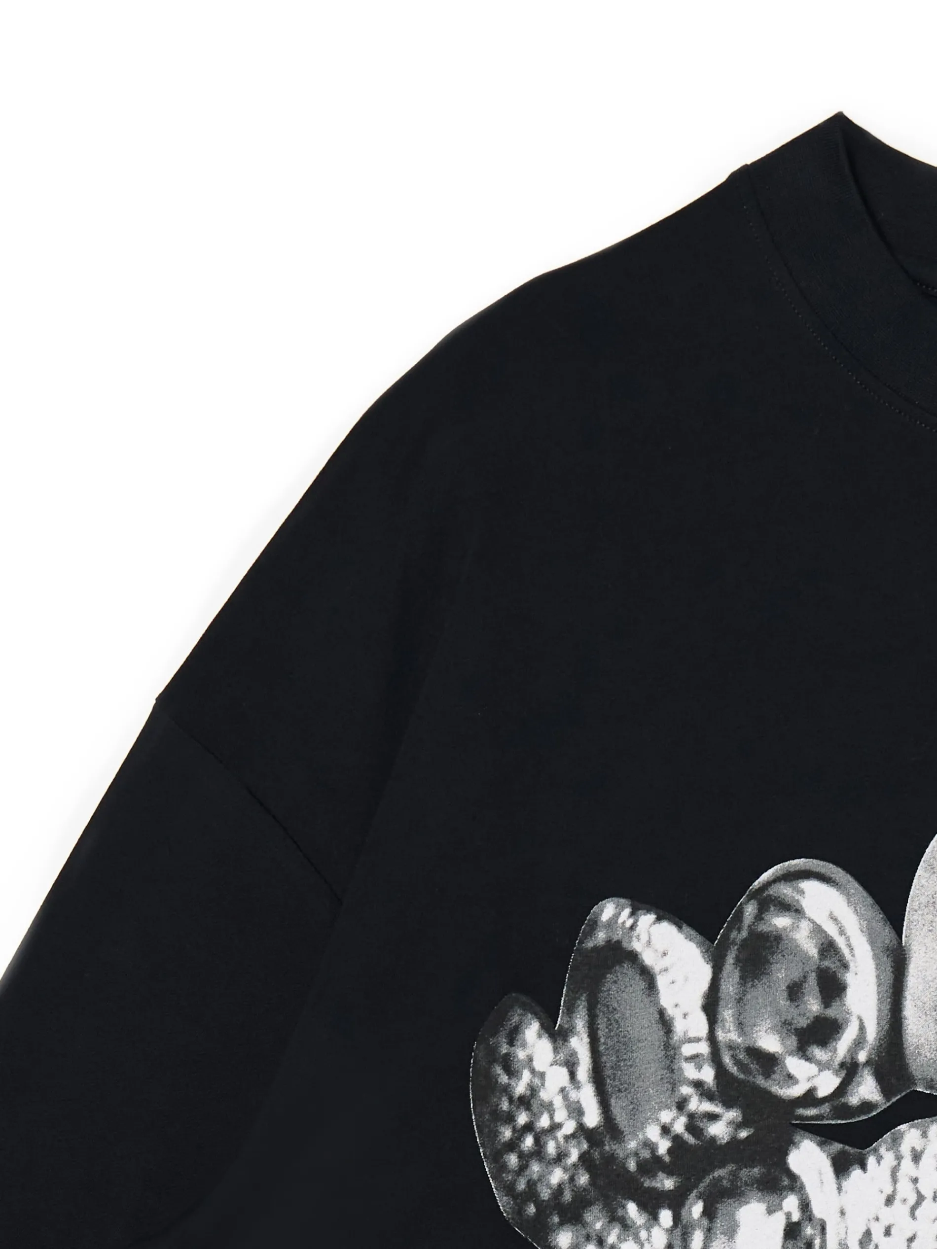 T-shirt z krótkim rękawem o kroju boxy uszyty z bawełnianej dzianiny z motywem trasy koncertowej „It’s Almost Dry Tour” rapera Pusha T. 100% bawełny obszerny krój boxy krótkie, szerokie rękawy oryginalny print duży tekstowy nadruk z tyłu Model prezentuje produkt w rozmiarze M/L. Wzrost modela: 185 cm © Bravado