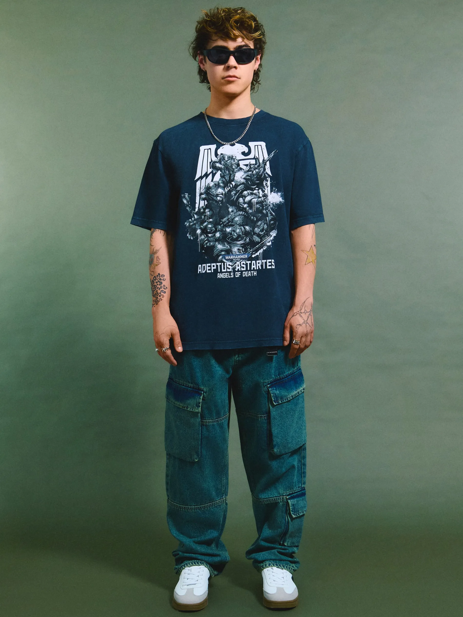 Męska czarna koszulka, uszyta w 100% z bawełny. Idealny pomysł na prezent dla fanów gier komputerowych. regularny krój krótkie rękawy z przodu duży nadruk z Warhammera Warhammer 40,000 © Copyright Games Workshop Limited. All rights reserved.
