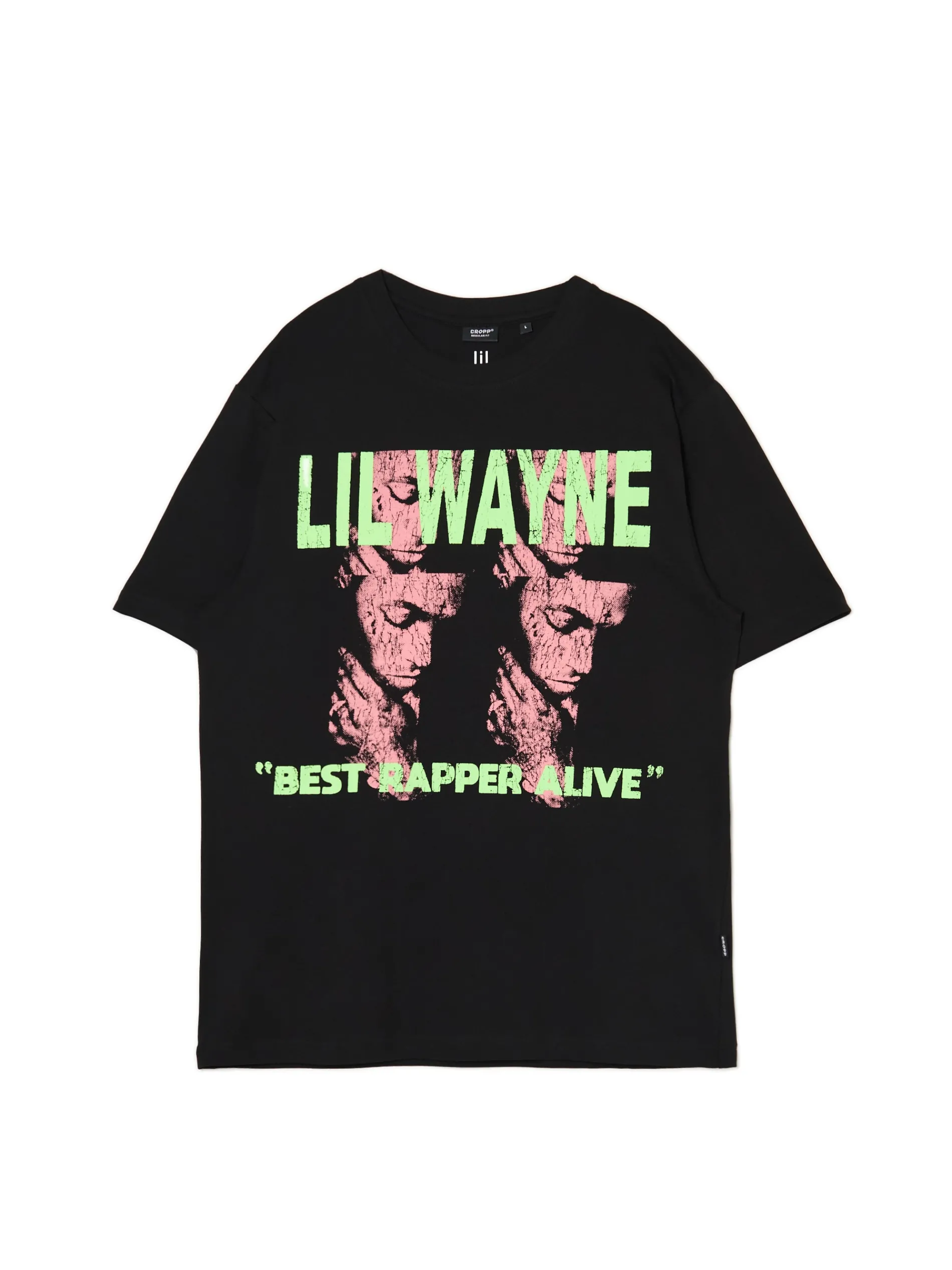 Męska bawełniana koszulka typu regular w kolorze czarnym. Na przodzie licencjonowany nadruk inspirowany sztosowym trackiem „Best Raper Alive” z piątego albumu Lil Wayne’a 'The Carter II’. 100% bawełny regularny krój krótkie, swobodne rękawy z przodu nadruk z raperem Lil Waynem Wzrost modela: 185 cm © 2024 YOUNG MONEY MERCHANDISING, INC. UNDER LICENSE TO BRAVADO INTERNATIONAL GROUP. ALL RIGHTS RESERVED.