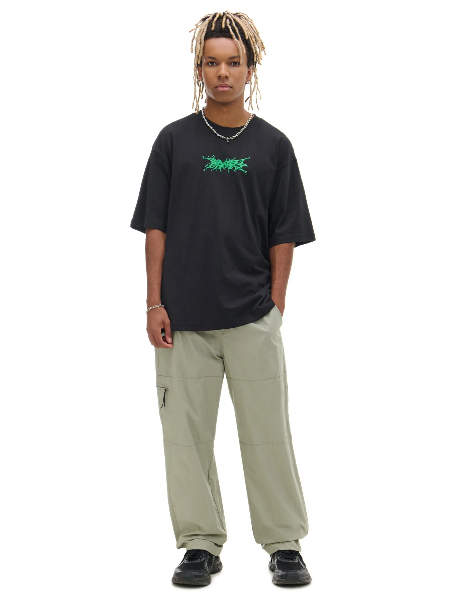 Męska bawełniana koszulka o kroju comfort, uszyta z dzianiny z efektem sprania i nieszablonowym nadrukiem po obu stronach. 100% bawełny wygodny krój comfort okrągły dekolt z lamówką krótkie, swobodne rękawy oryginalny print
