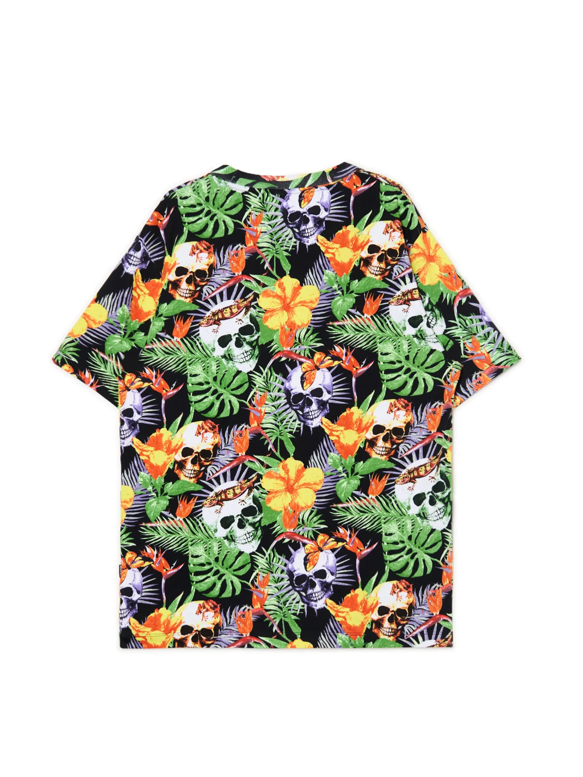 Bawełniana męska koszulka z krótkim rękawem i oryginalnym printem na całym materiale. 100% bawełny regularny krój krótkie, szerokie rękawy delikatnie obniżona linia ramion nadruk z motywem roślinnym na całej powierzchni