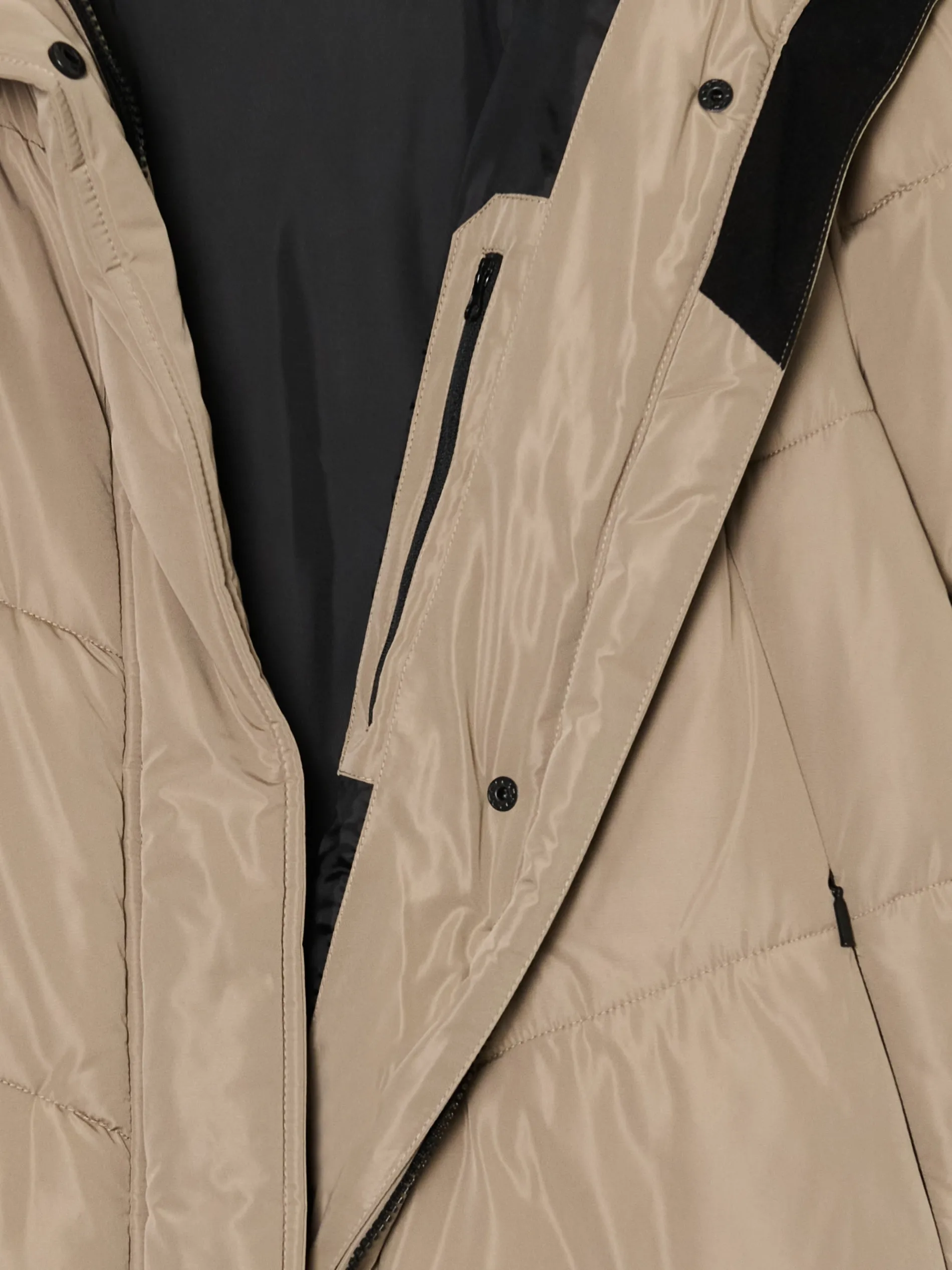 Mamy wyjątkowy item dla miłośniczek klasyków. Damski płaszcz z ociepleniem idealny na zimową aurę. Regularne pikowanie na całości pod skosem dodaje szyku, a praktyczne kieszenie i regulacja kaptura zapewniają komfort noszenia. ocieplany płaszcz o regularnym kroju pikowanie na całości wykończenie na podszewce z tafty zapięcie na zamek i zatrzaski ukryte pod listwą wysoka stójka i regulowany kaptur na kapturze przelotka ze stoperem do regulacji dodatkowe tunele na troczki długie rękawy wykończone elastycznym ściągaczem kieszenie boczne z zamkami wewnątrz kieszeń zapinana na zamek