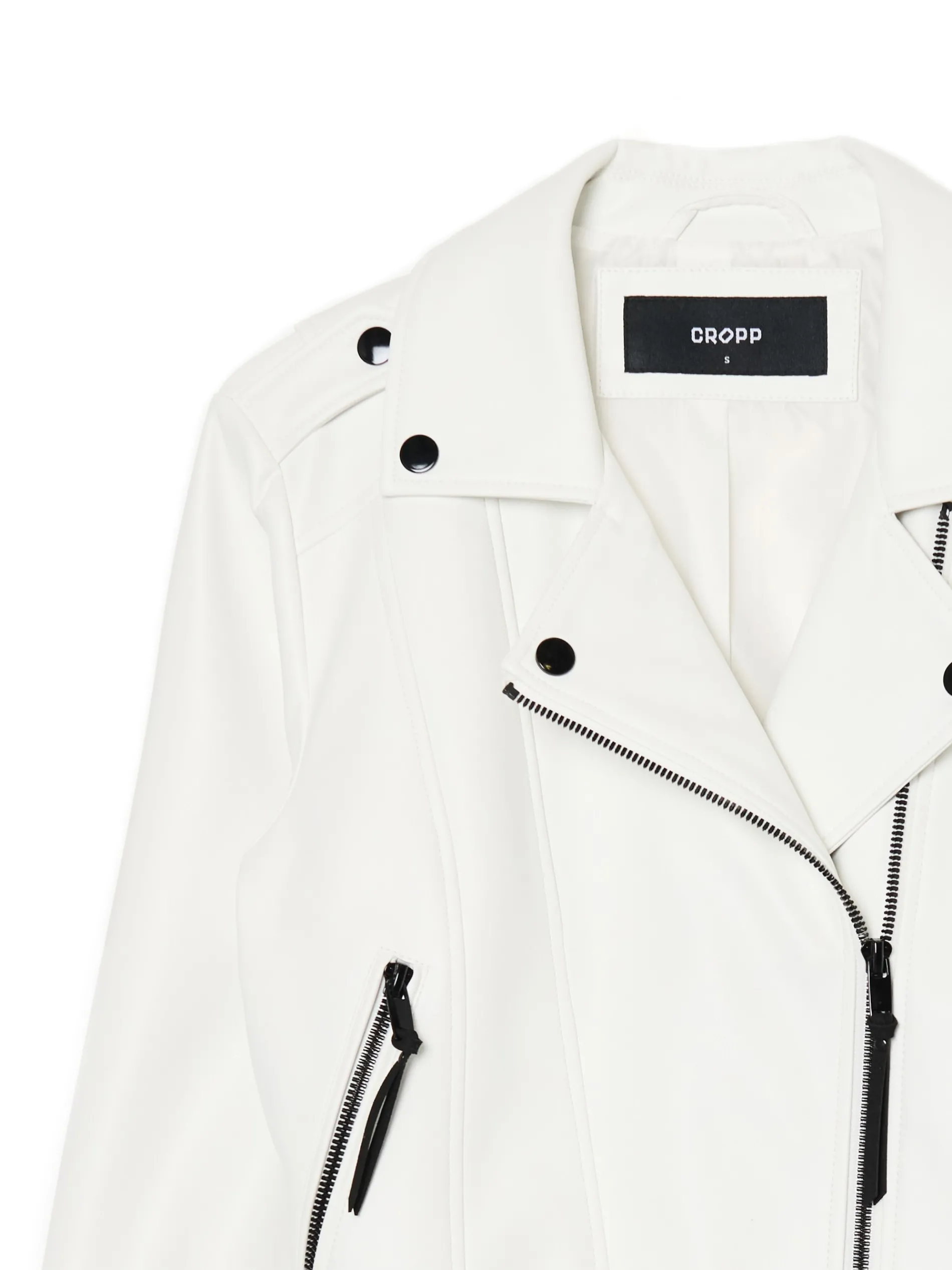 Cropp Kurtki, Płaszcze*Biała kurtka biker z imitacji skóry