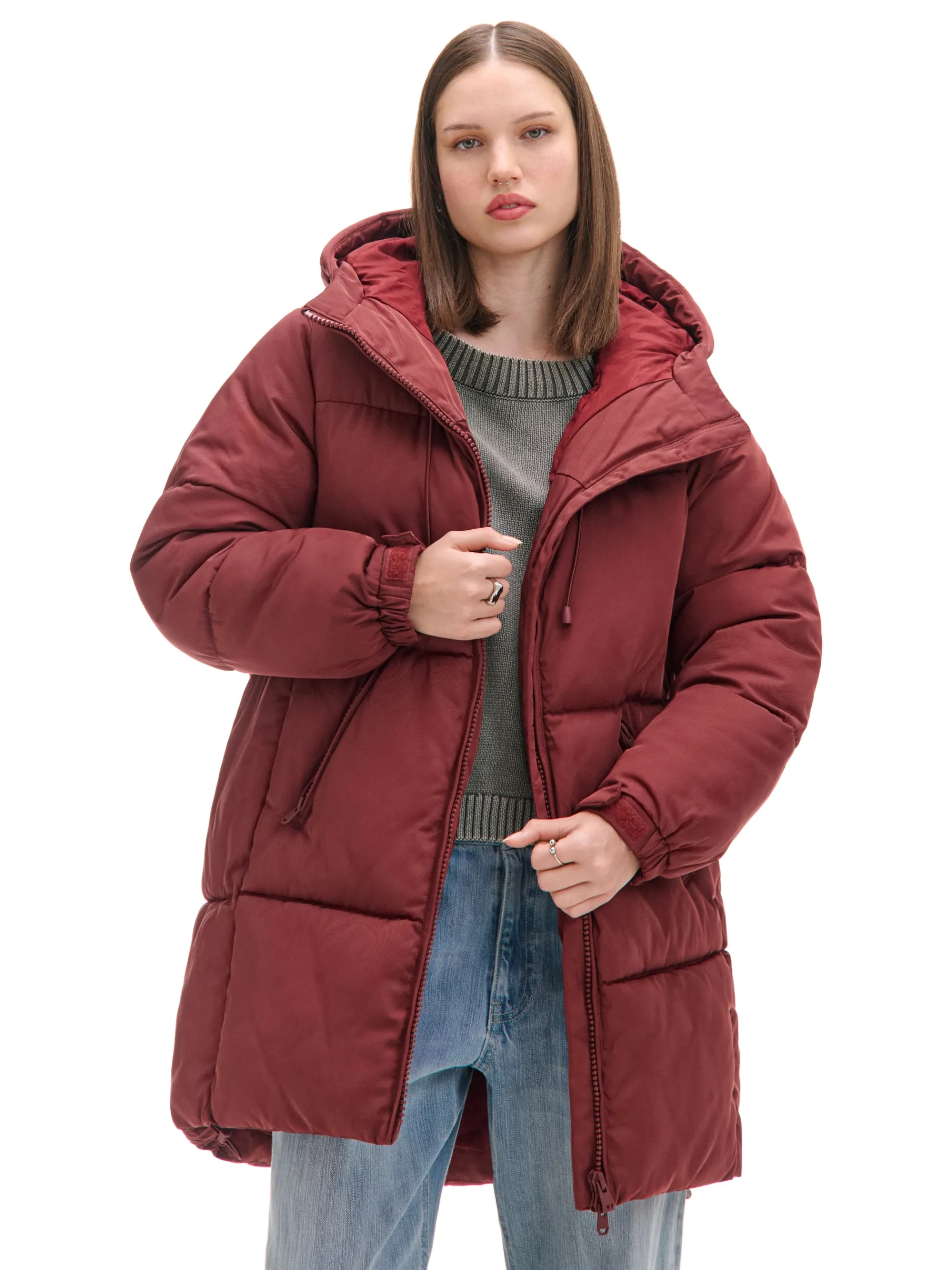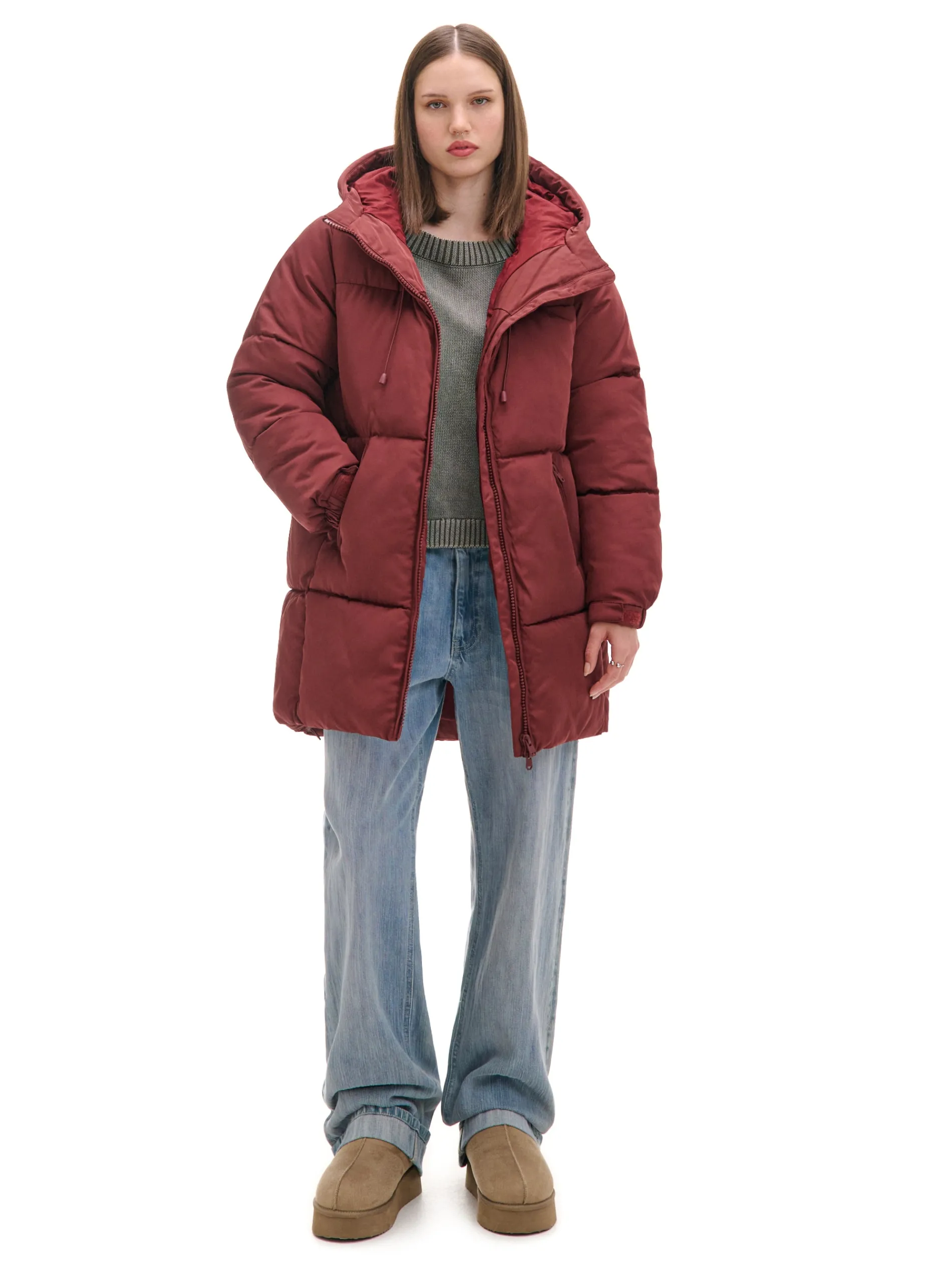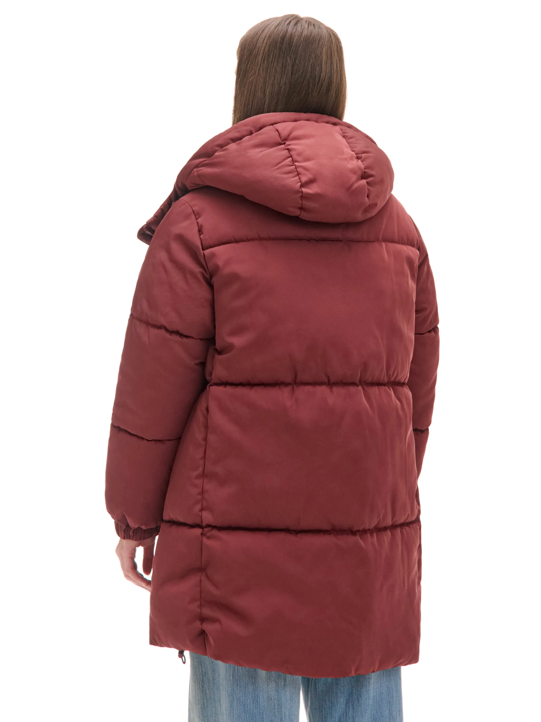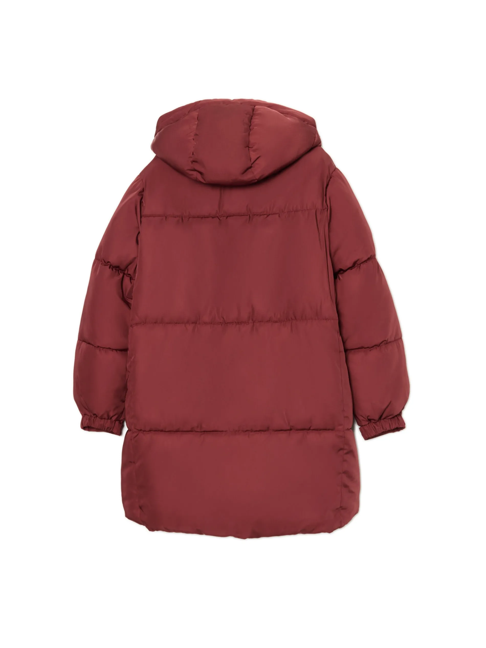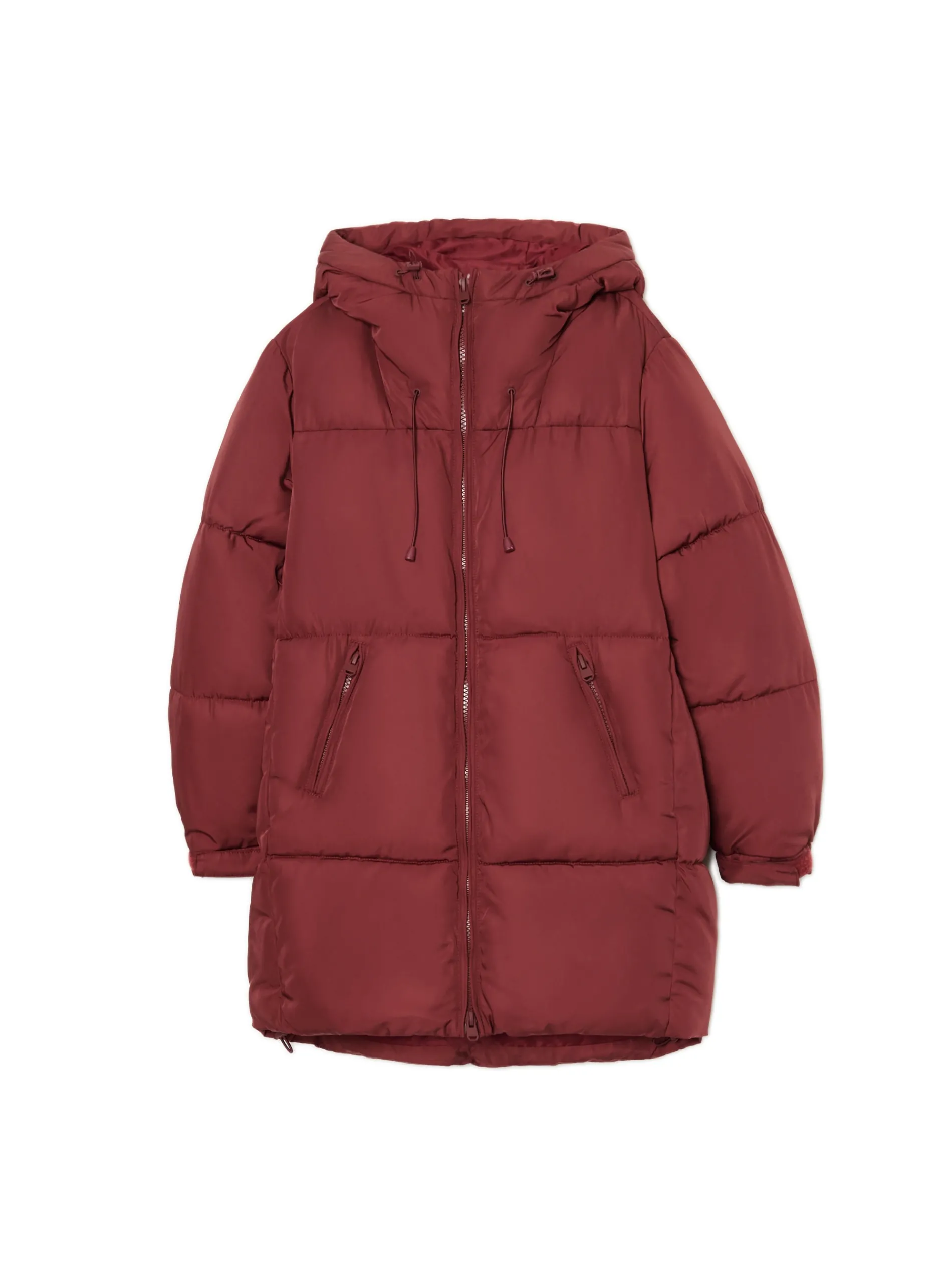 Cropp Kurtki, Płaszcze*Bordowy pikowany płaszcz z kapturem