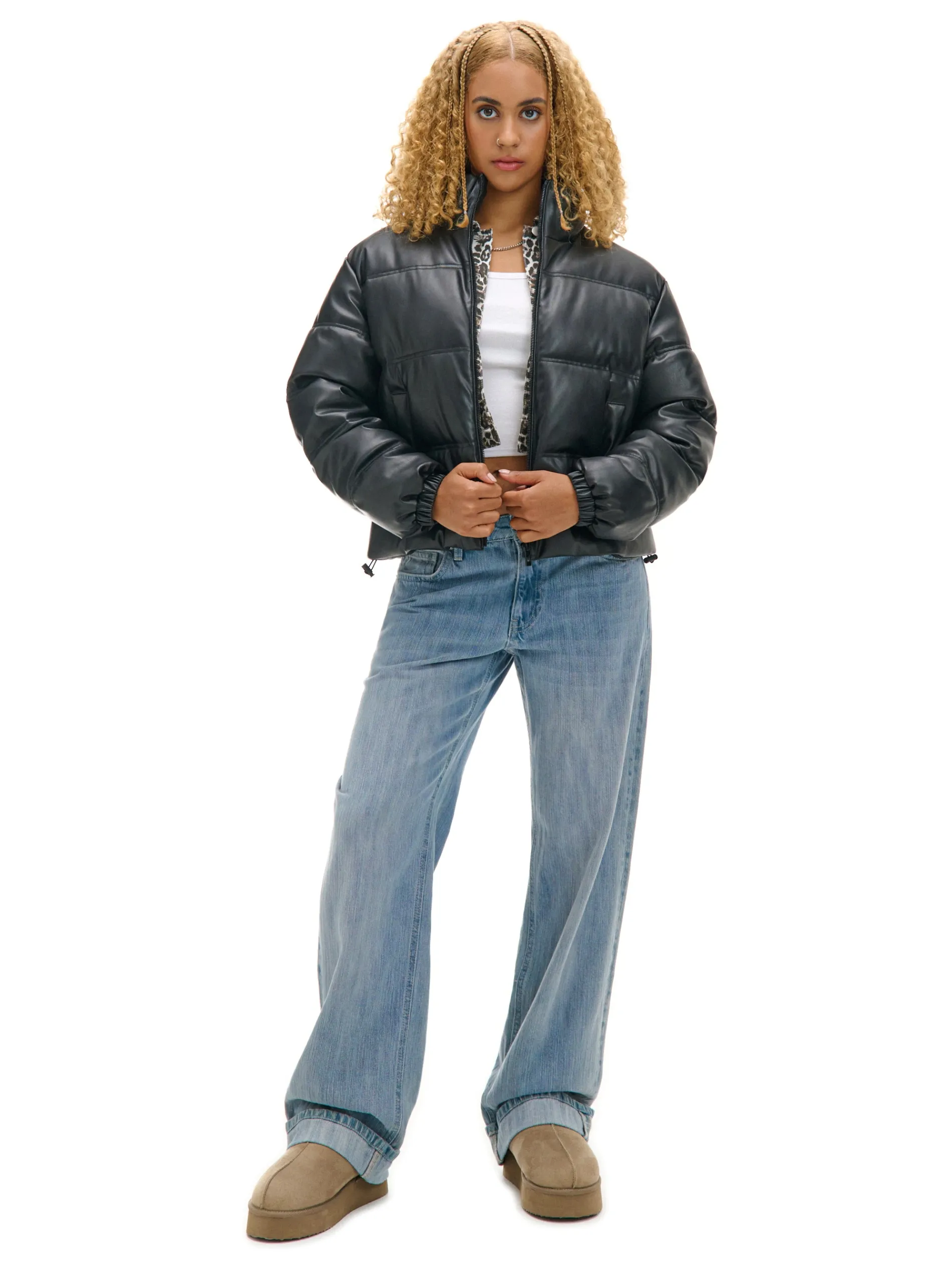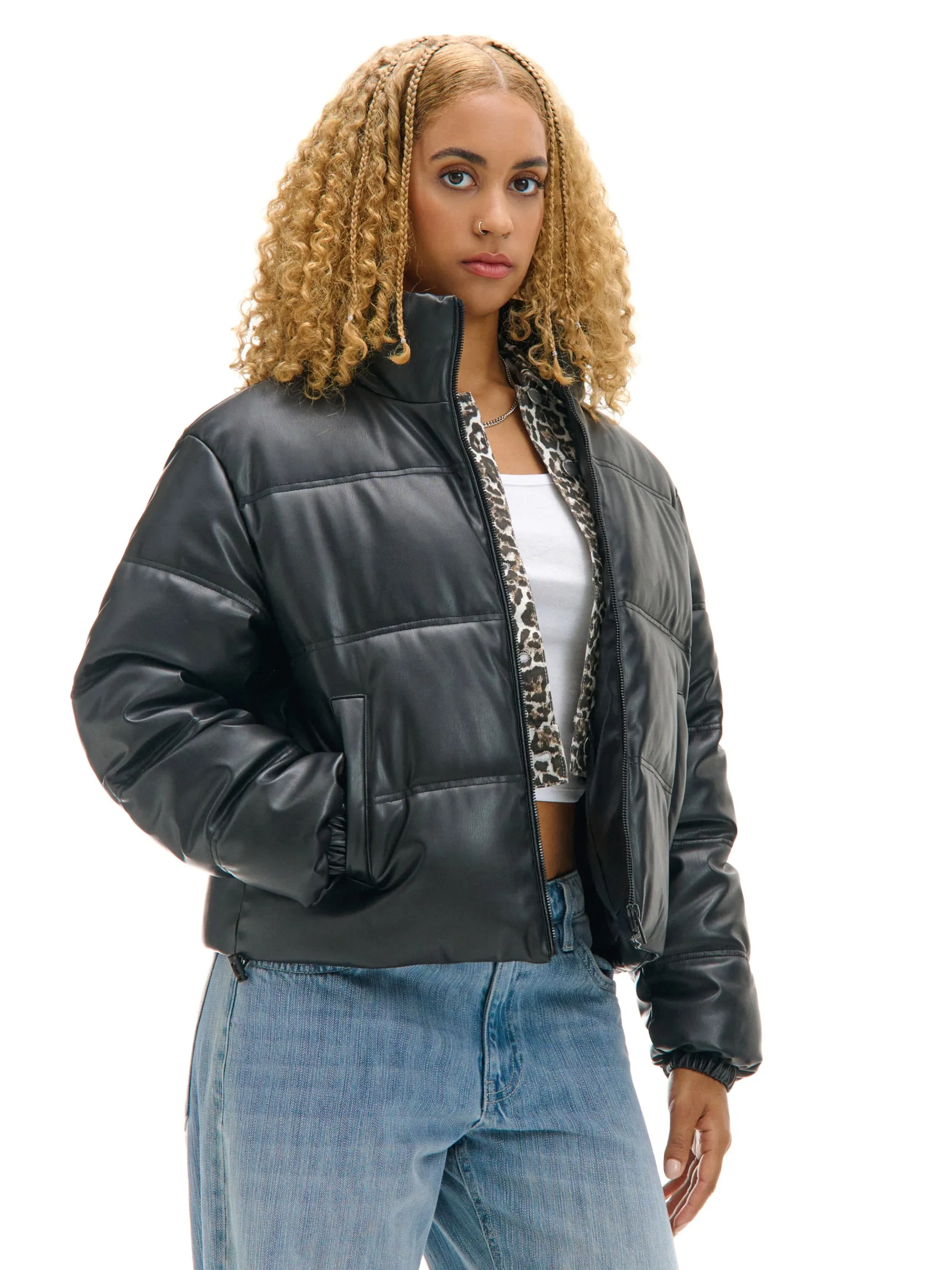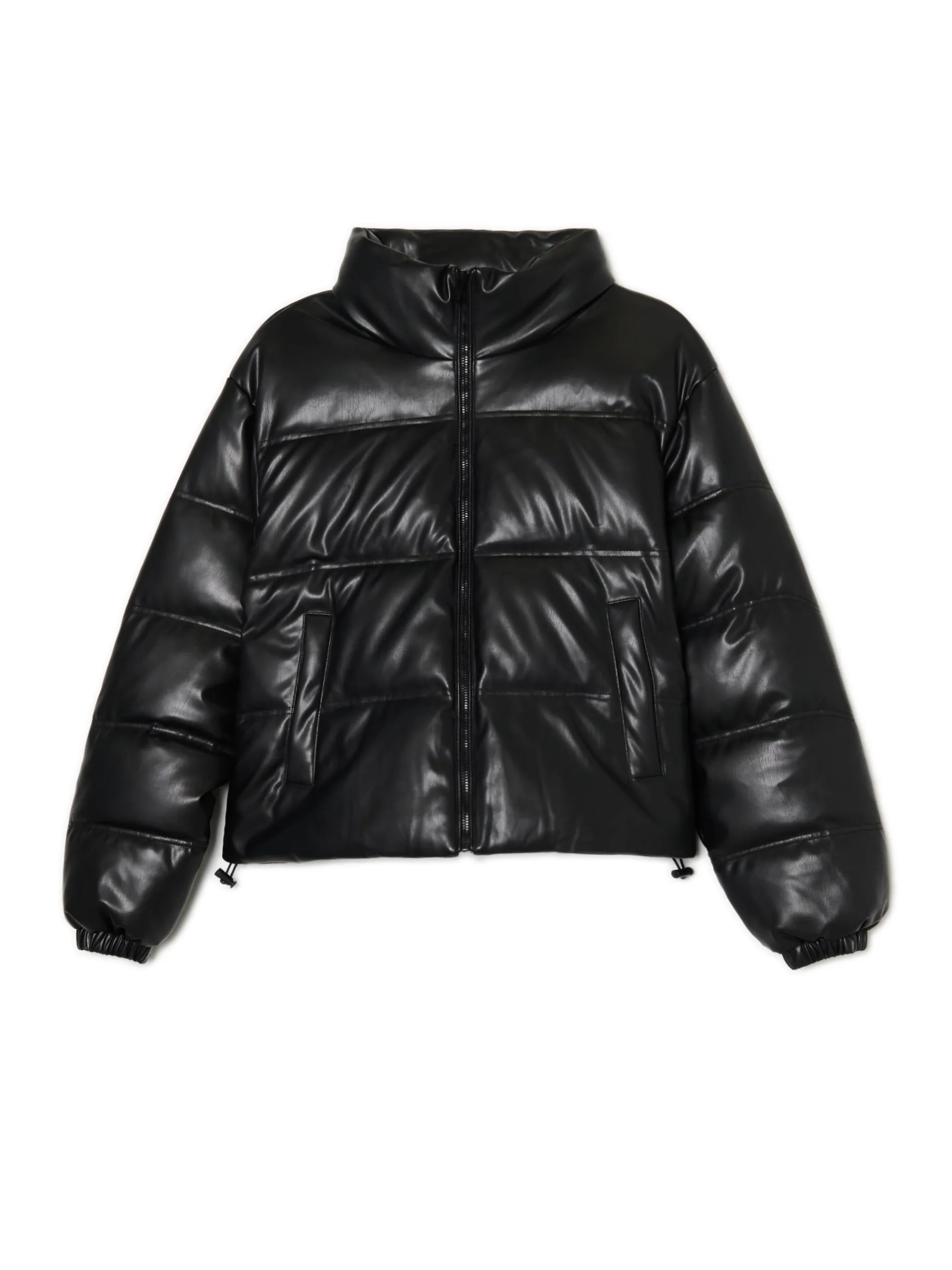 Cropp Kurtki, Płaszcze*Czarna kurtka puffer z efektem skóry