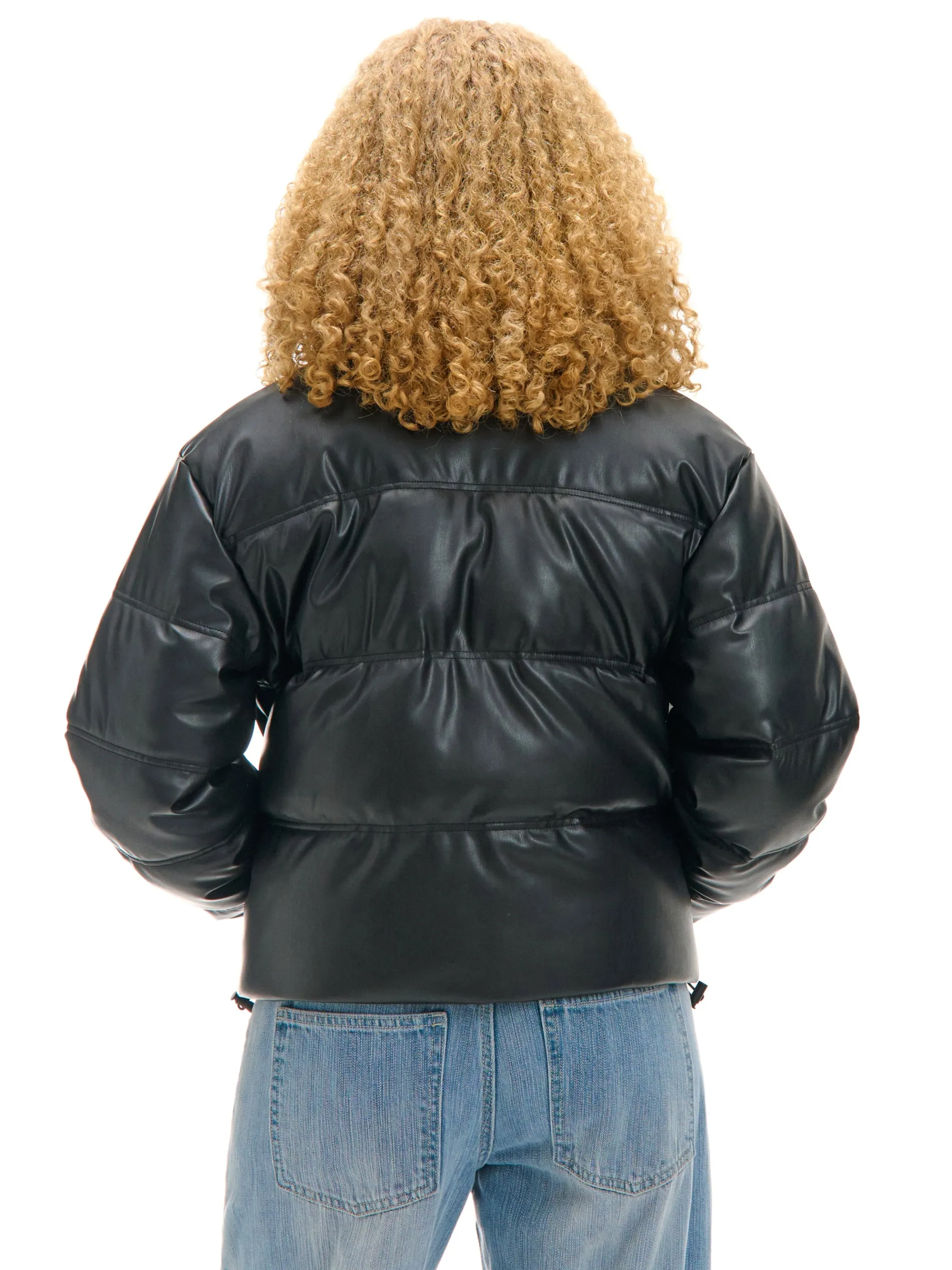 Dzięki tej pikowanej damskiej kurtce typu puffer wykonanej z imitacji skóry, nie przejdziesz niezauważona. Genialny outerwear na zimę do sportowych i casualowych stylizacji. ocieplana kurtka typu puffer regularny krój pikowanie na całości zapięcie na zamek na całej długości wysoki kołnierz długie rękawy zakończone gumką dwie kieszenie z przodu dół zakończony gumką ze stoperem