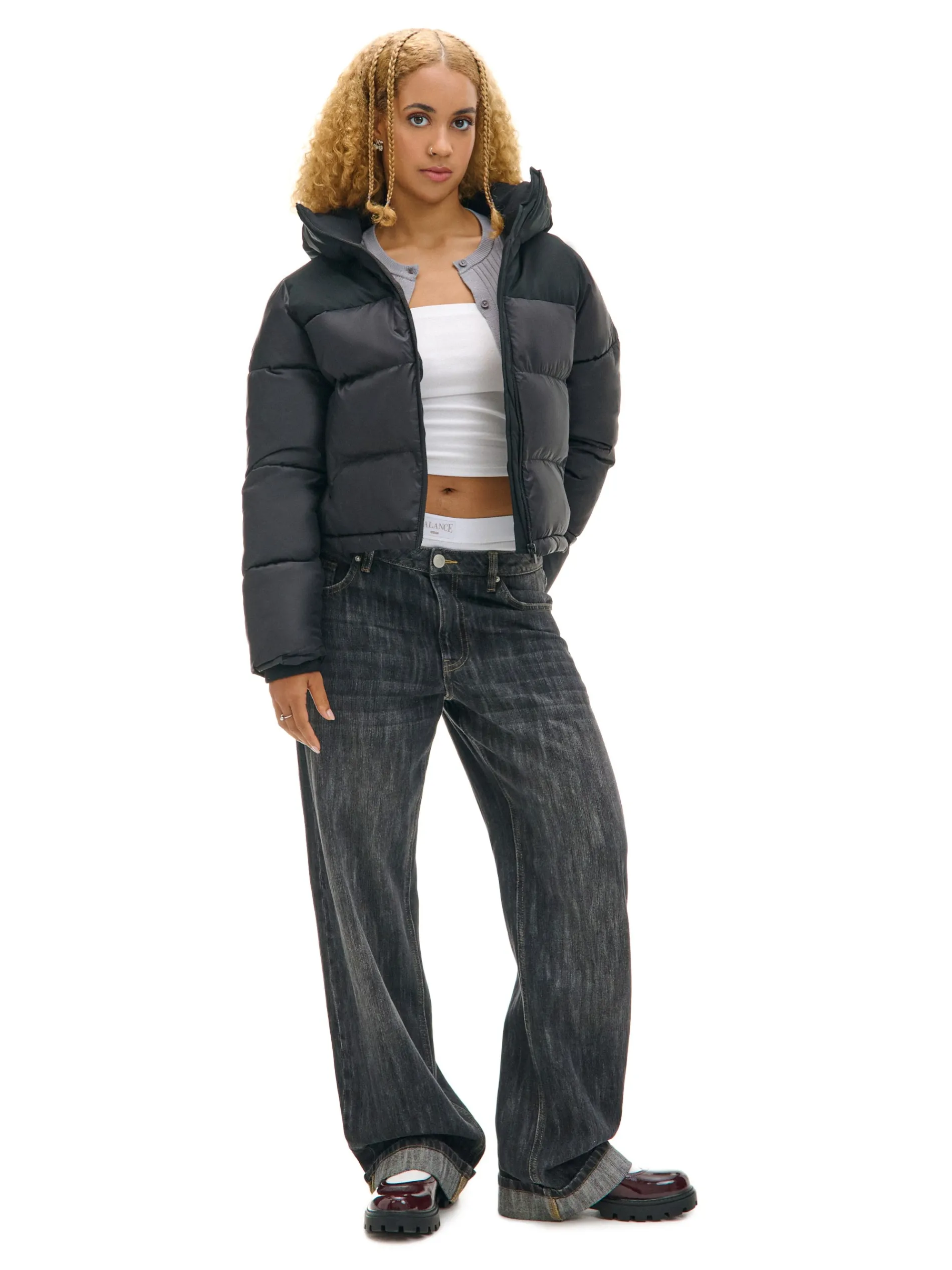 Cropp Kurtki, Płaszcze*Czarna kurtka puffer z gładkim karczkiem