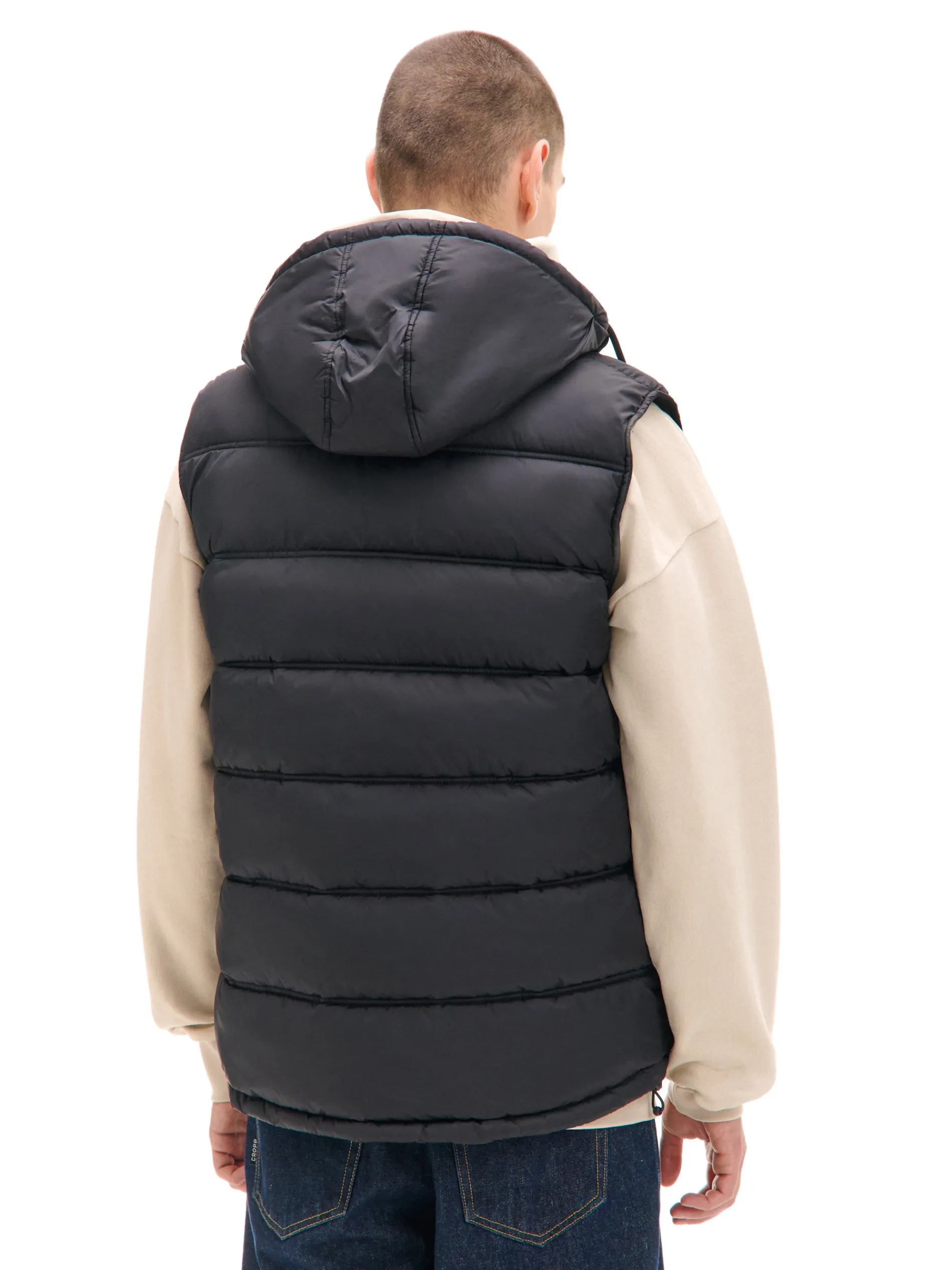 Cropp Kurtki, Płaszcze*Czarna pikowana kamizelka z kapturem