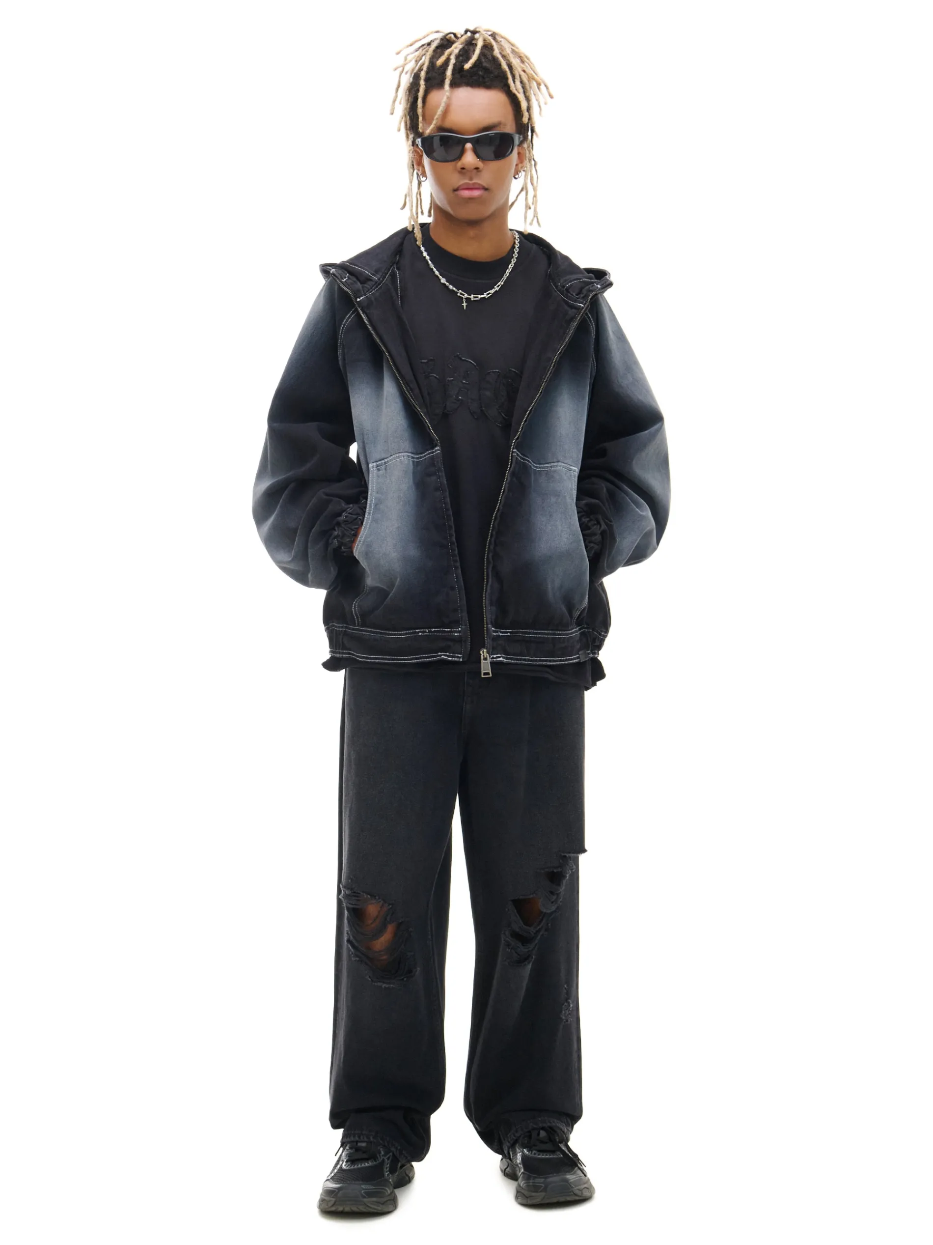 Denimowa kurtka katanka o regularnym kroju, uszyta w 100% z bawełnianej tkaniny. Wyróżniają ją kontrastowe przeszycia oraz efekt przetarcia po obu stronach i na rękawach. denimowa katanka z kieszeniami regularny krój zapięcie na metalowy zamek obszerny kaptur długie rękawy ze ściągaczem wewnątrz mankietów otwarte kieszenie po bokach kontrastowe przeszycia ozdobne przetarcia PROTECTION LEVEL 1rn rnKurtka uszyta z tkaniny, której właściwości zapewnią Ci ochronę przed wiatrem. Możesz ją nosić jako lekkie okrycie wierzchnie i łączyć z cieplejszymi ubraniami.