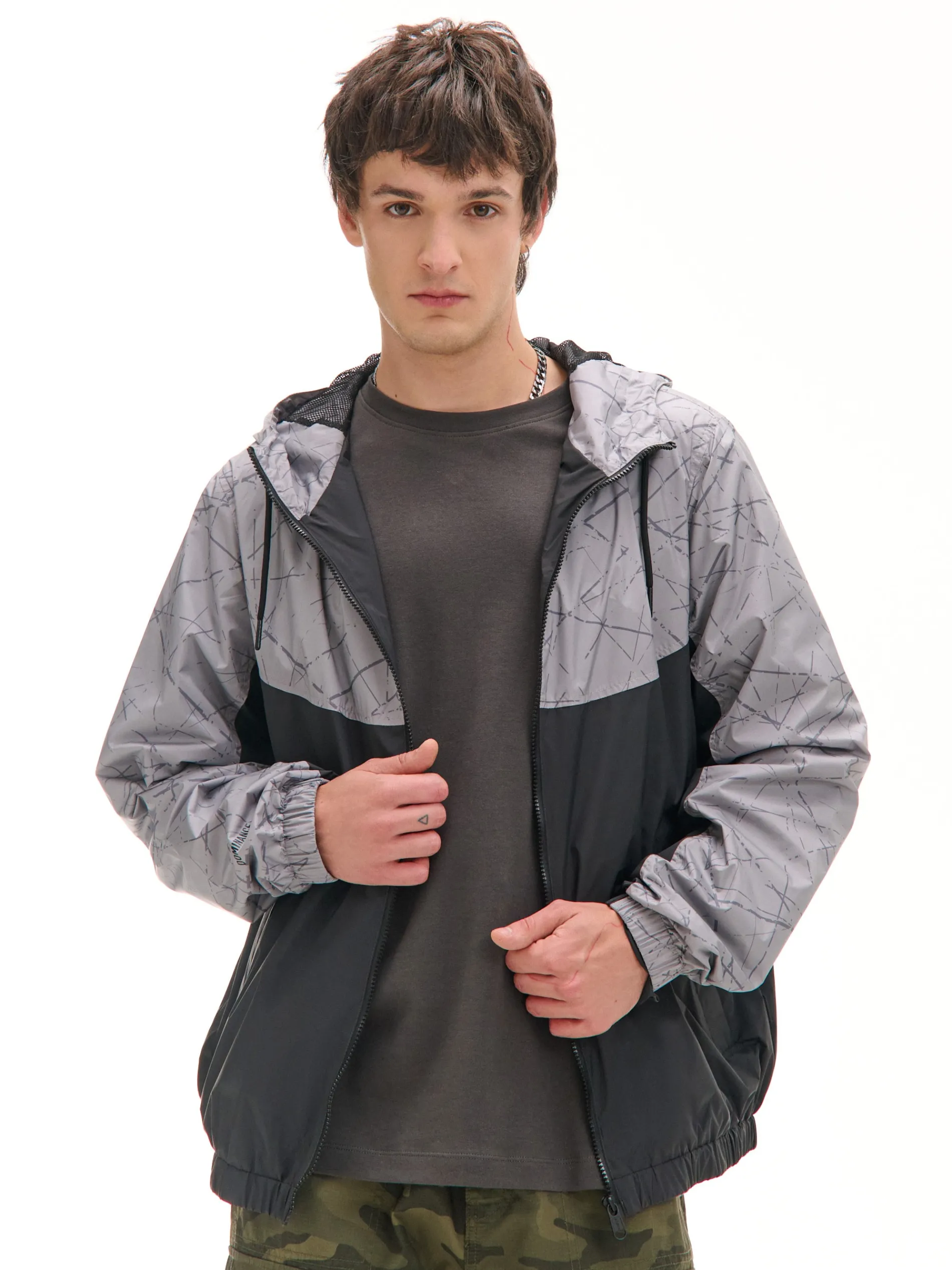 Męska kurtka z kapturem, uszyta z bardzo lekkiego materiału. Dodatkowo wyposażona w praktyczne kieszenie i przewiewną, siateczkową podszewkę. Kurtka ma certyfikat wodoodporności. Item, który warto mieć awaryjnie przy sobie! uszyta z wodoodpornego materiału wewnątrz siateczkowa podszewka zapięcie na zamek na całej długości kaptur regulowany troczkami dół i rękawy wykończone ściągaczem kieszenie boczne z zamkami wewnątrz kieszeń zapinana na rzep nadruki z przodu, na plecach i na rękawie PROTECTION LEVEL 1 + MEMBRANE COATINGnKurtka uszyta z tkaniny, której właściwości chronią przed wiatrem. nMożesz ją nosić jako lekkie okrycie wierzchnie i łączyć z cieplejszymi ubraniami. nMateriał kurtki został wykończony membraną, gwarantującą dobry poziom wodoodporności i oddychalności.