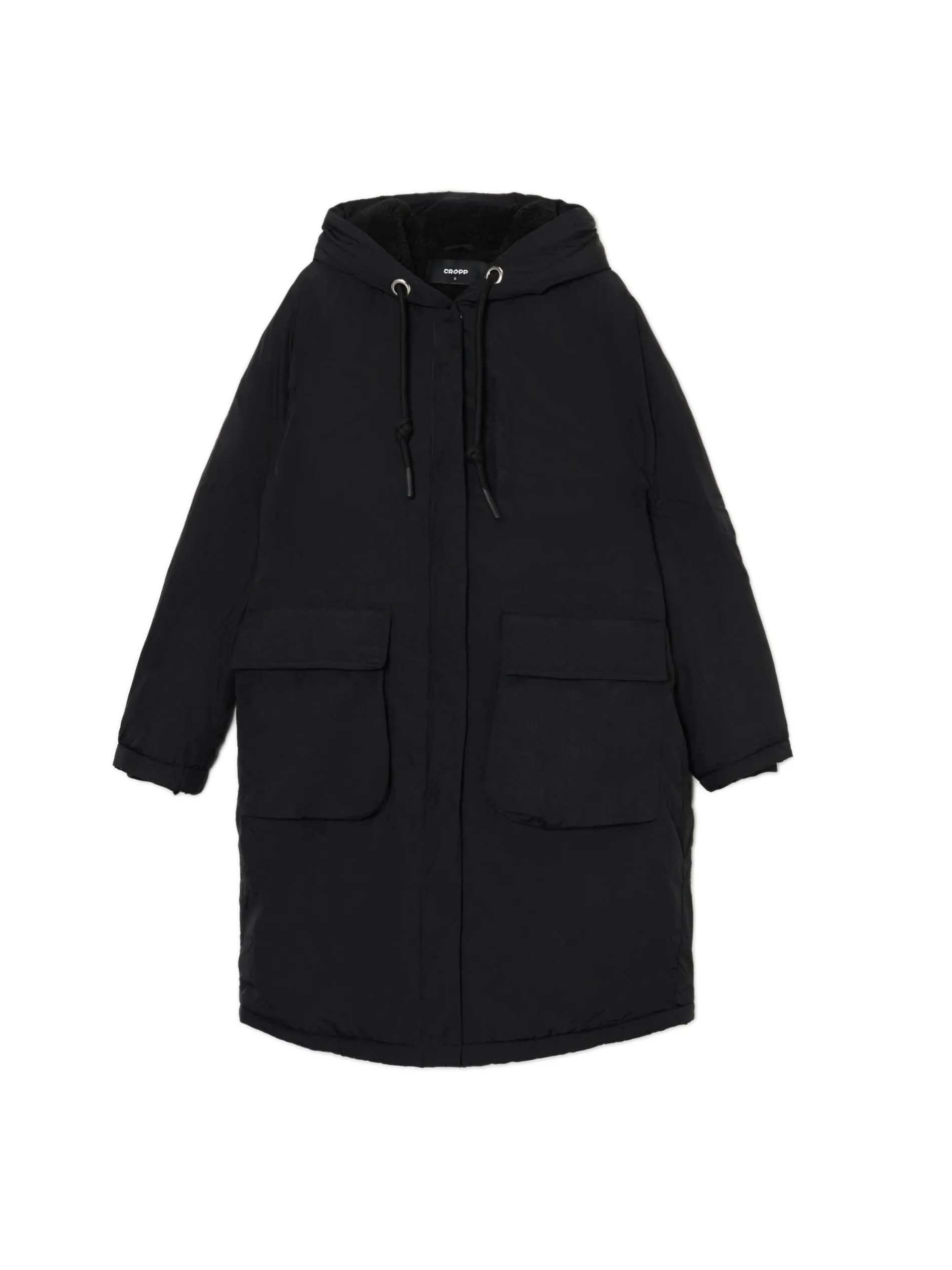 Cropp Kurtki, Płaszcze|Kożuszki, Futerka*Czarna parka z kapturem