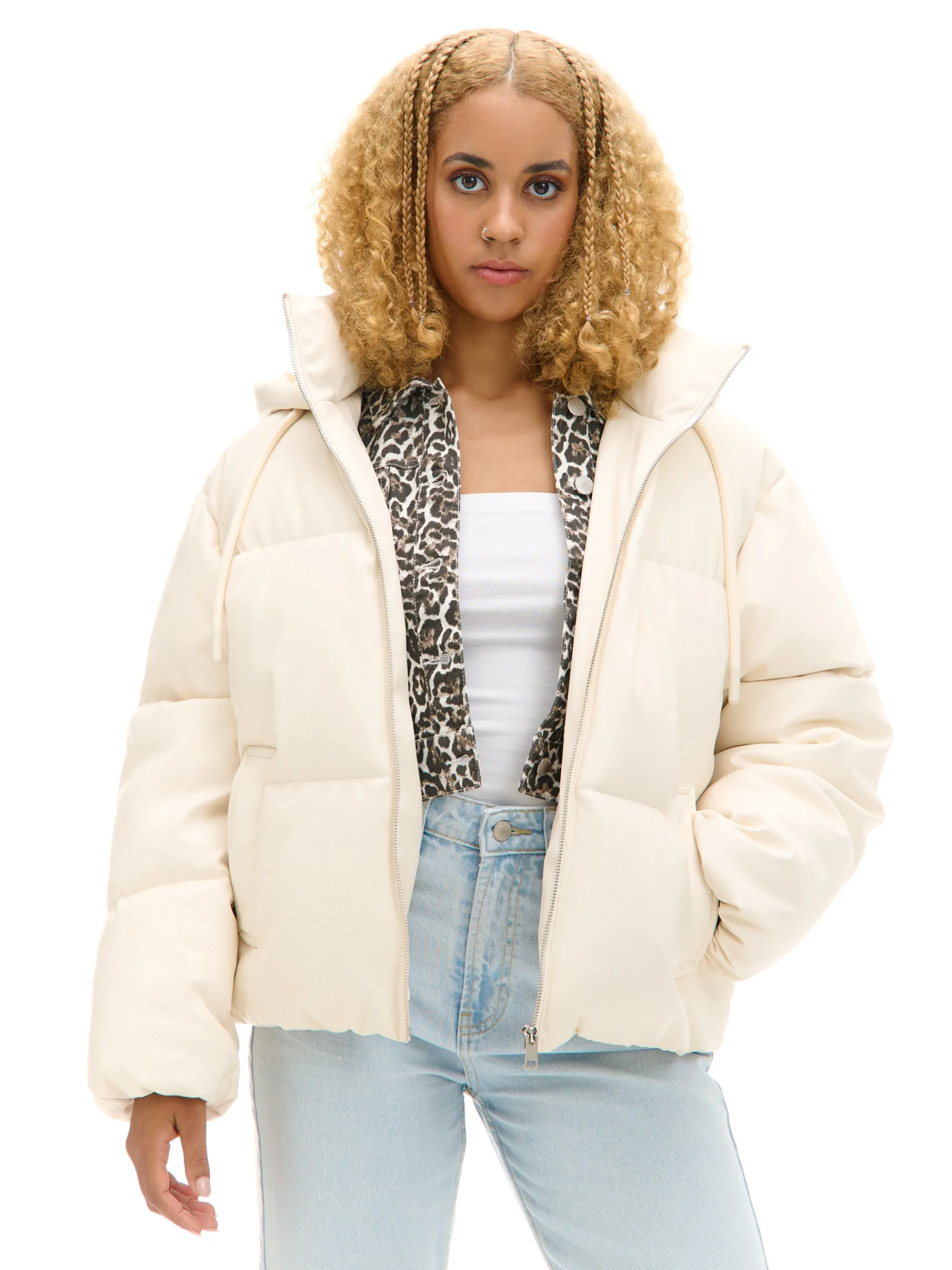 Cropp Kurtki, Płaszcze*Kremowa kurtka puffer z kapturem