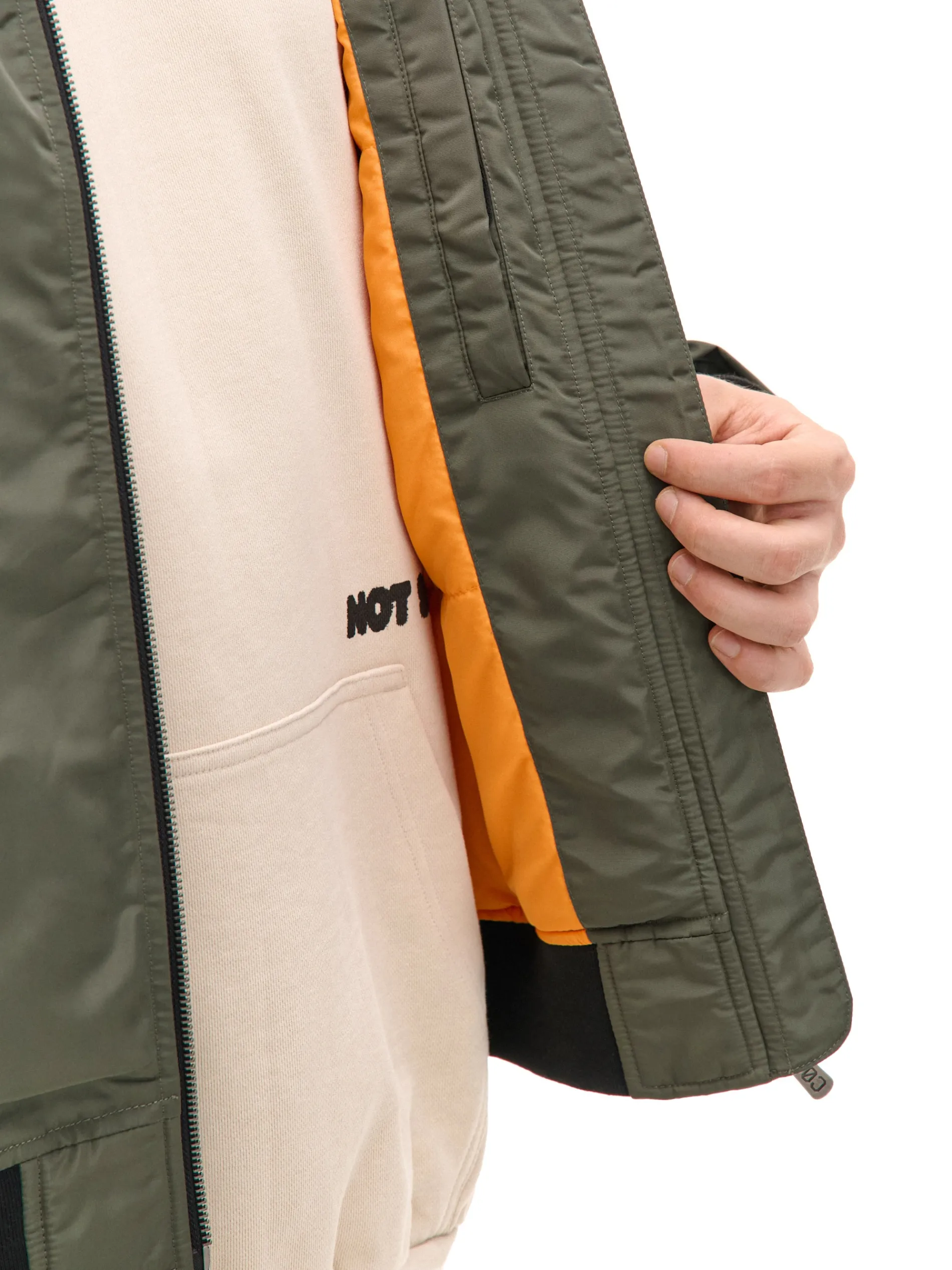 Męska lekka kurtka typu bomber, idealna na sezon przejściowy. Przeszycie na plecach, metalowe zapięcie, czy kieszenie na zamek, rzep i napy, to tylko nieliczne z zalet tego modelu. lekka kurtka typu bomber o regularnym kroju wewnątrz pikowana podszewka wewnętrzna strona materiału w kontrastowym, pastelowym odcieniu zapięcie na metalowy zamek kołnierz z niską stójką dół i rękawy wykończone prążkowanym ściągaczem dwie kieszenie zapinane na napy dodatkowa kieszeń na rękawie wewnątrz kieszeń zapinana na rzep PROTECTION LEVEL 2rn Kurtka uszyta z tkaniny z lekkim wypełnieniem, której właściwości zapewnią Ci ochronę przed wiatrem i deszczem. Doskonale sprawdzi się w sezonie przejściowym.
