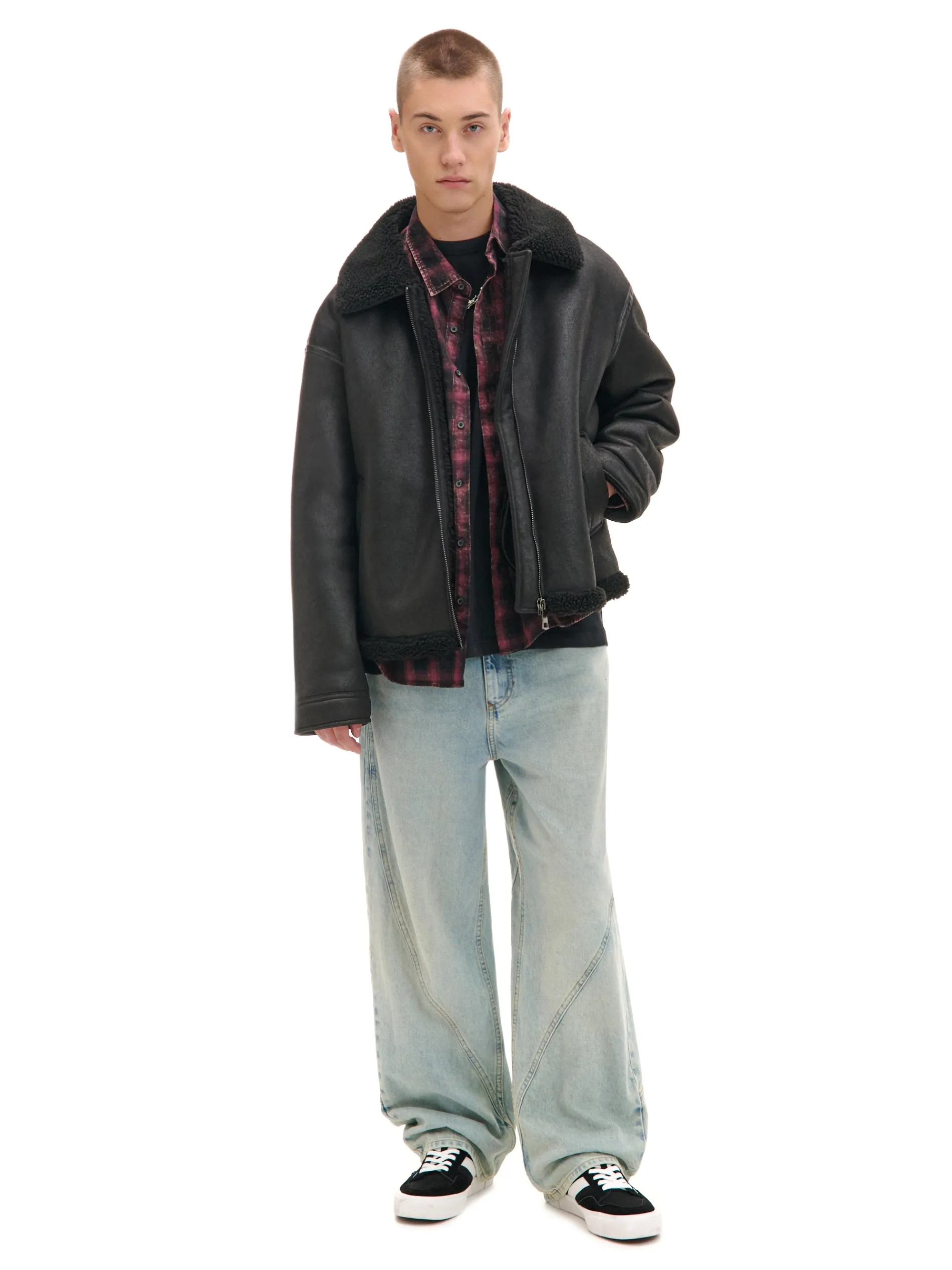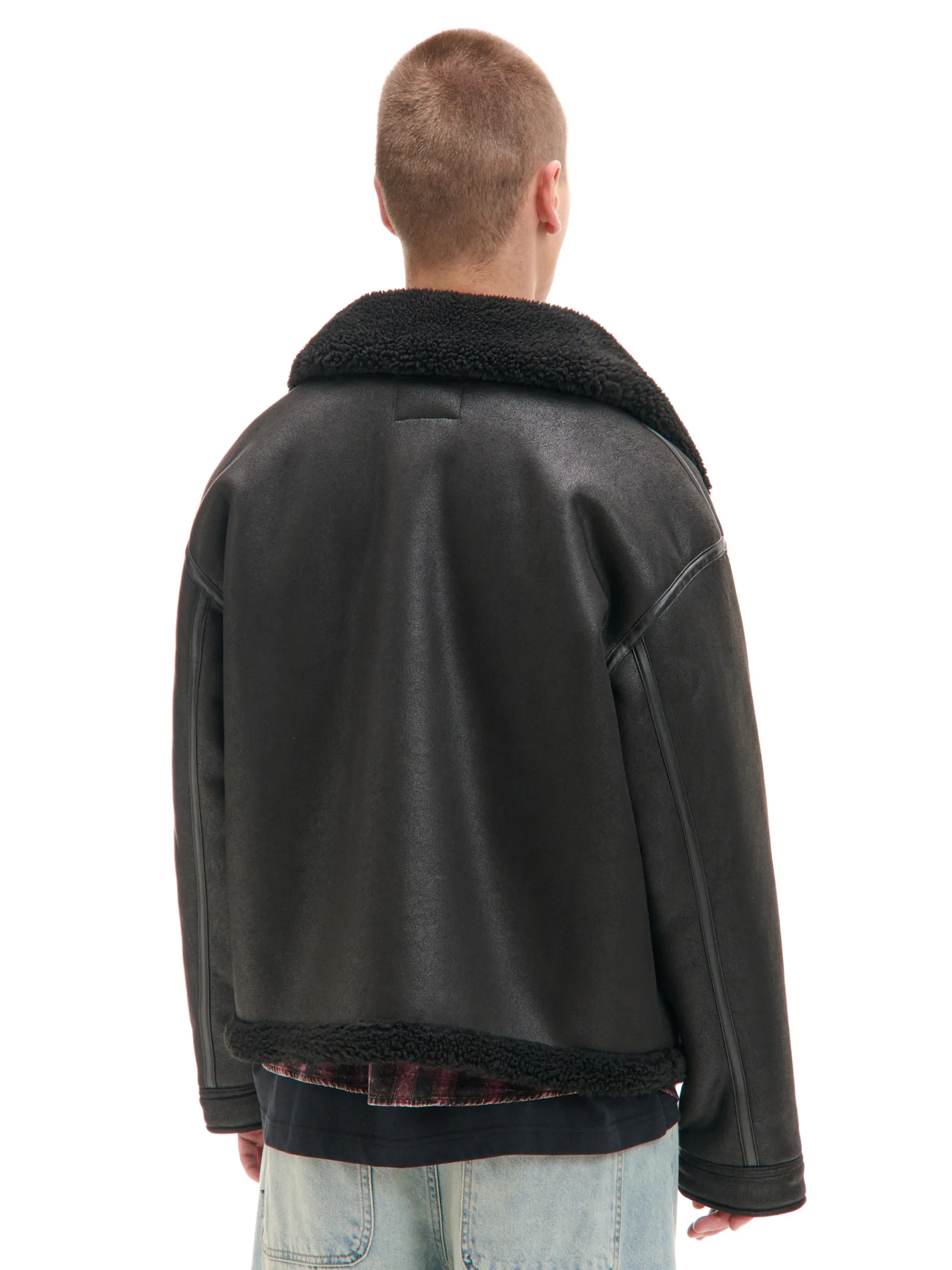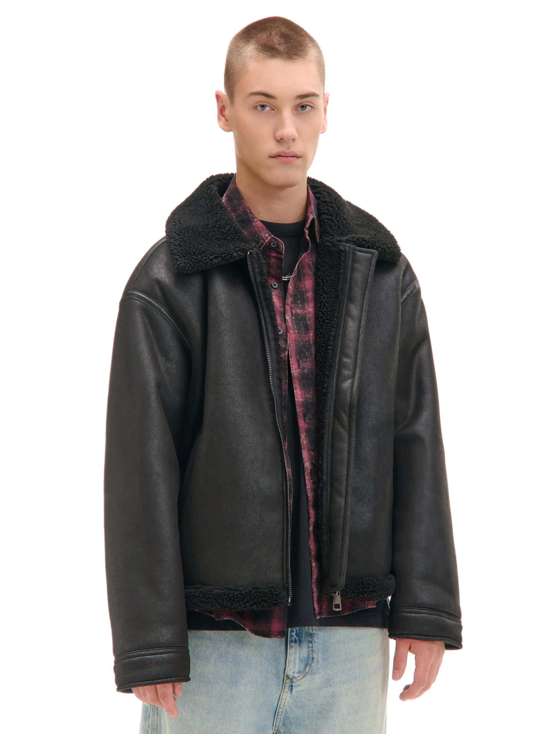 Stylowa męska kurtka typu shearling z matowej ekologicznej skóry już w sprzedaży. Wykończenie wewnątrz i kołnierz wykonane z miękkiego baranka. Oldschoolowy klasyk, w który warto zaopatrzyć się w sezonie przejściowym. przejściowa kurtka sherpa o regularnym kroju uszyta z imitacji skóry wykończenie na podszyciu ze sztucznego baranka zapinana na zamek na całej długości szeroki kołnierz długie rękawy z obniżoną linią ramion dwie kieszenie po bokach Wzrost modela: 185 cm PROTECTION LEVEL 3rn Kurtka uszyta z tkaniny z większym ociepleniem, której właściwości zapewnią Ci nie tylko ochronę przed wiatrem i deszczem, ale też niskimi temperaturami.