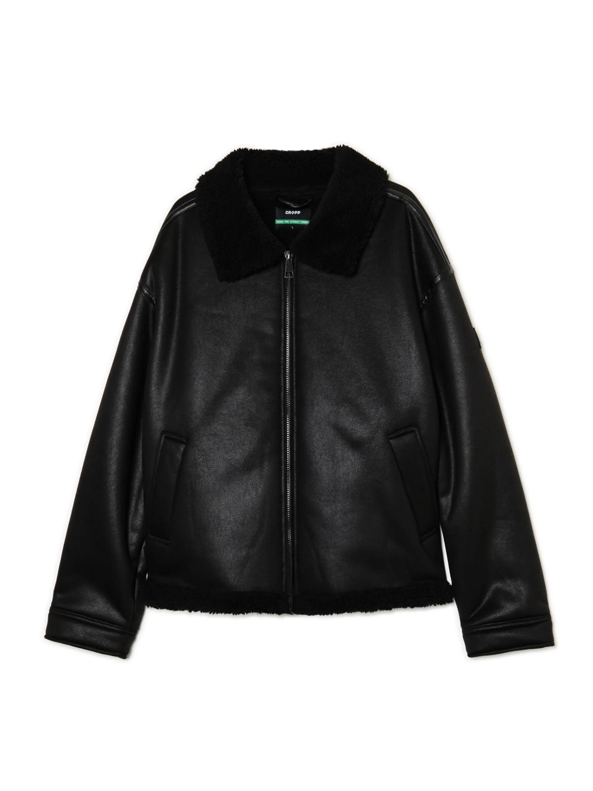 Cropp Kurtki Zimowe|Kurtki, Płaszcze*Czarna kurtka sherpa z imitacji skóry