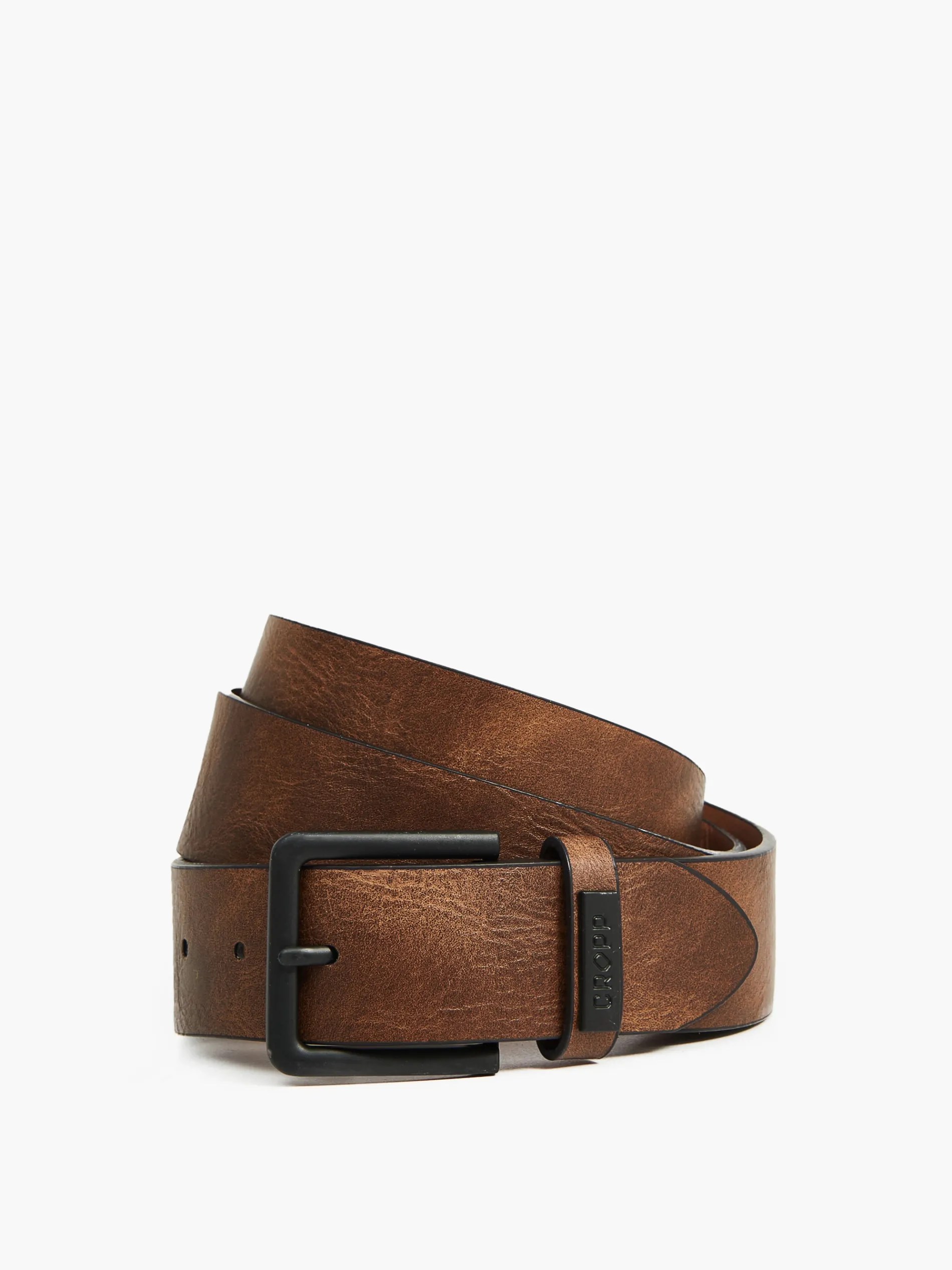 Męski pasek do spodni w kolorze brązowym, wykonany z imitacji skóry.
