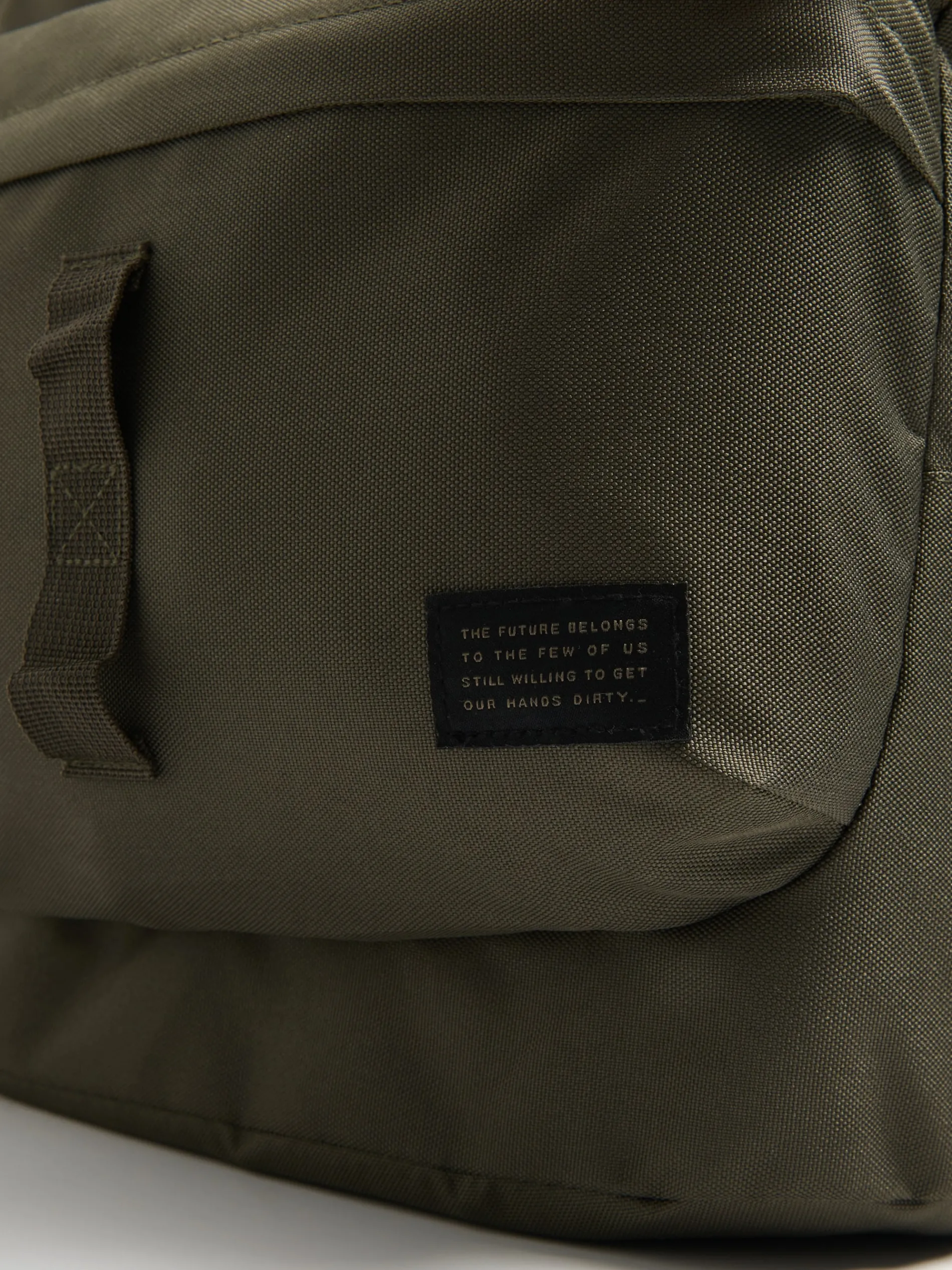 Męski plecak typu basic, uszyty z łączonych materiałów w kolorze oliwkowym. Idealny do pracy, szkoły, czy spontaniczny wypad za miasto. regulowane, szerokie szelki miękki materiał przy paskach główna komora z zapięciem na zamek wewnątrz otwarta kieszeń dodatkowa kieszeń zewnętrzna z zapięciem na zamek poręczny uchwyt u góry naszywka z przodu Wymiary plecaka: 48cm x 35cm x 15cm