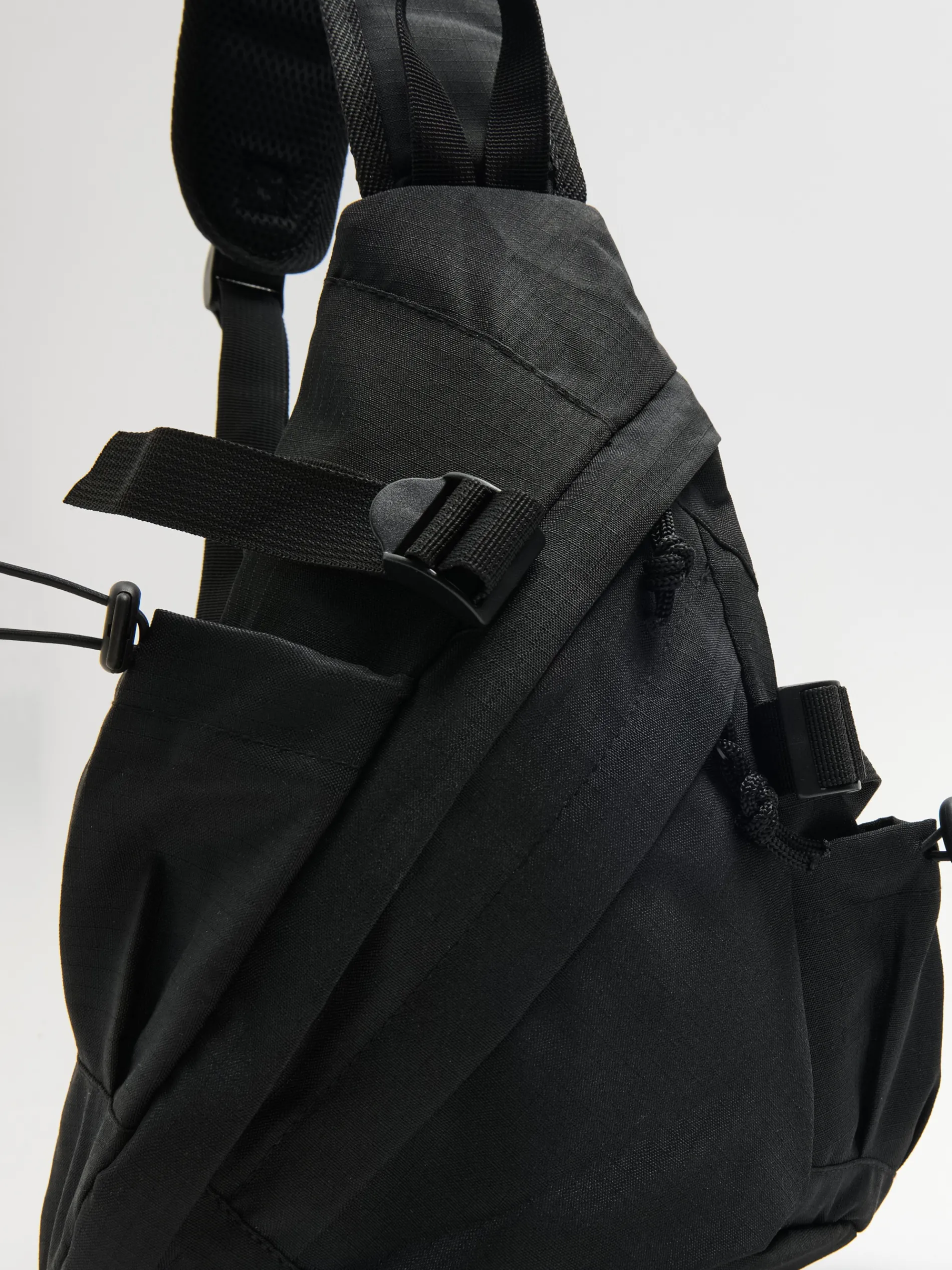 Męski plecak, który możesz nosić na ramieniu lub na plecach. Uszyty z wytrzymałej tkaniny typu ripstop. Wyposażony w wygodne regulacje i praktyczne kieszenie. W tym modelu pomieścisz wszystkie swoje itemy! regulowany pasek z klamrą zatrzaskową dwa wąskie, regulowane paski po bokach główna komora z zapięciem na zamek wewnątrz otwarta kieszeń zewnętrzna kieszeń z zapięciem na zamek boczne kieszenie z regulacją na stopery poręczny uchwyt u góry naszywka Cropp Wymiary plecaka: 36cm x 25cm x 9cm