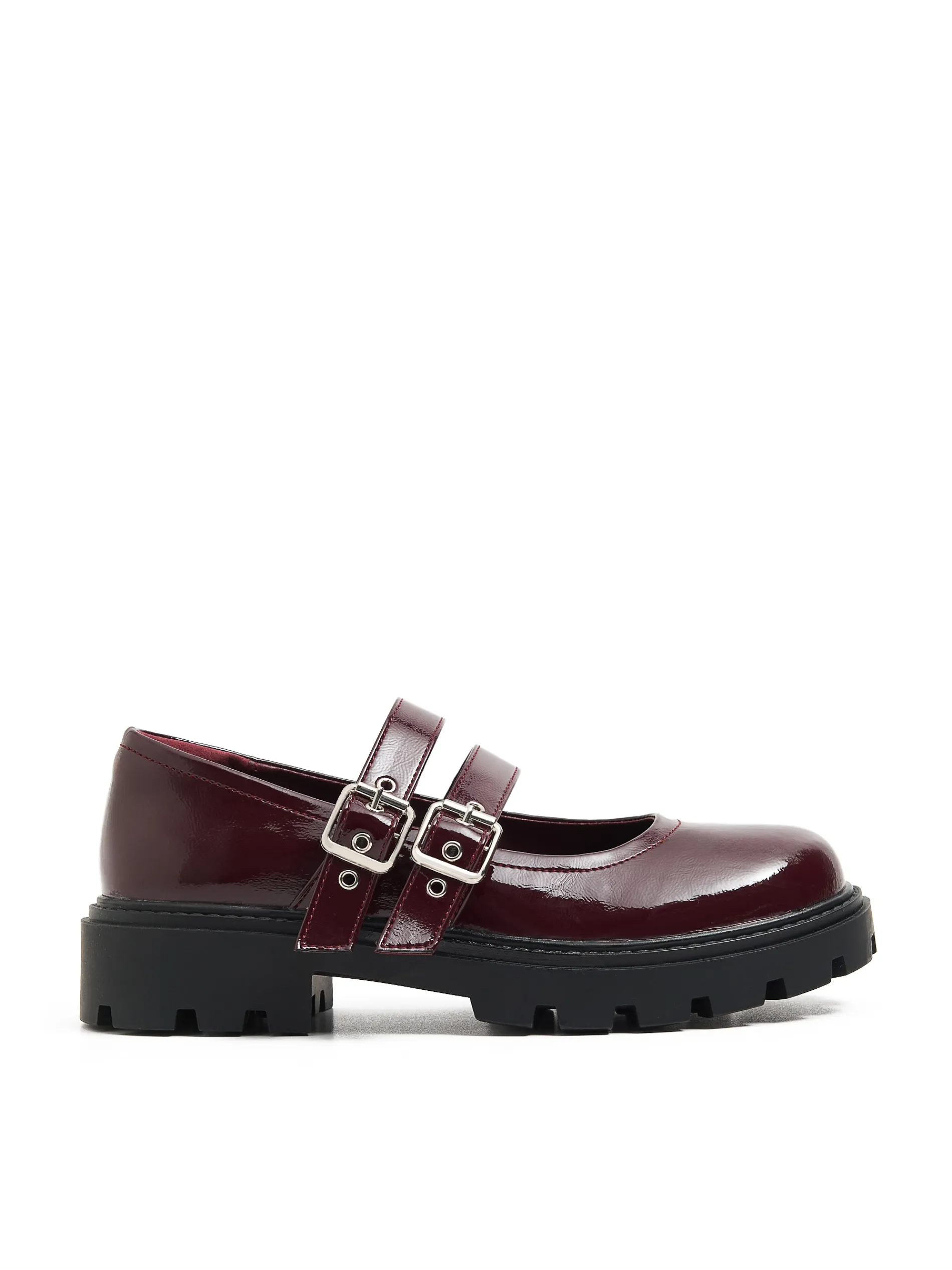 Damskie lakierowane półbuty typu Mary Jane z ozdobnymi regulowanym paskami i wygodną, solidną podeszwą. Ten wyrazisty kolor fituje z wieloma stylizacjami! lakierowana imitacja skóry wykonane z łączonych materiałów obcas i traktorowa, gruba podeszwa z gumy termoplastycznej dwa wąskie, regulowane paski kwadratowe klamry w kolorze srebrnym
