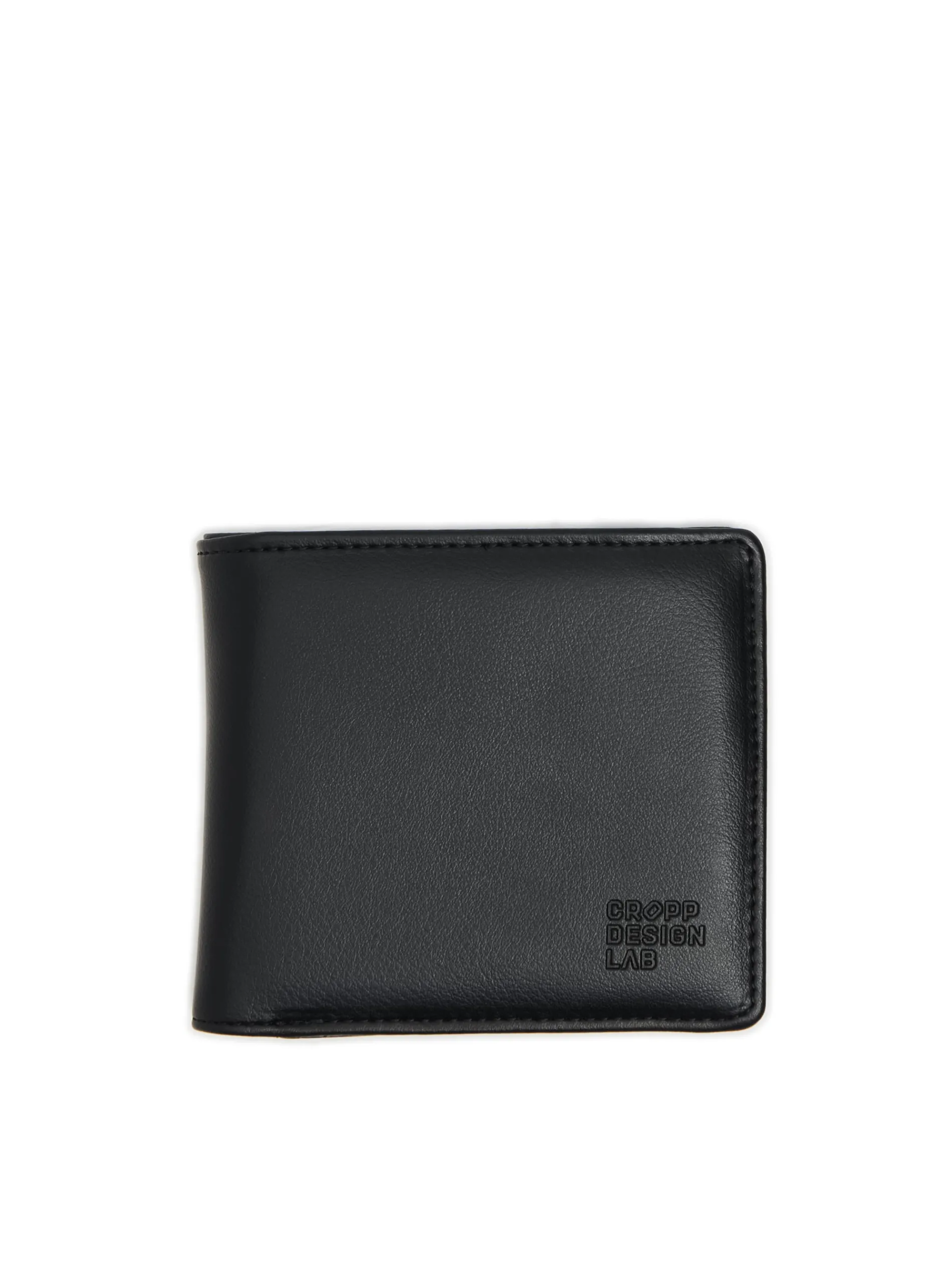 Czarny portfel męski z przegrodami, wykonany z imitacji skóry. Z przodu tłoczony napis. Portfel dostępny w innej wersji kolorystycznej. Wymiary produktu: 10,5 x 12 cm