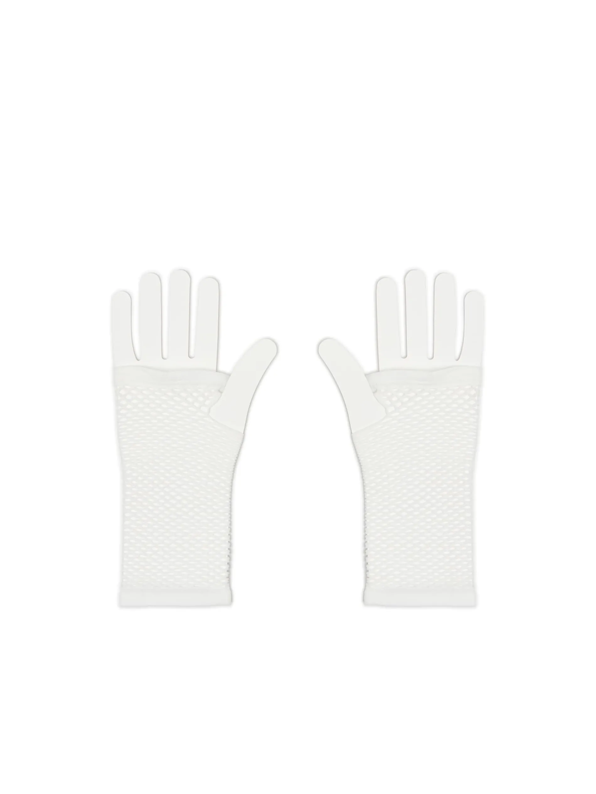 Rękawiczki damskie bez palców wykonane z elastycznego, ażurowego materiału.