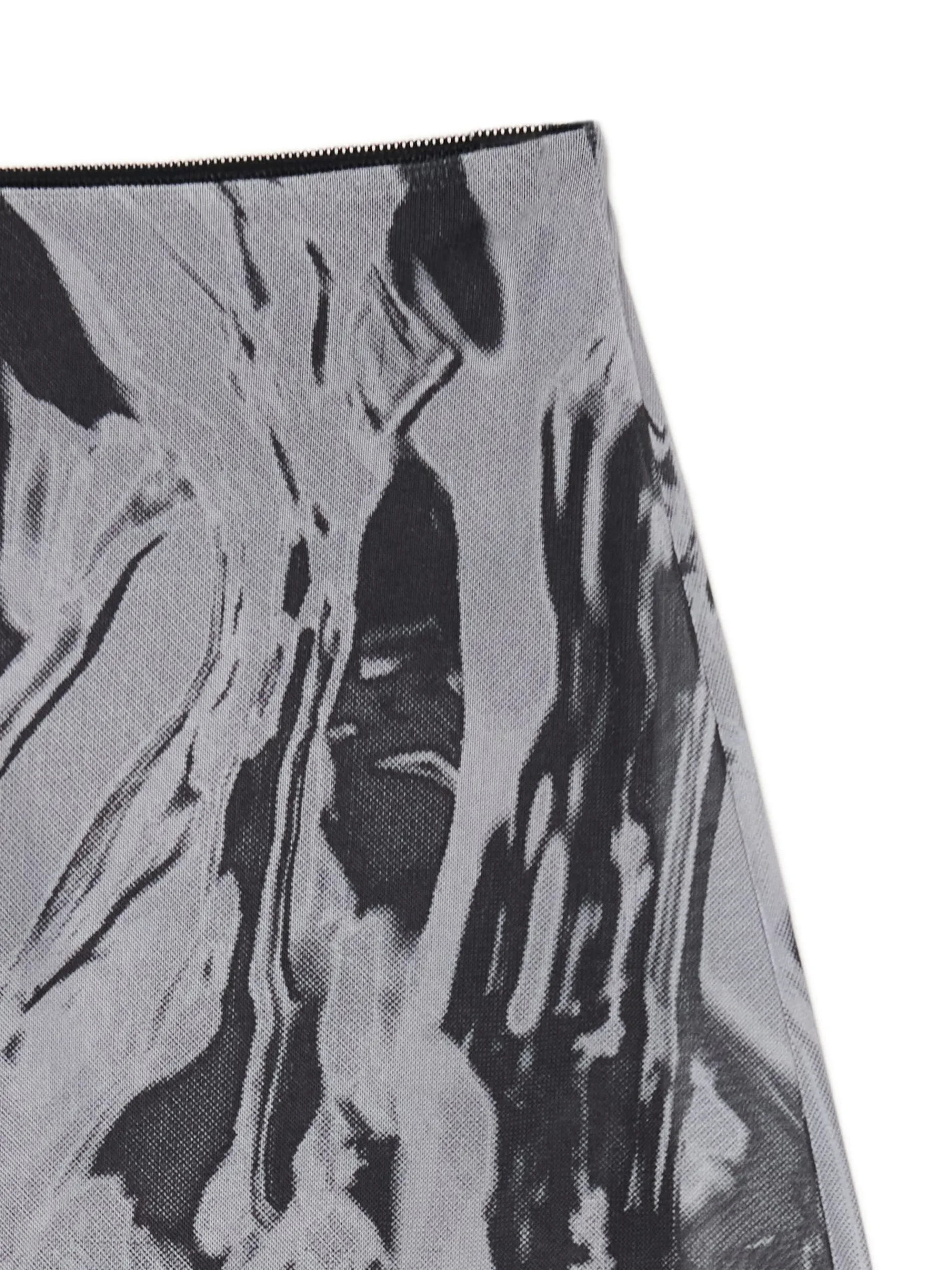 Damska spódnica w rozmiarze mini uszyta z mieszanki tkanin w pastelowych kolorach. Dekoracyjna falbana dodaje jej lekkości. dzianina z domieszką elastycznych włókien prosty krój wewnątrz gładka podszewka elastyczna gumka w pasie dół wykończony falbaną na całości efekt tie-dye w kolorze ciemnej szarości Wzrost modelki: 172 cm
