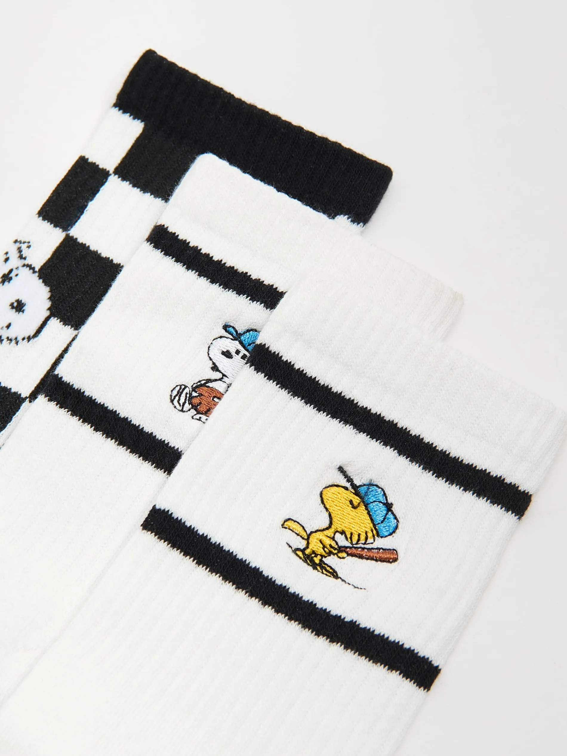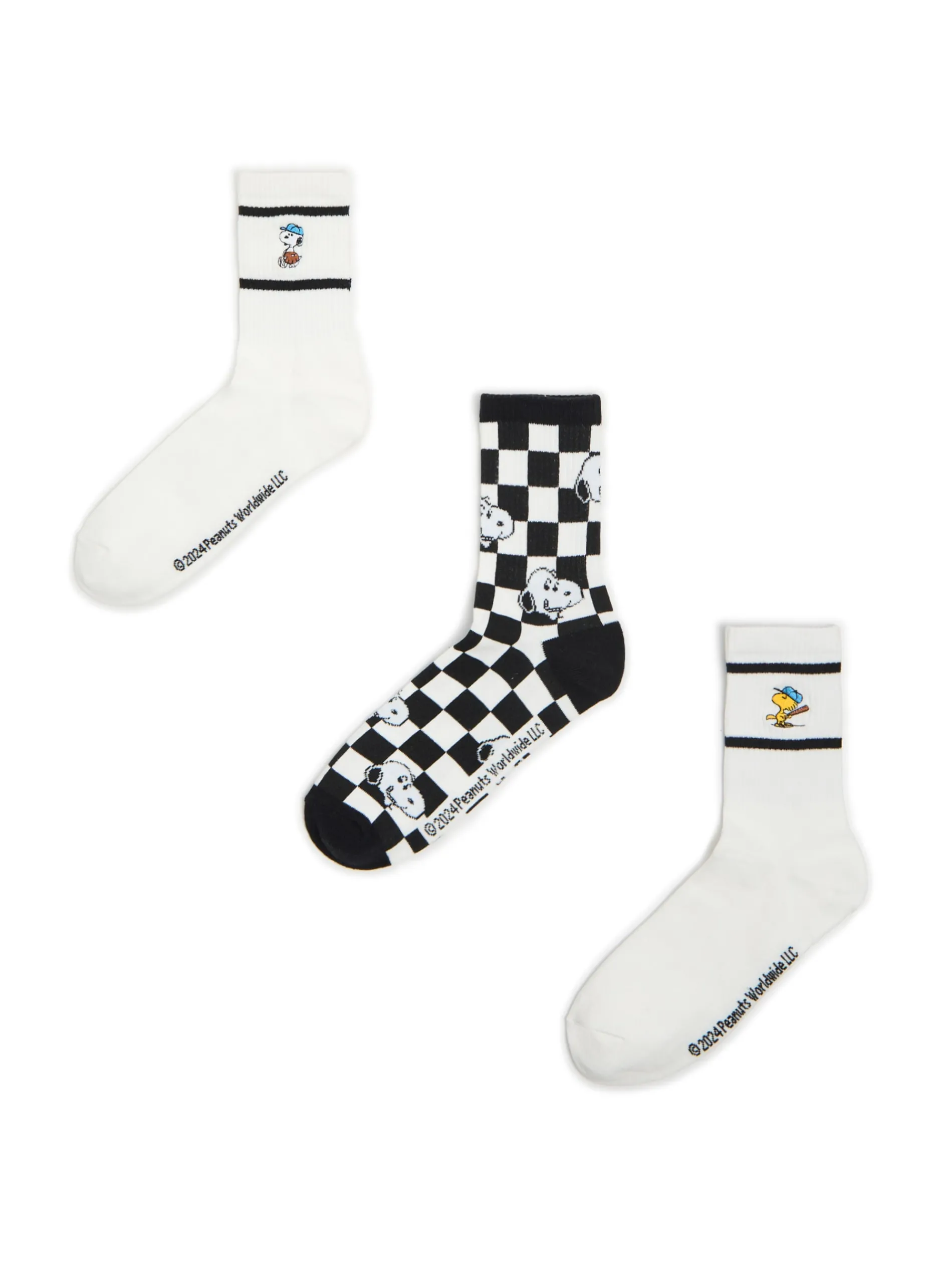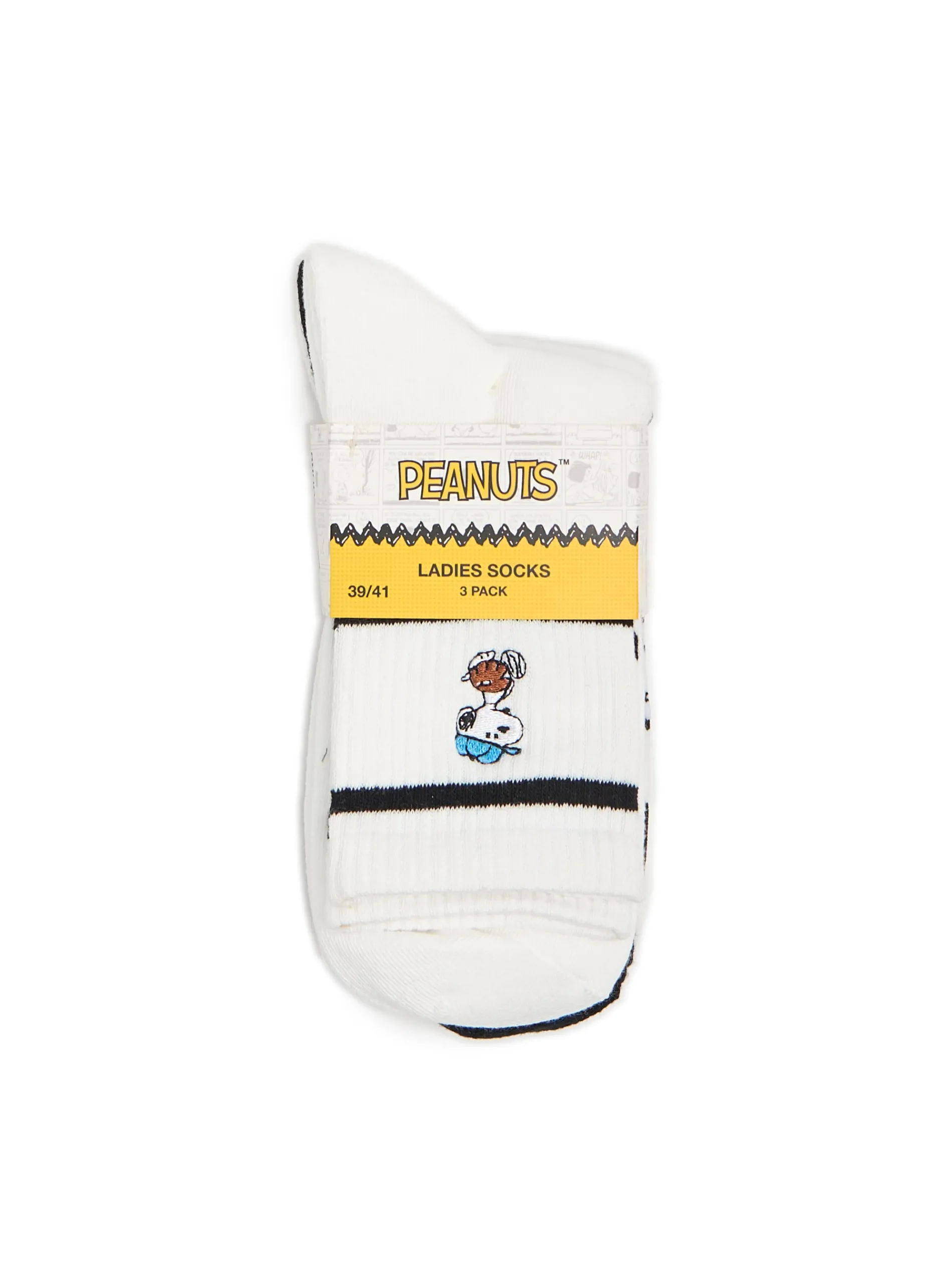 Zestaw trzech par długich, sportowych skarpet, uszytych z dzianiny zawierającej bawełnę. Na każdej parze nadruki inspirowane postaciami z serii komiksów pt. „Fistaszki”. Miksuj je dowolnie! dzianinowy materiał z bawełną prosty krój postacie Snoopy i Woodstock w formie nadruku © 2024 Peanuts Worldwide LLC