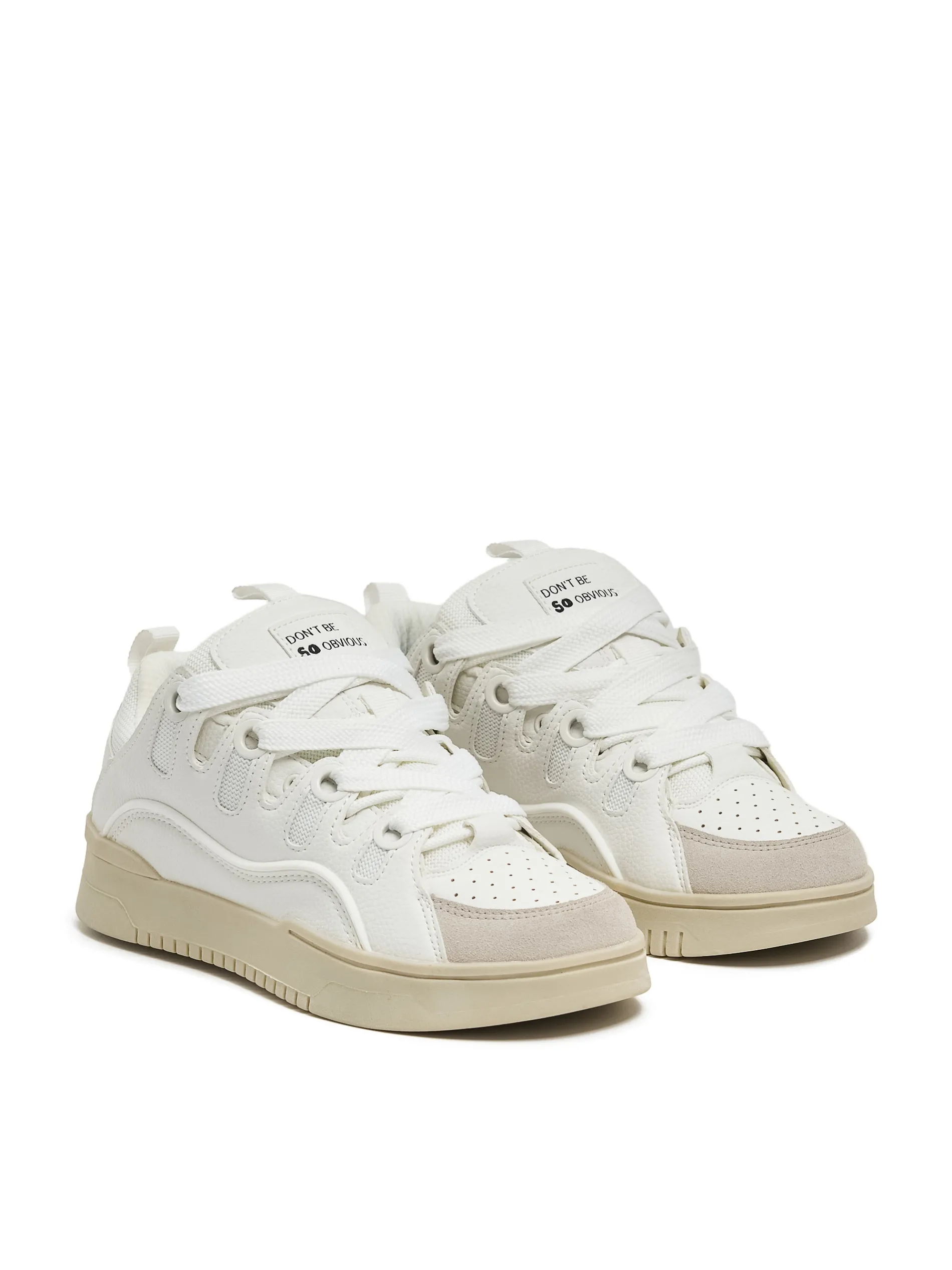 Damskie sportowe buty typu sneakersy, uszyte z gumy termoplastycznej oraz imitacji skóry. płaska, solidna podeszwa w kolorze beżowym wiązanie na białe, płaskie sznurowadła wstawki z imitacji zamszu na języku naszywka z napisem