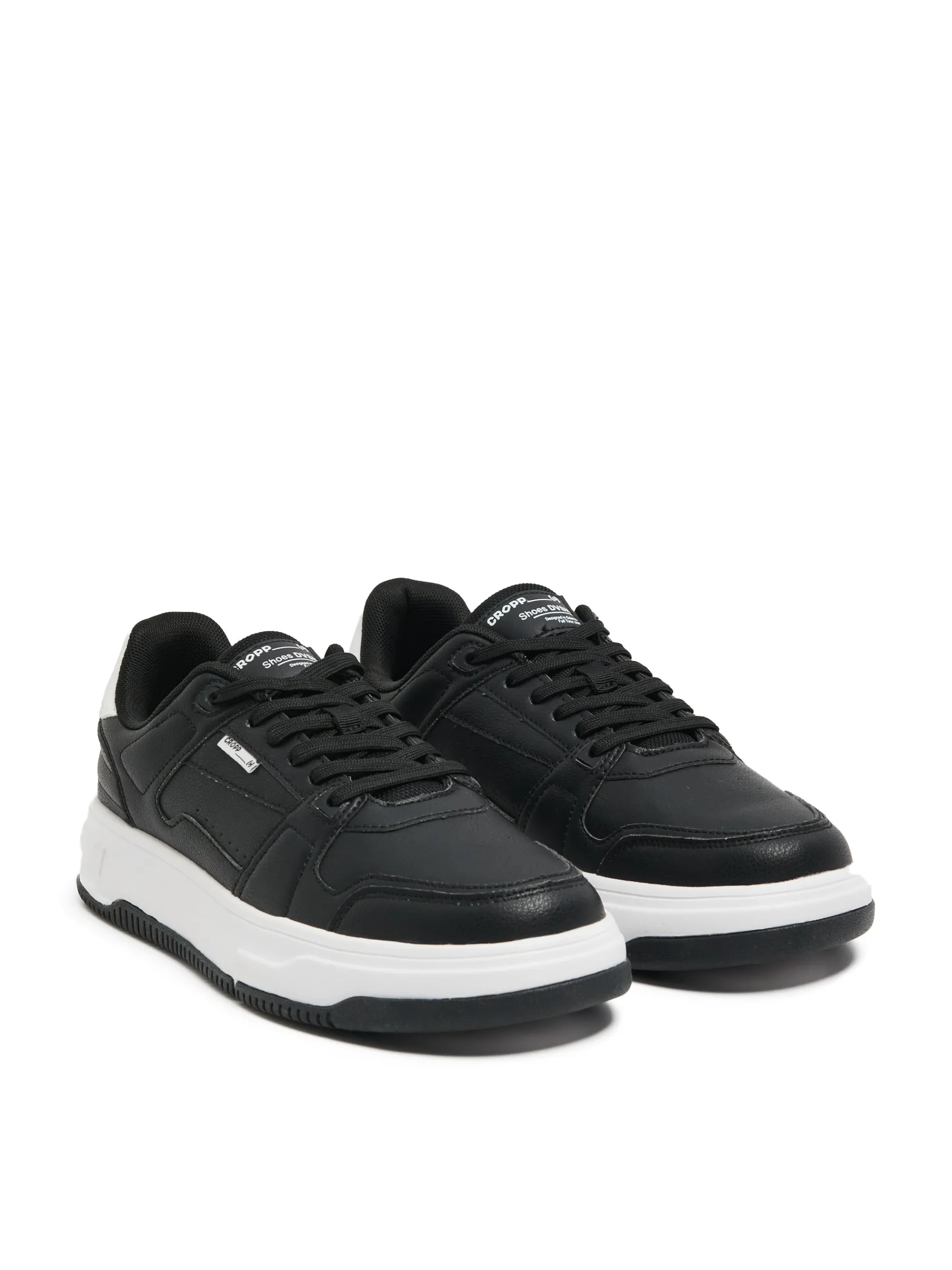 Męskie sneakersy o niskim, wygodnym fasonie. Czarna cholewka i kontrastowe, białe elementy, czyli klasyka w nowoczesnym wydaniu. sznurowane sneakersy w klasycznym stylu wykonane z łączonych materiałów podeszwa wykonana z mieszanki phylonu i gumy termoplastycznej wiązane na płaskie, czarne sznurowadła ozdobna naszywka