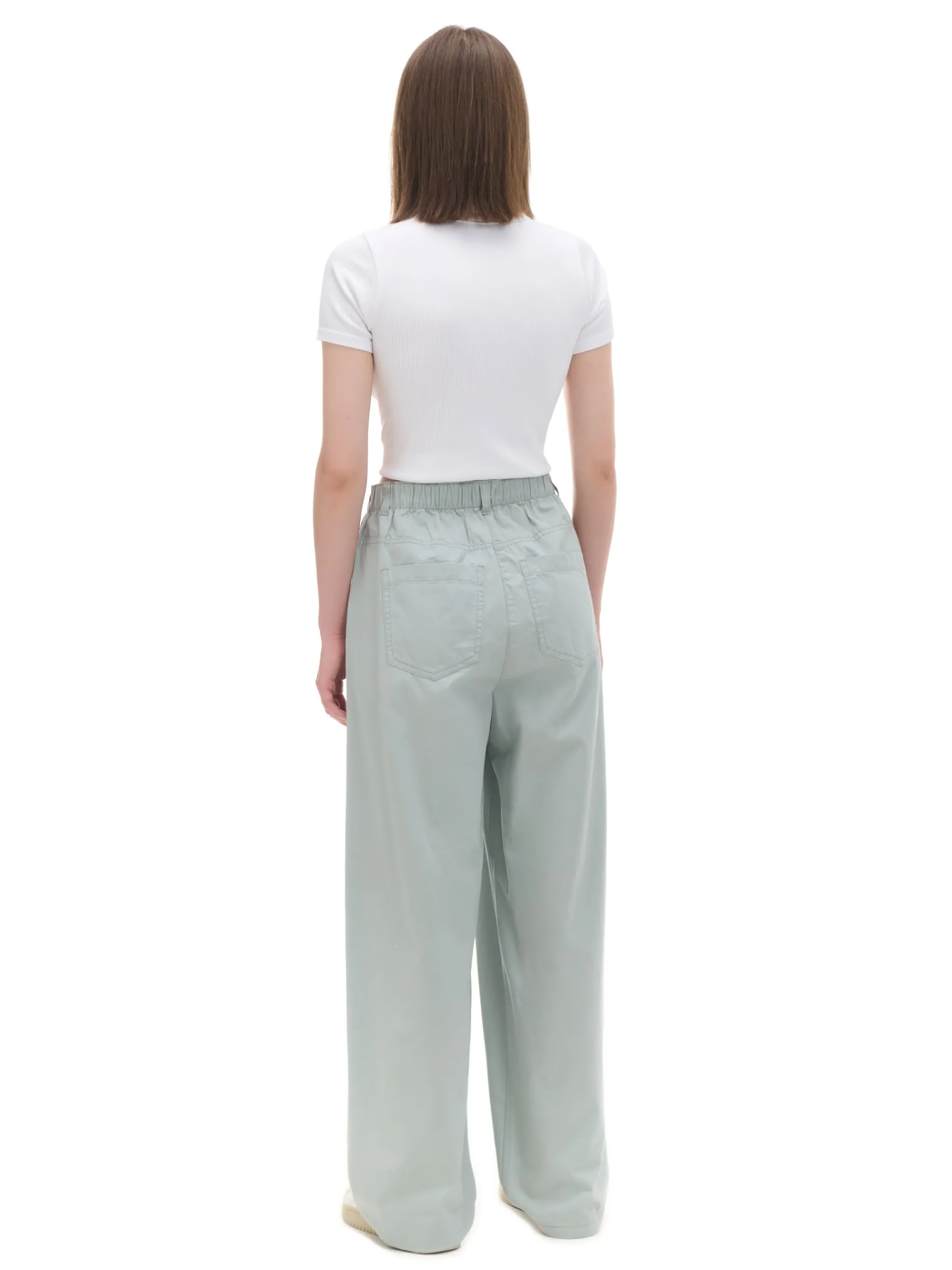 Damskie spodnie o kroju wide leg, uszyte z bawełny. Dzięki specjalnym zakładkom modelującym, ten item będzie się pięknie prezentował. 100% bawełny długie, szerokie nogawki zapięcie na zamek i guzik elastyczna gumka w pasie dwie kieszenie z przodu dwie naszyte kieszenie tylnie modelujące zakładki z przodu szlufki na pasek Wzrost modelki: 172 cm