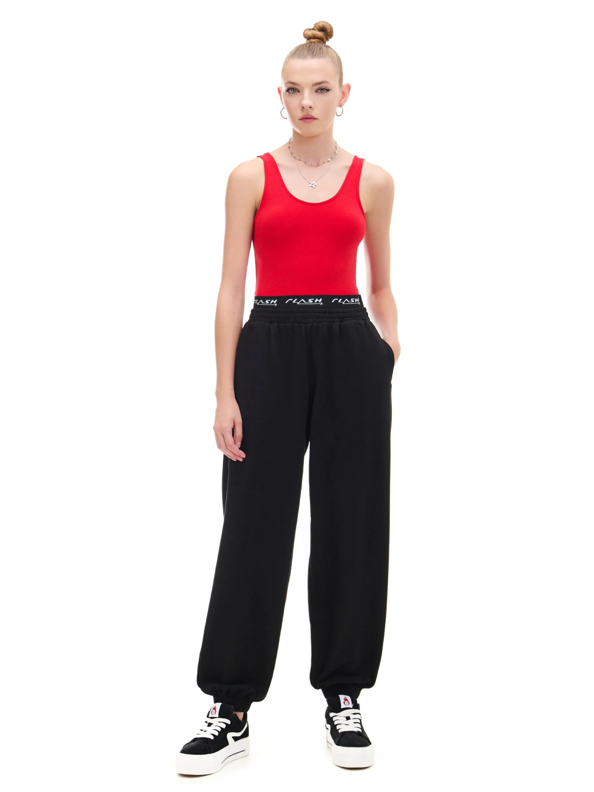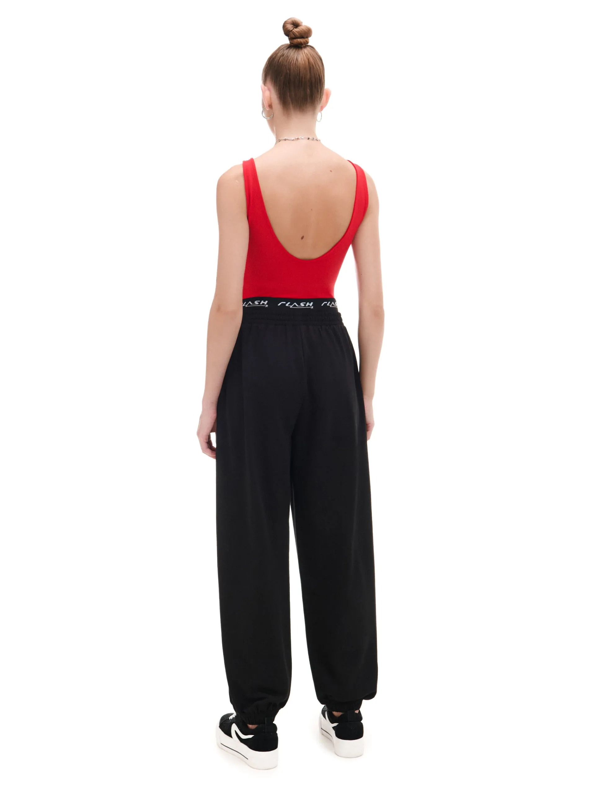 Dzianinowe damskie spodnie o sportowym kroju, uszyte z mieszanki materiałów z dodatkiem bawełny french terry. Te miękkie, wygodne i wytrzymałe joggery są gotowe na każdy rodzaj aktywności. dresowe spodnie typu jogger dzianinowy materiał z bawełną długie nogawki zwężane ku dołowi, wykończone ściągaczem w pasie od wewnątrz wszyta gumka dodatkowa guma z nadrukiem