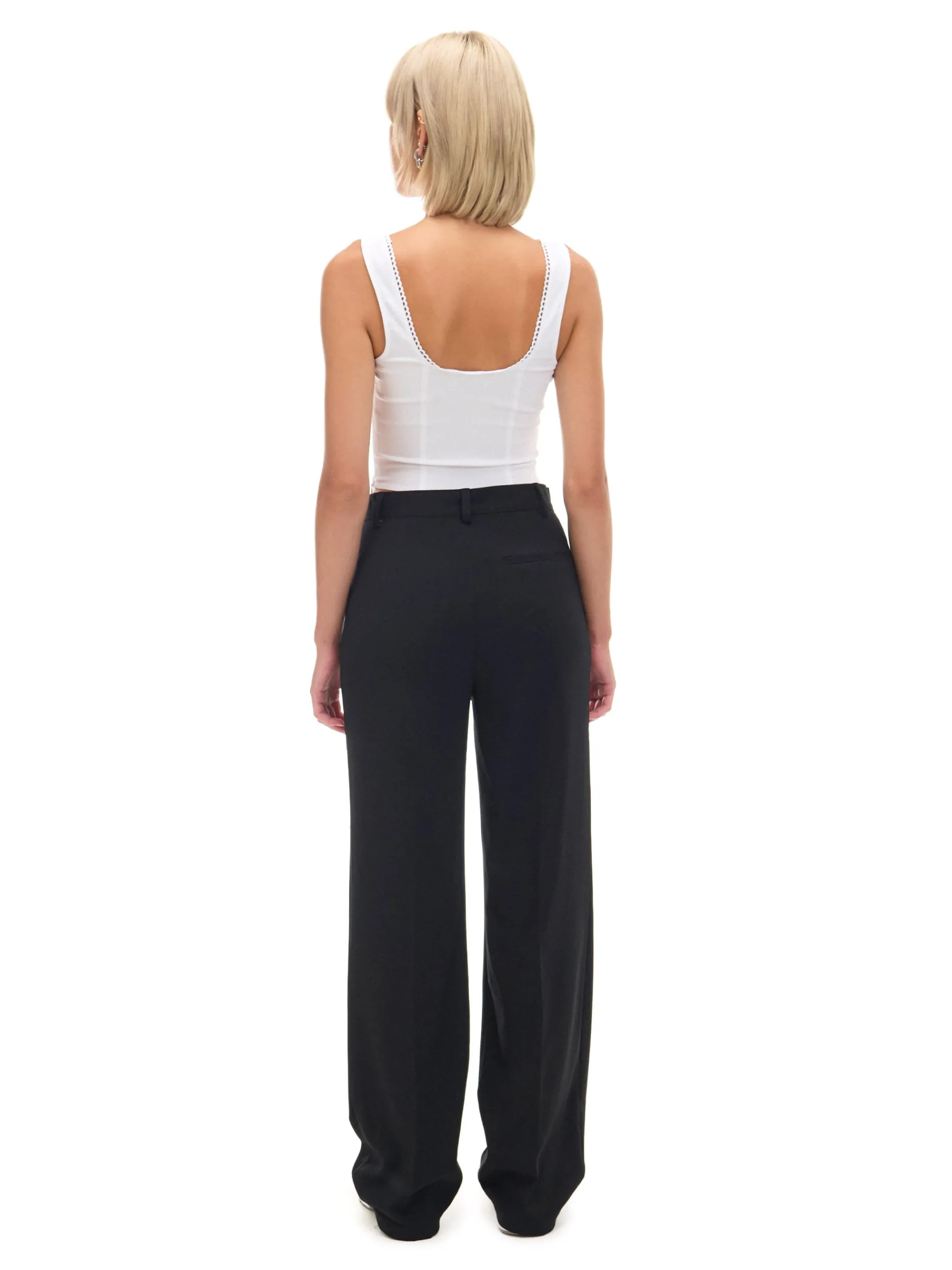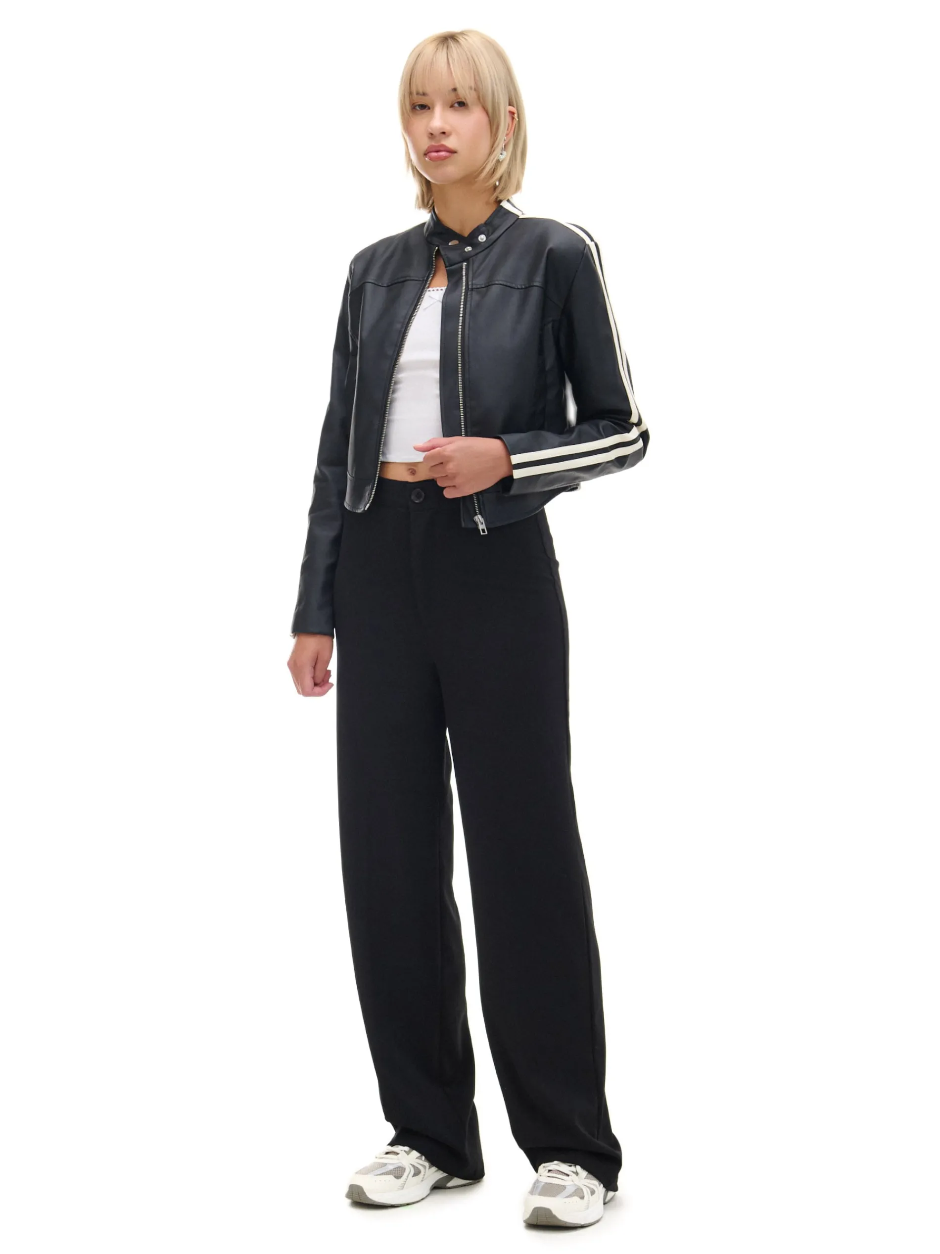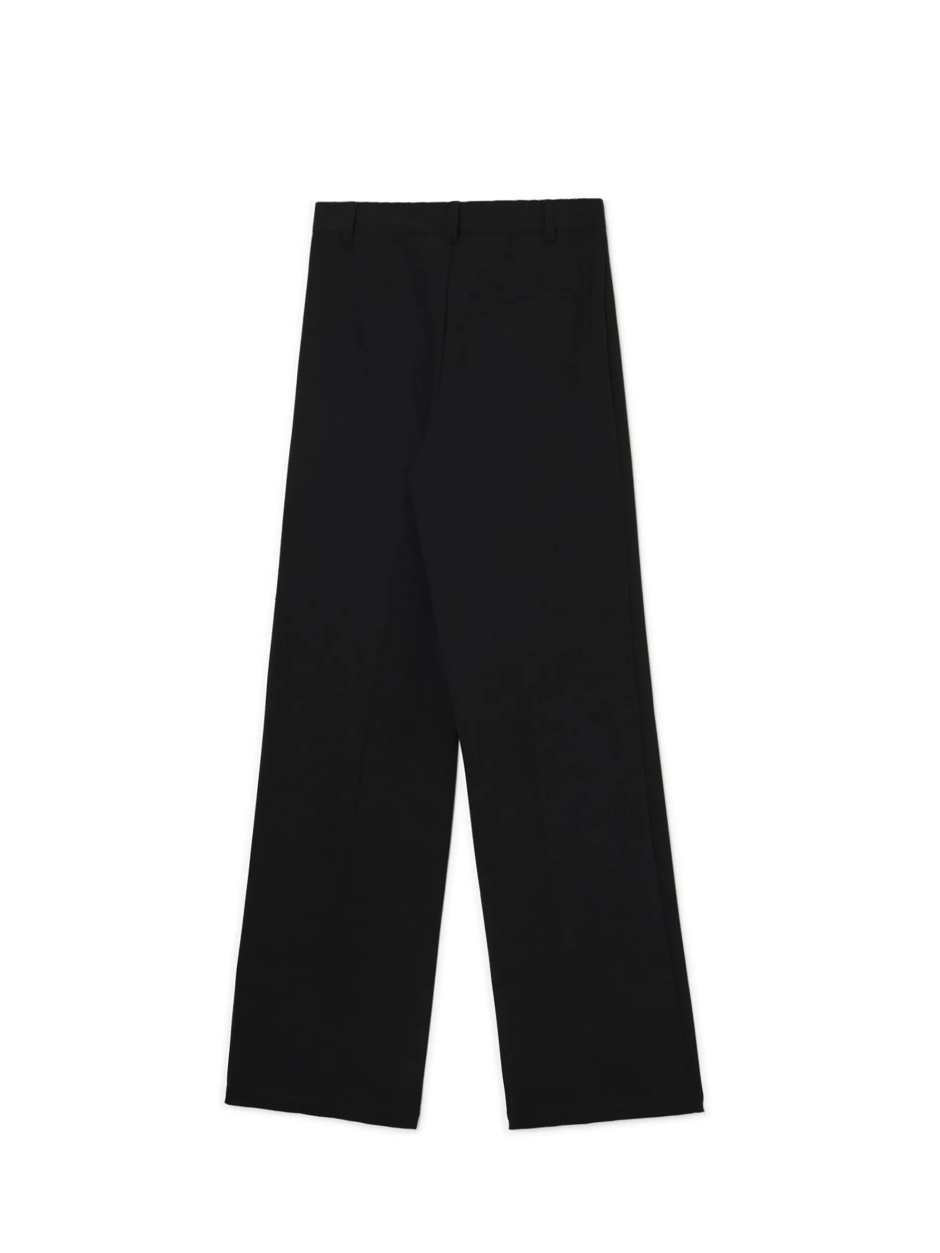 Damskie spodnie typu tailoring, uszyte z mieszanki tkanin z wiskozą i elastycznymi włóknami. Idealne do pracy, szkoły, czy na uczelnię. lekki materiał z wiskozą spodnie o fasonie tailoring wysoki stan zapięcie na zamek i guzik długie, proste nogawki imitacja kieszeni z tyłu Wzrost modelki: 177 cm