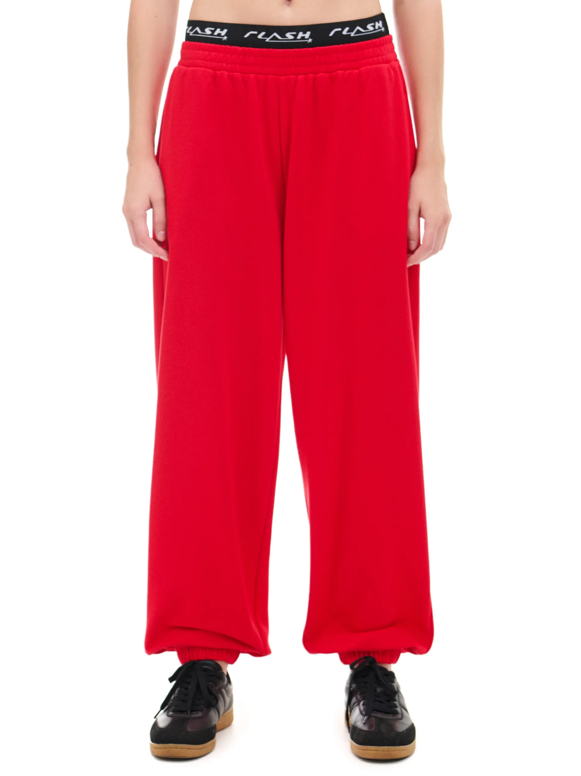 Dzianinowe damskie spodnie o sportowym kroju, uszyte z mieszanki materiałów z dodatkiem bawełny french terry. Te miękkie, wygodne i wytrzymałe joggery są gotowe na każdy rodzaj aktywności. dresowe spodnie typu jogger dzianinowy materiał z bawełną długie nogawki zwężane ku dołowi, wykończone ściągaczem w pasie od wewnątrz wszyta gumka dodatkowa guma z nadrukiem