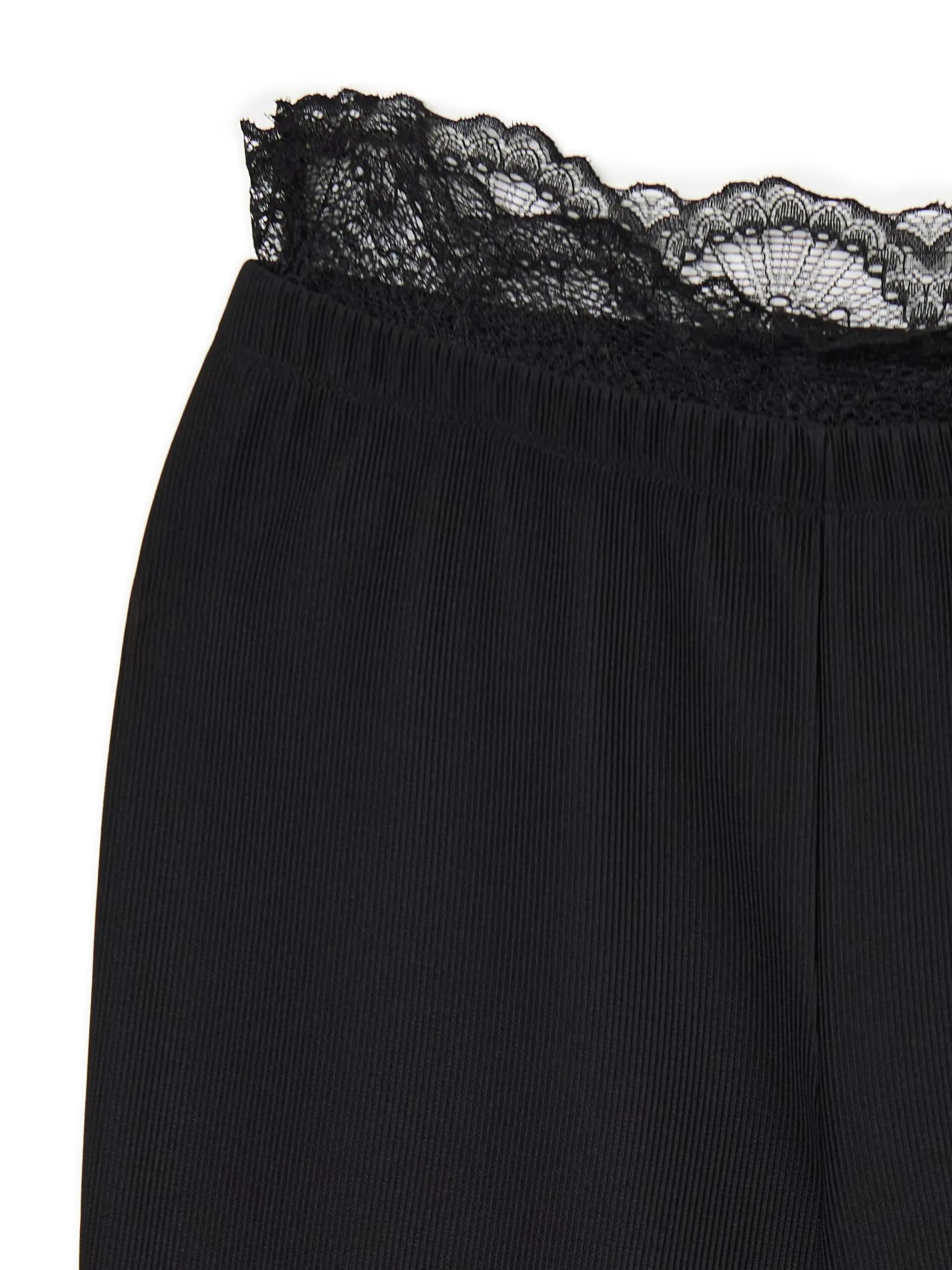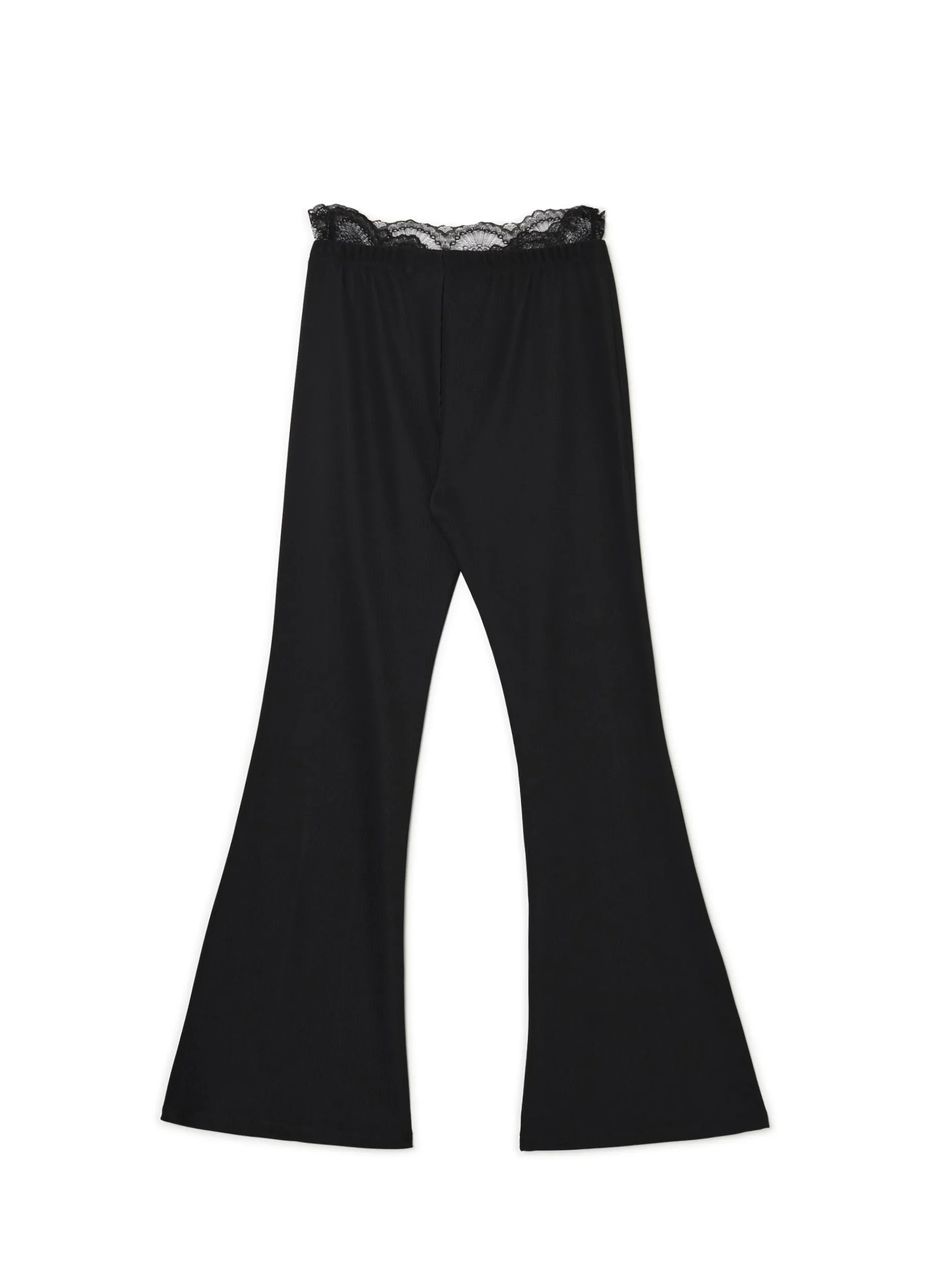 Damskie spodnie o kroju flare uszyte z trwałej, elastycznej dzianiny. Lekko rozszerzane nogawki od wysokości kolan, wygodna guma w pasie i dekoracyjna koronka nadają im casualowego stylu. Idealne na spontaniczne wypady z besties. spodnie o kroju flare dzianina z domieszką elastycznych włókien regularny stan elastyczna gumka w pasie ozdobna koronka w talii