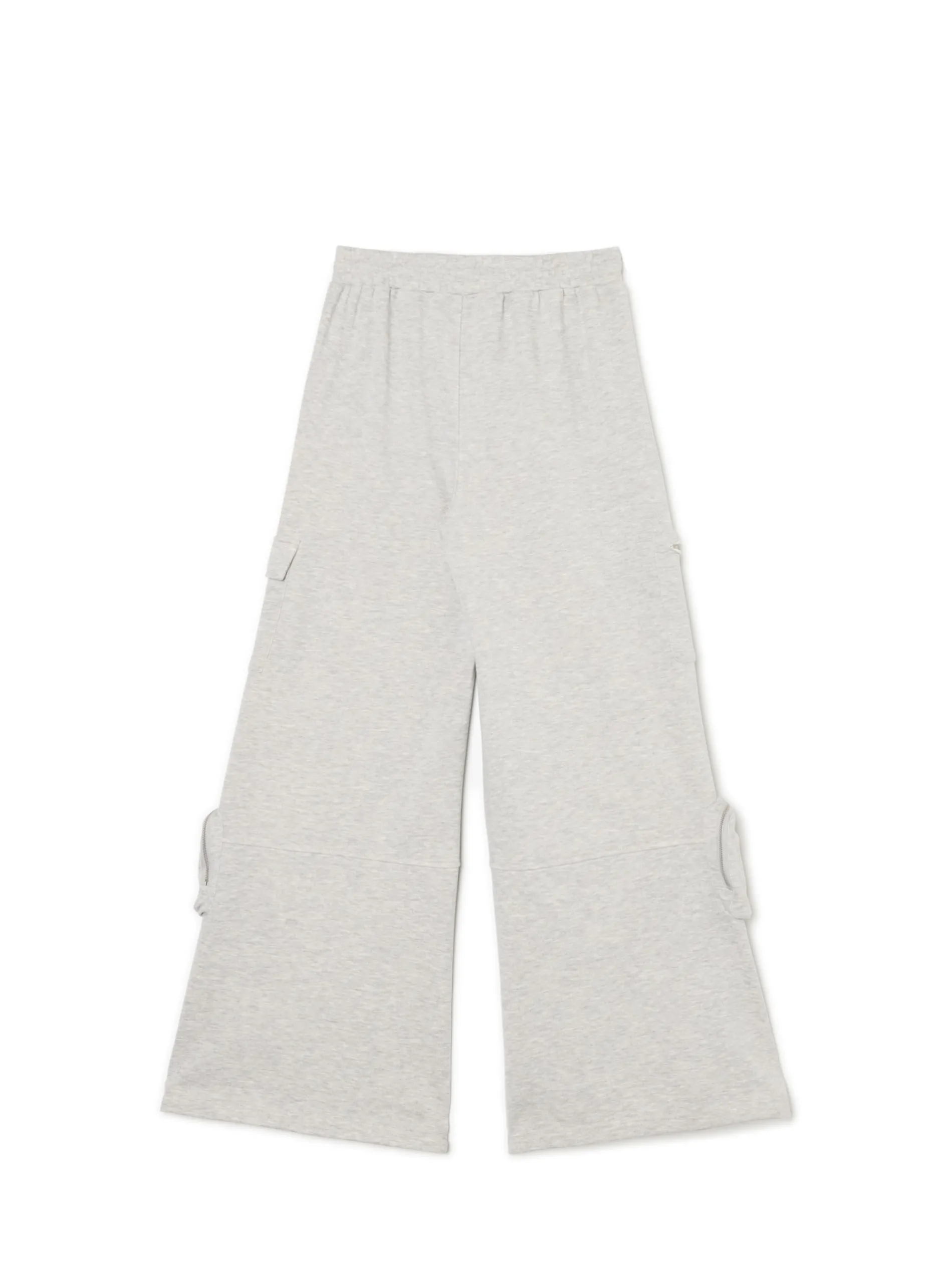 Jerseyowe spodnie o luźnym fasonie z zestawem kieszeni z przodu. Wszystkie Twoje rzeczy będę w nich bezpieczne! uszyte z dzianiny z bawełną wygodny, luźny krój gumka w pasie szerokie nogawki dwie kieszenie boczne dwie kieszenie boczne z zapięciem na zamek kieszeń typu cargo i dodatkowa na zamek