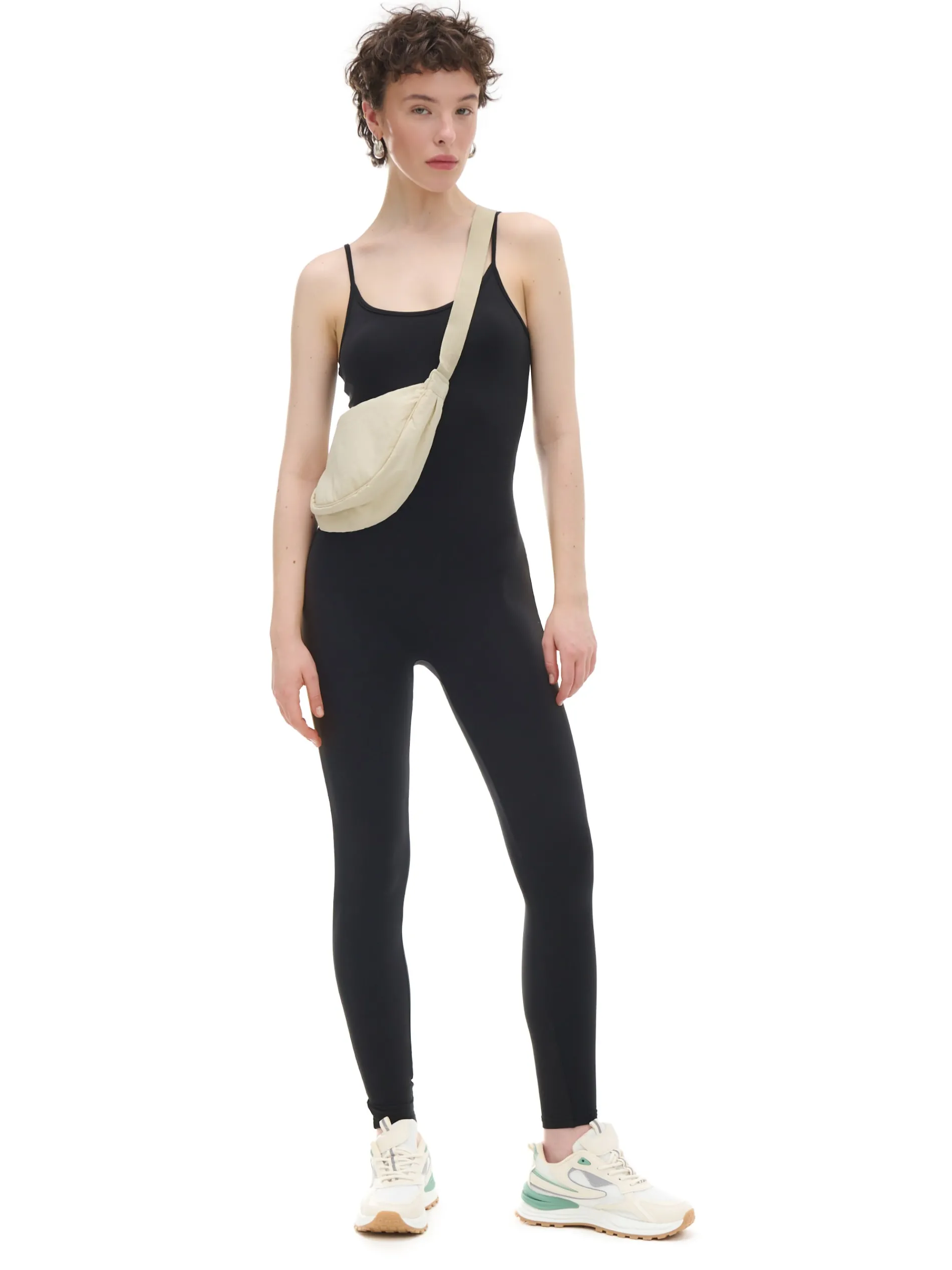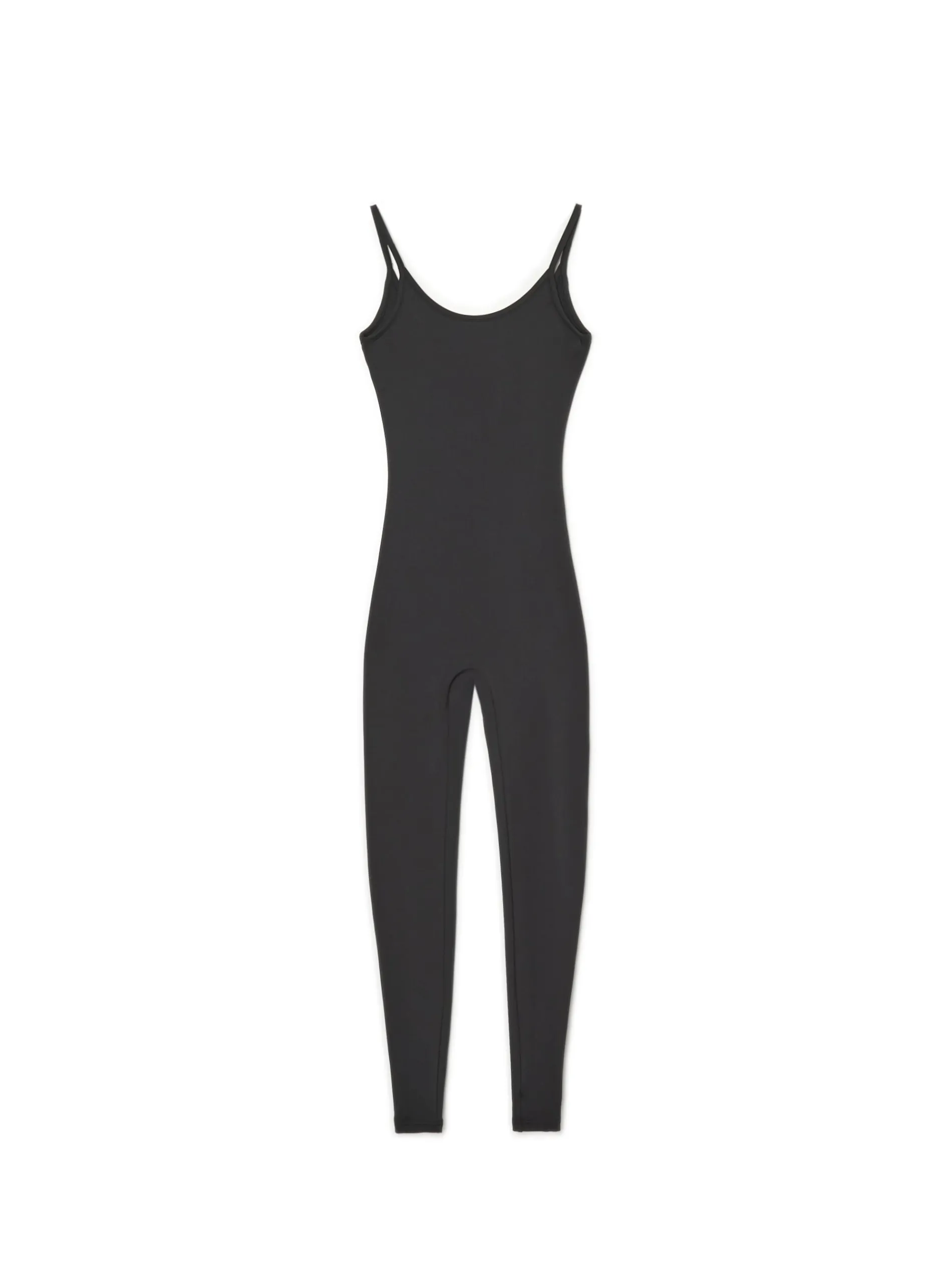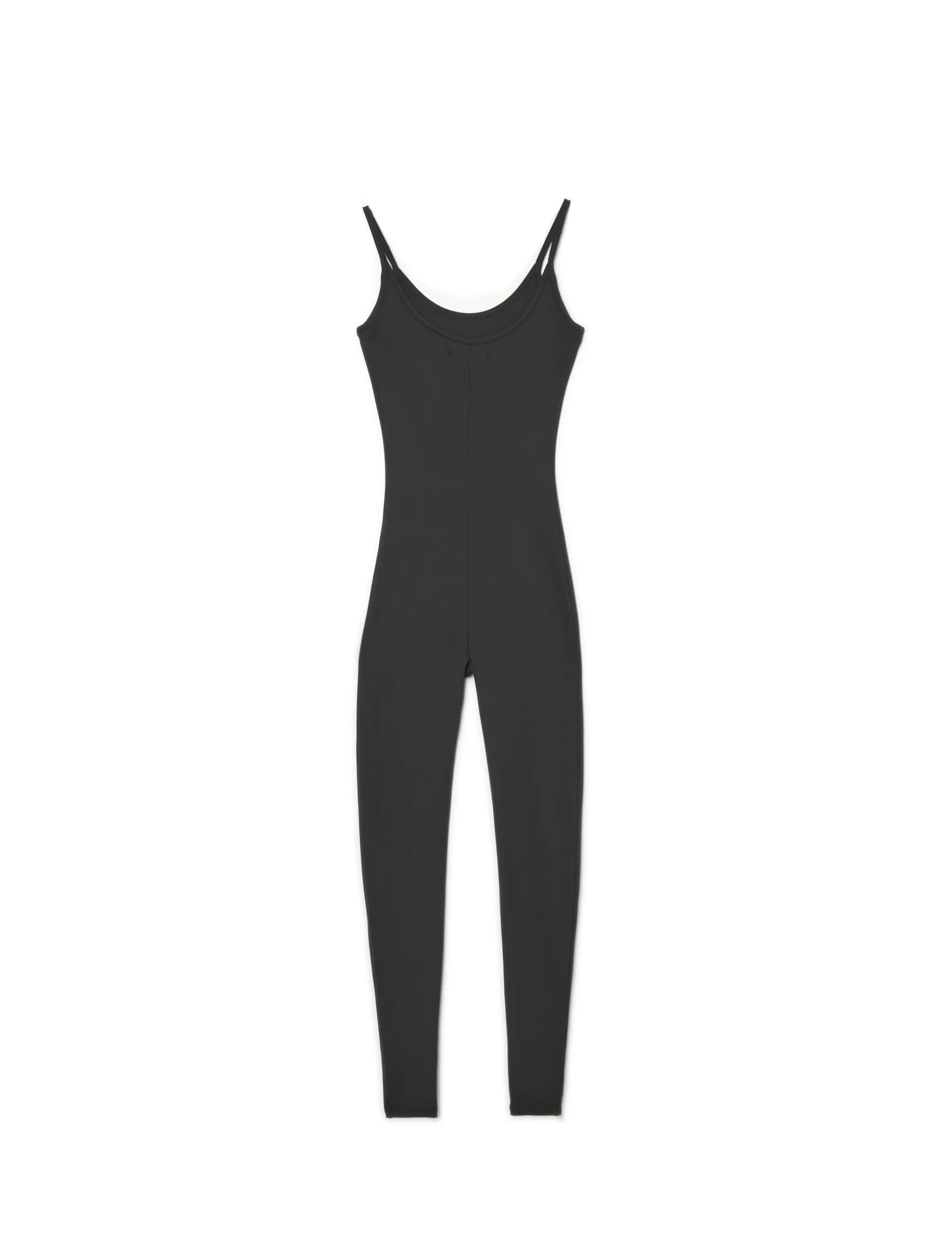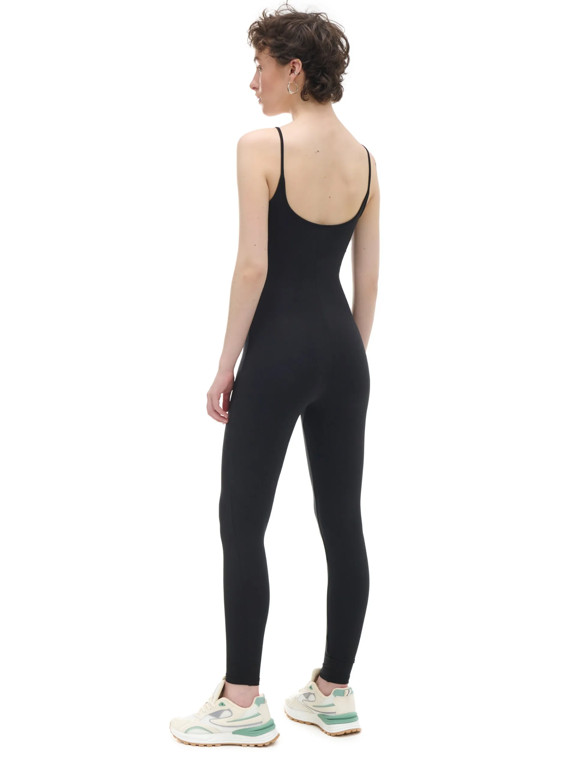 Czarny kombinezon damski o dopasowanym kroju, uszyty z elastycznej dzianiny. Dostępny w innej wersji kolorystycznej. Wzrost modelki: 176 cm