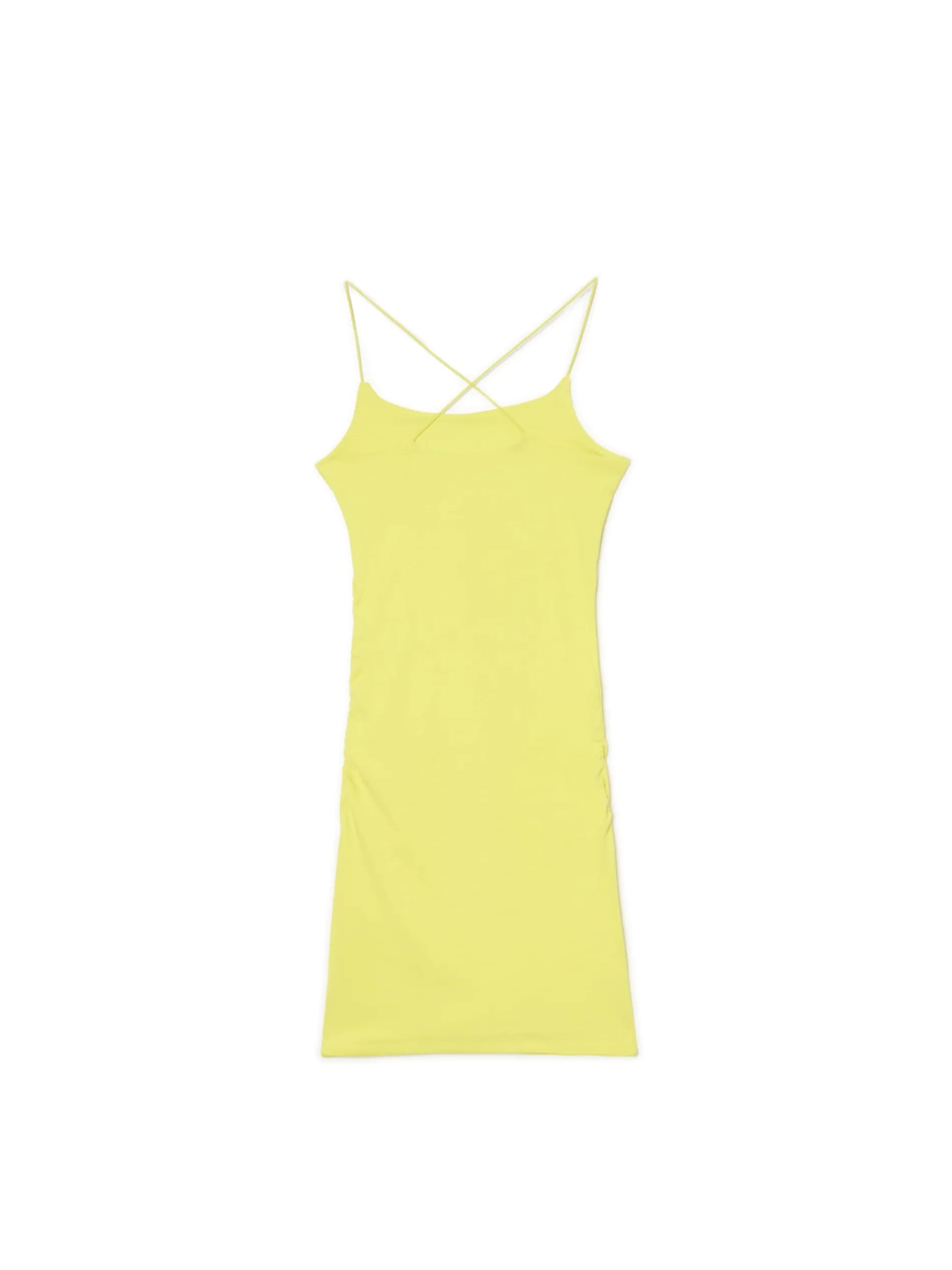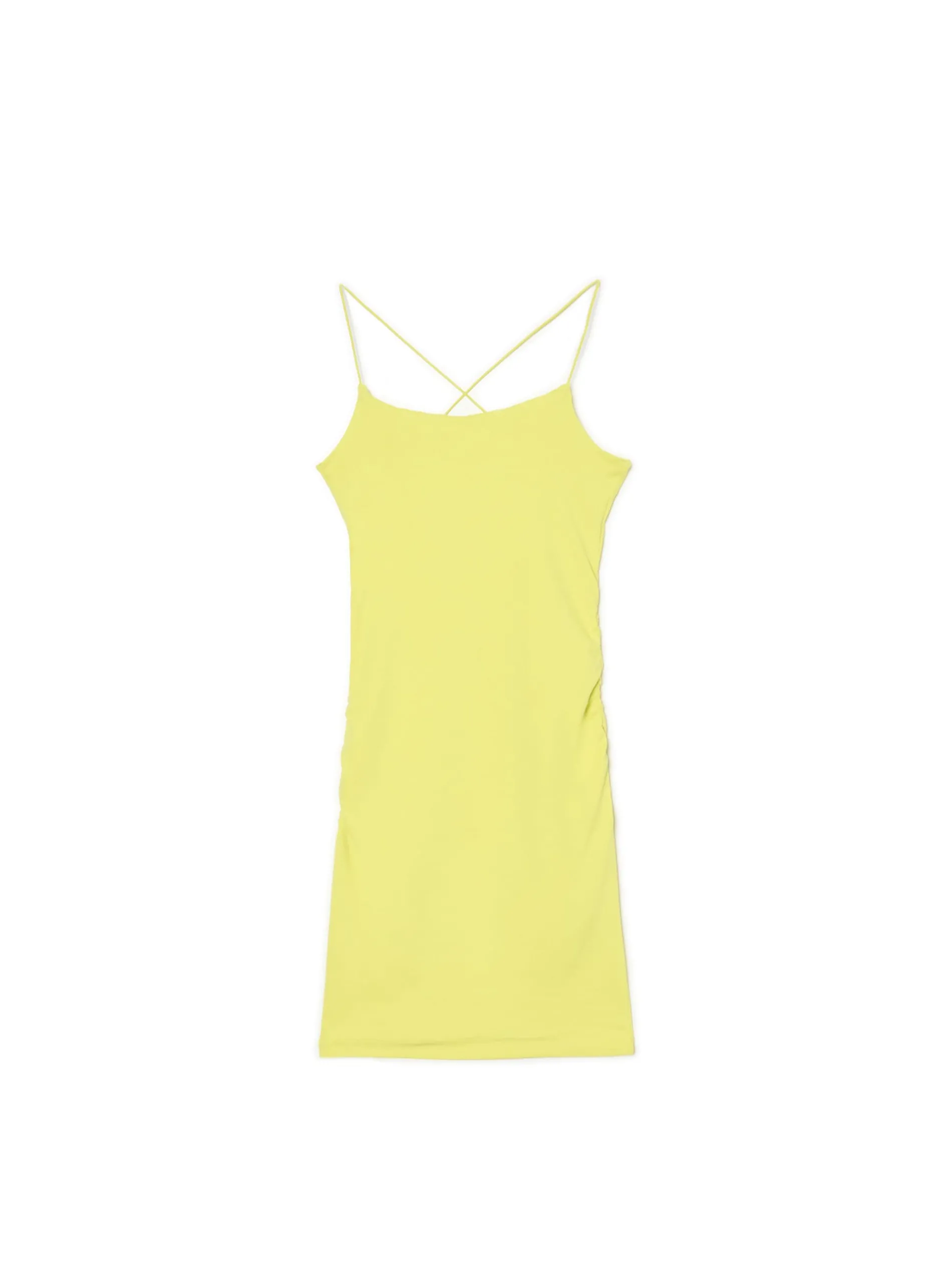 Sukienka o długości mini, uszyta z dzianiny z dodatkiem elastycznych włókien. Pastelowy kolor to hit lata! bawełna z dodatkiem elastycznych włókien długość mini i dopasowany krój cienkie, krzyżujące się na plecach ramiączka lekkie marszczenia po bokach dla idealnego dopasowania materiału wokół brzucha